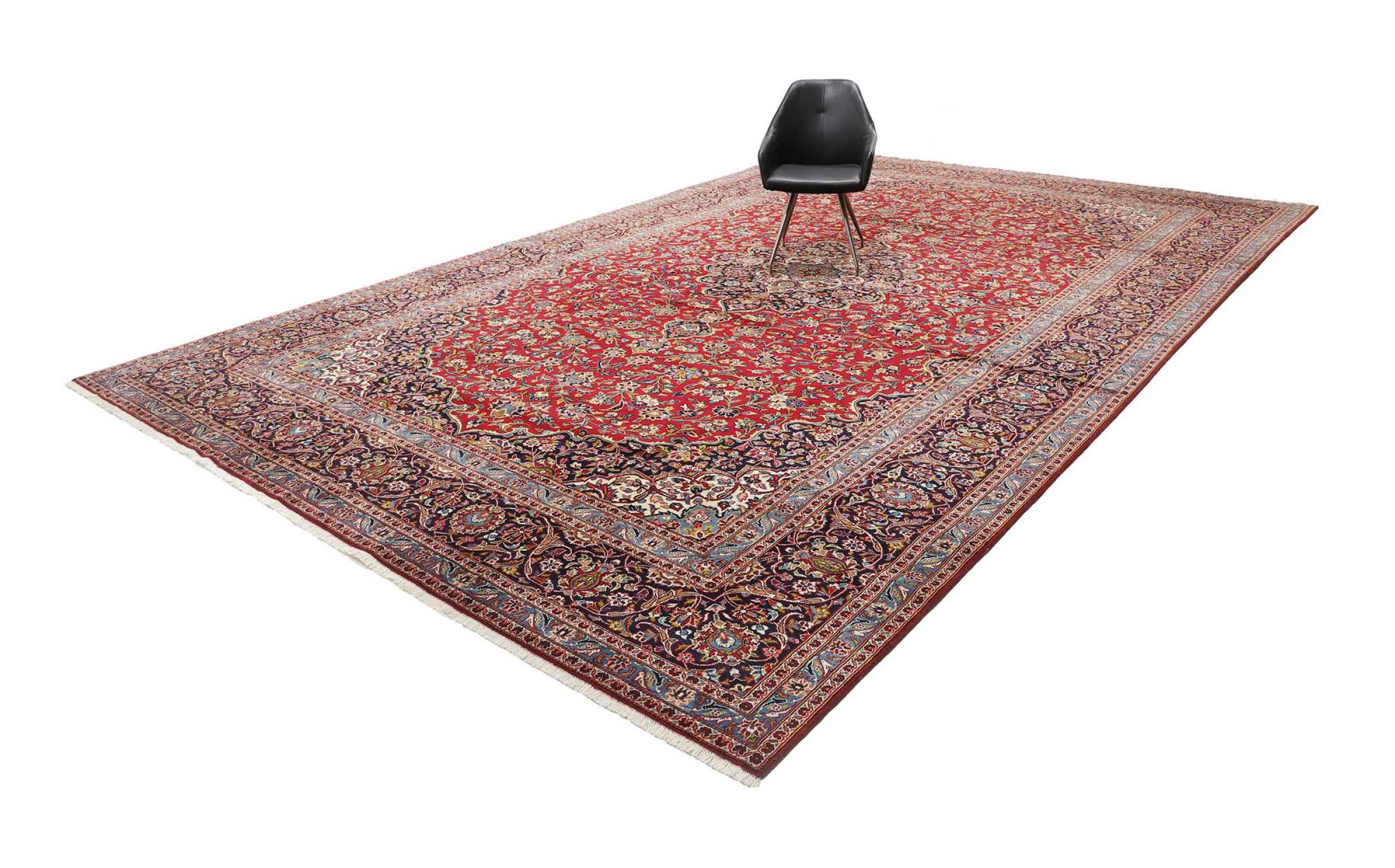 Tämä Kashanista (Keshan) kotoisin oleva matto on hyvin perinteinen ja tyypillinen persialainen muotoilu kauniilla koristeilla. Kashan-matot ovat erittäin suosittuja poikkeuksellisen tyylikkään muotoilunsa ansiosta. Nämä matot ovat peräisin Kashanista, muinaisen Silkkitien varrella sijaitsevasta kaupungista. Tämä matto on solmittu käsin korkealaatuisesta lampaanvillasta, ja se tulee olemaan ainutlaatuinen kohokohta kotiisi.