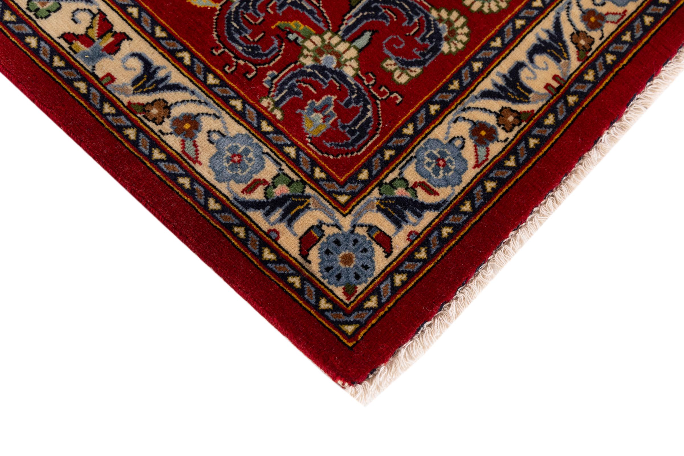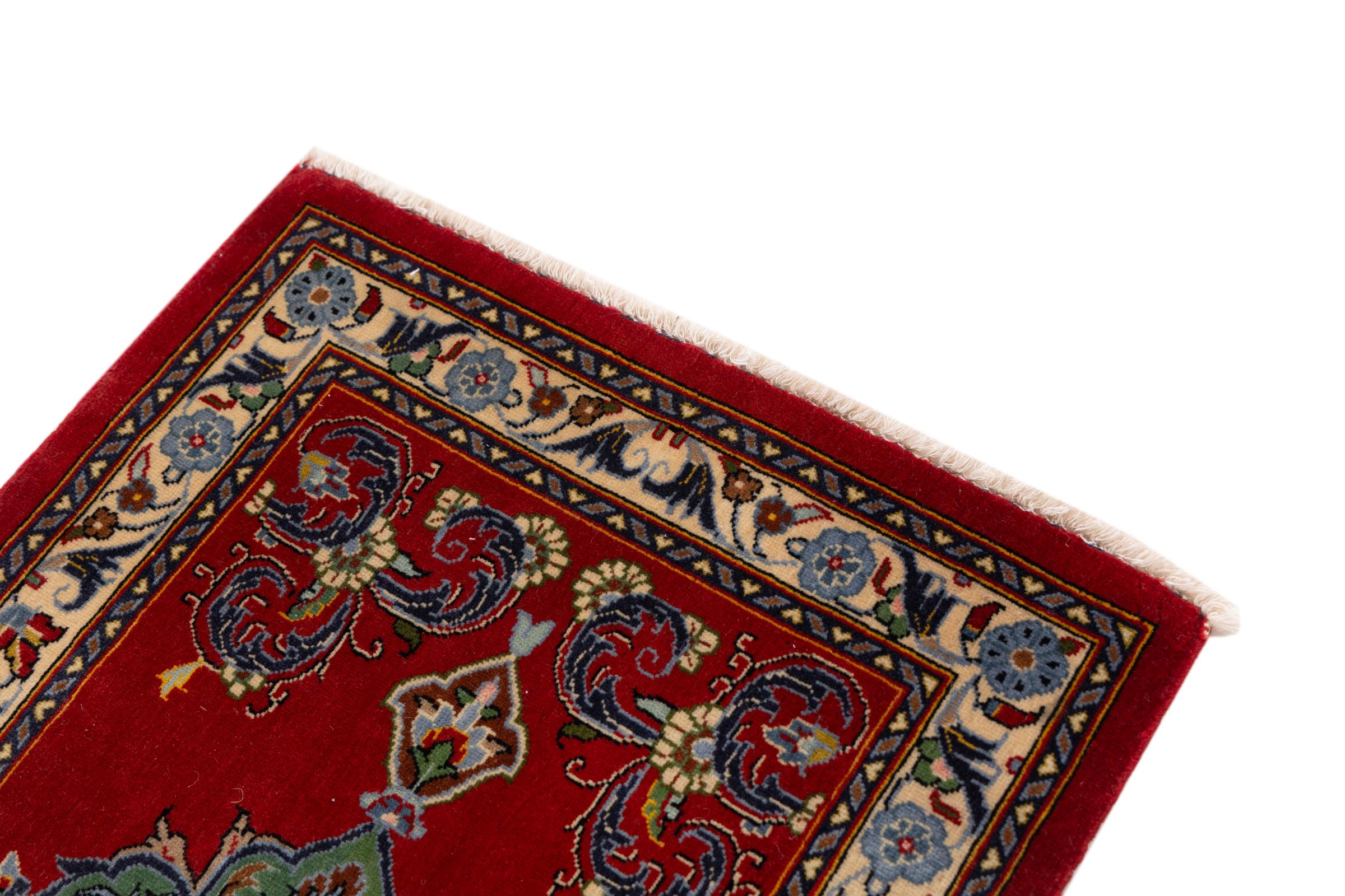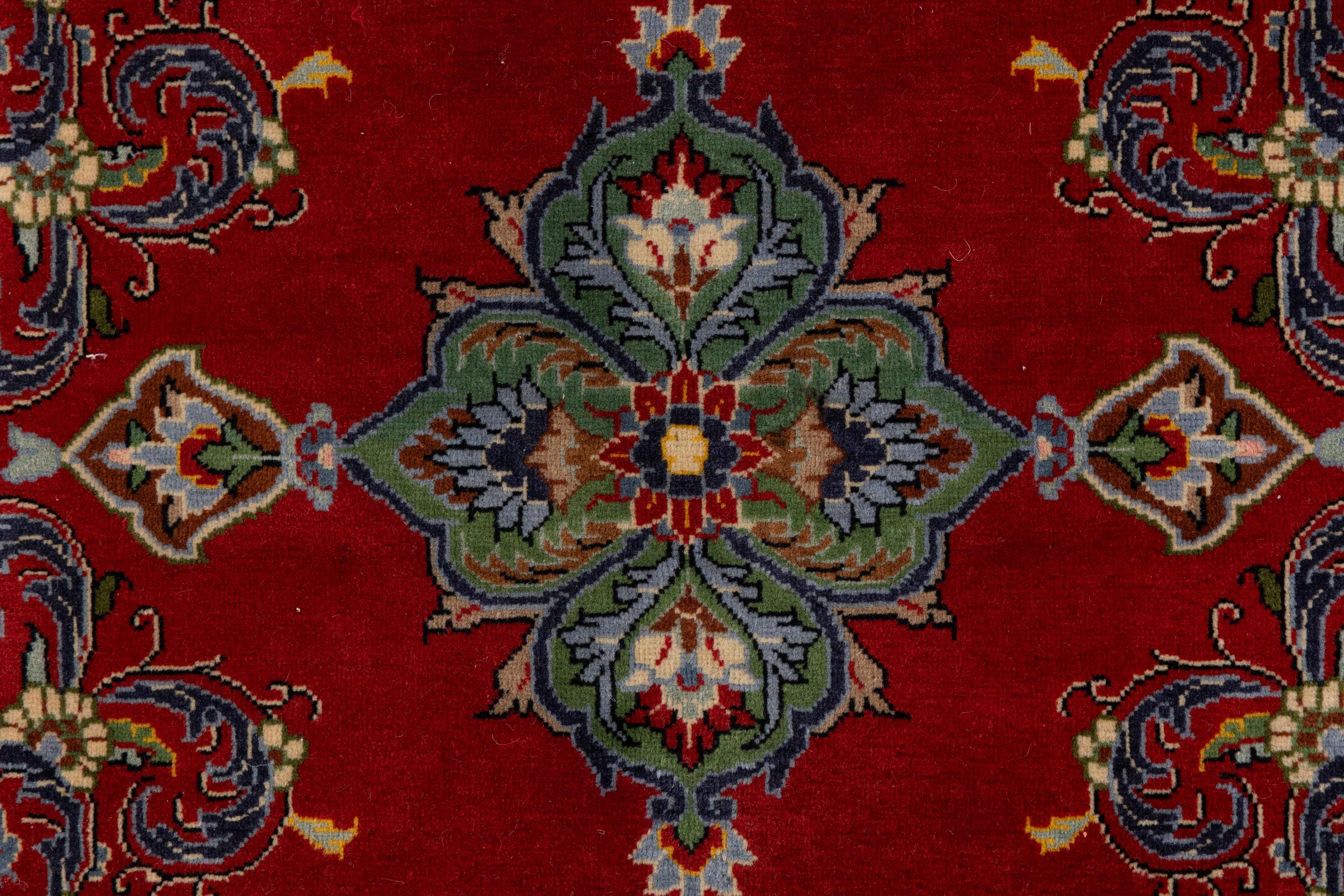 Tämä Kashanista (Keshan) kotoisin oleva matto on hyvin perinteinen ja tyypillinen persialainen muotoilu kauniilla koristeilla. Kashan-matot ovat erittäin suosittuja poikkeuksellisen tyylikkään muotoilunsa ansiosta. Nämä matot ovat peräisin Kashanista, muinaisen Silkkitien varrella sijaitsevasta kaupungista. Tämä matto on solmittu käsin korkealaatuisesta lampaanvillasta, ja se tulee olemaan ainutlaatuinen kohokohta kotiisi.