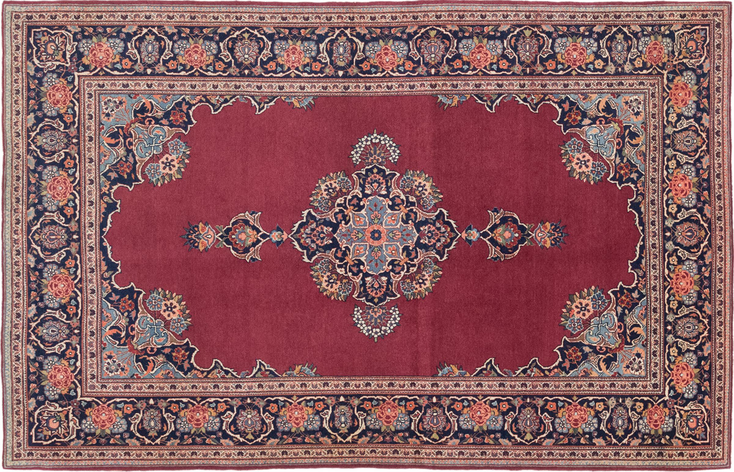Maton nro.: 316739005803904 Koko: 204x130 cm Paksuus: n. 10 mm Solmua: 410 000 - 450 000 / m² Työstäminen: Solmittu käsin Nukka: Käsinkehrätty villa Loimi: Puuvilla Kunto / Säilytys: Virheetön Alkuperä: Persia / Iran Ikä: antiikkinen, yli 80 vuotta vanha Paino: n. 9 kg Készleten: Uniikki - Csak 1 van készleten