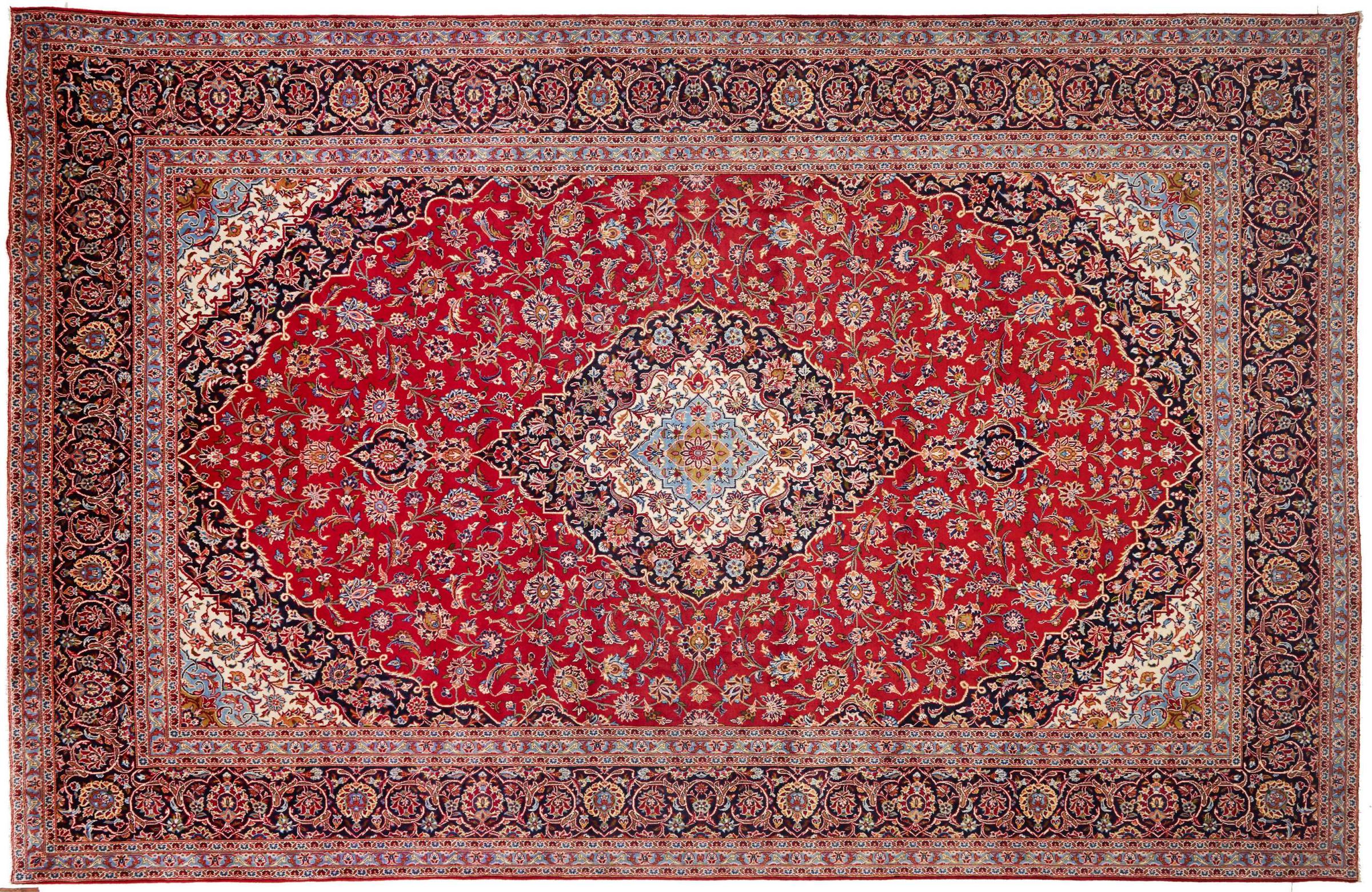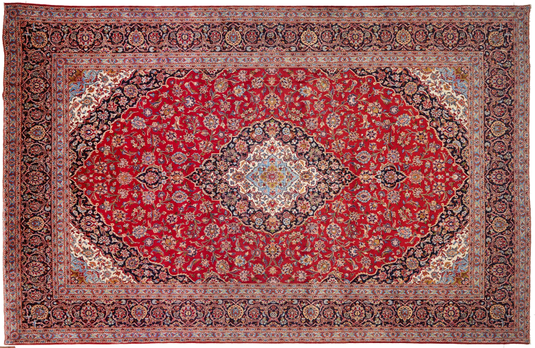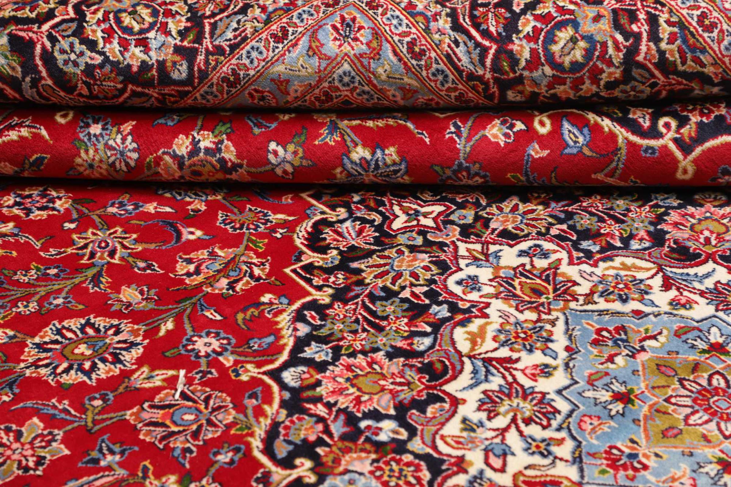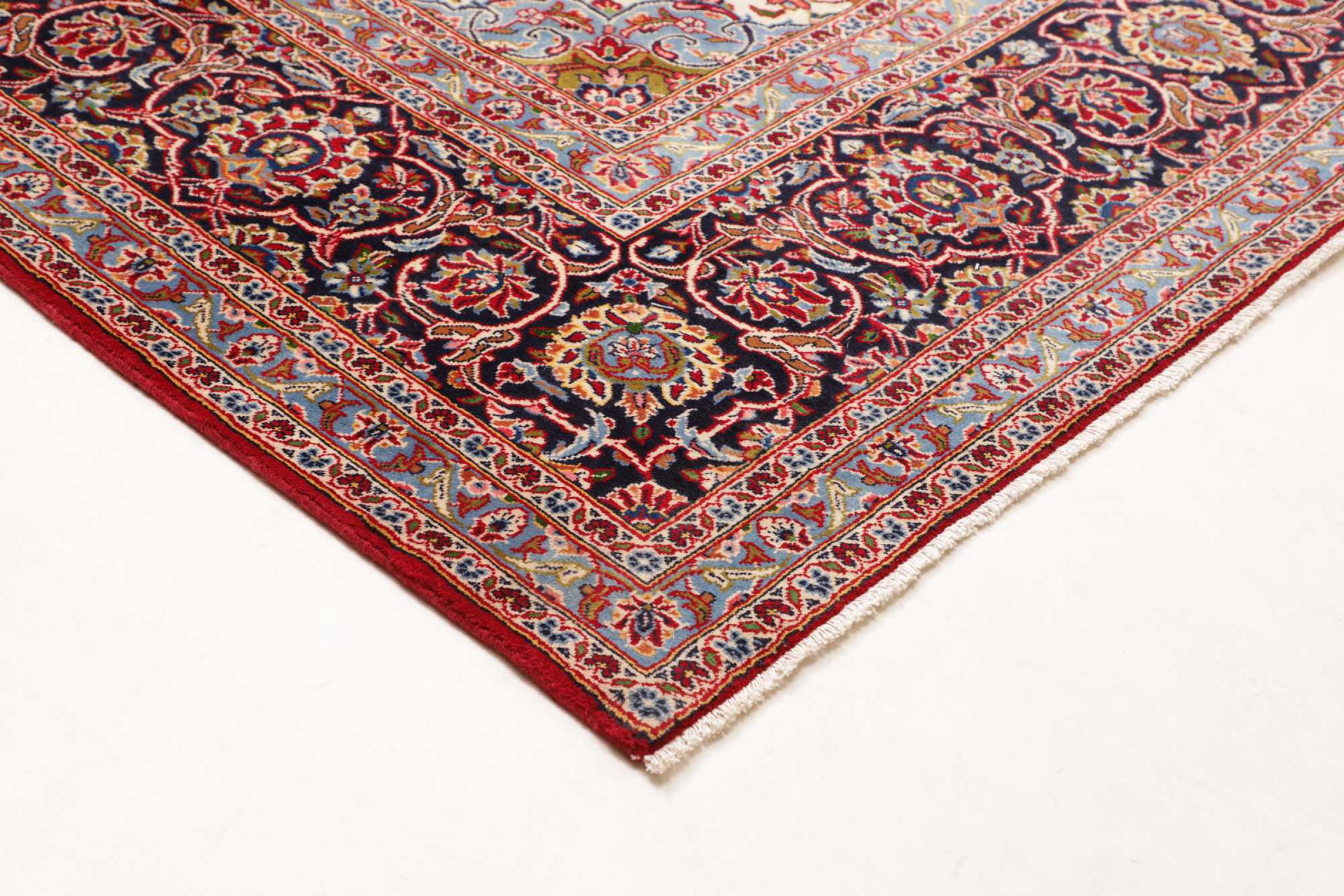 Tämä Kashanista (Keshan) kotoisin oleva matto on hyvin perinteinen ja tyypillinen persialainen muotoilu kauniilla koristeilla. Kashan-matot ovat erittäin suosittuja poikkeuksellisen tyylikkään muotoilunsa ansiosta. Nämä matot ovat peräisin Kashanista, muinaisen Silkkitien varrella sijaitsevasta kaupungista. Tämä matto on solmittu käsin korkealaatuisesta lampaanvillasta, ja se tulee olemaan ainutlaatuinen kohokohta kotiisi.