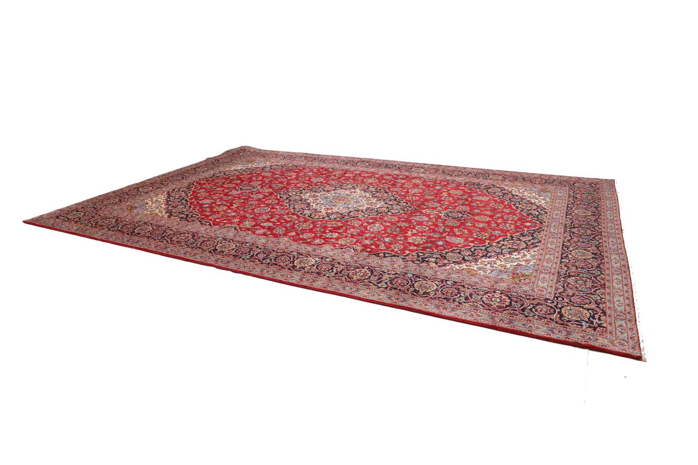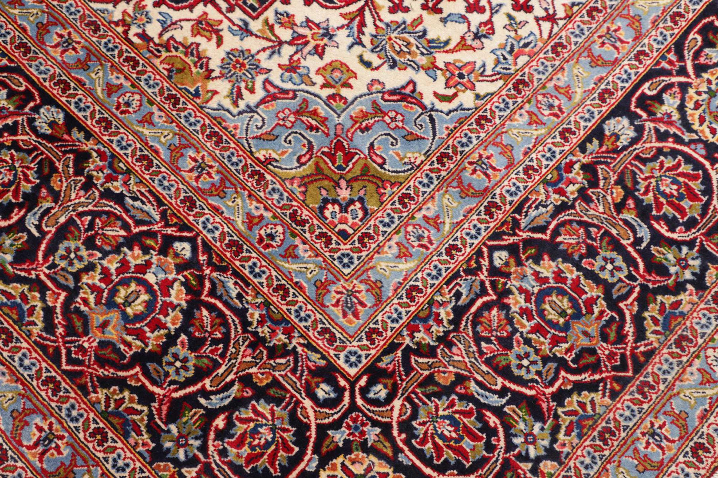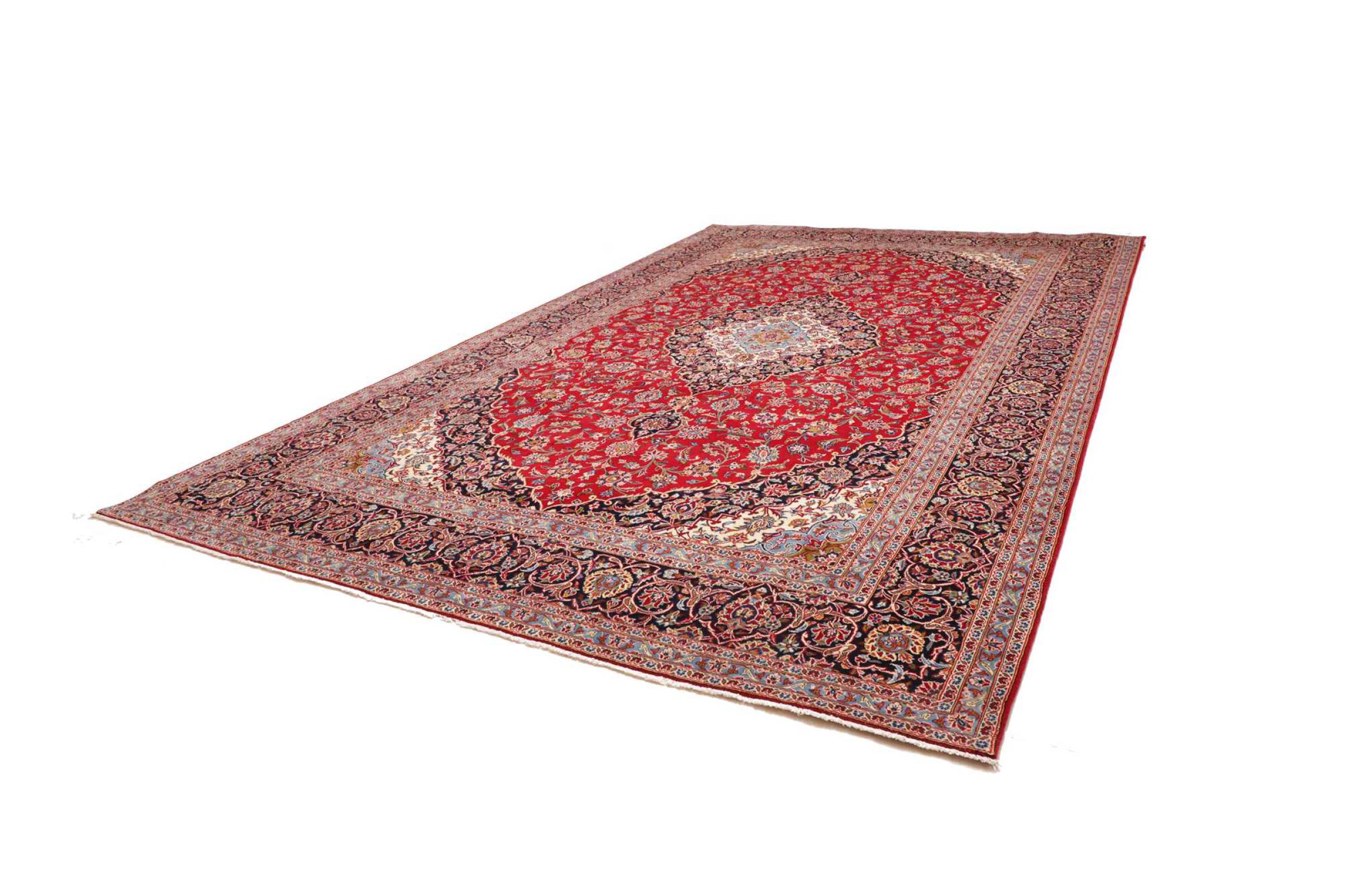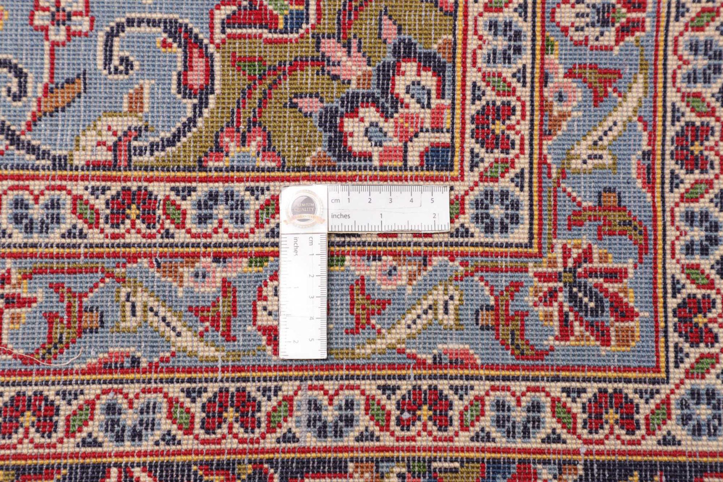 Tämä Kashanista (Keshan) kotoisin oleva matto on hyvin perinteinen ja tyypillinen persialainen muotoilu kauniilla koristeilla. Kashan-matot ovat erittäin suosittuja poikkeuksellisen tyylikkään muotoilunsa ansiosta. Nämä matot ovat peräisin Kashanista, muinaisen Silkkitien varrella sijaitsevasta kaupungista. Tämä matto on solmittu käsin korkealaatuisesta lampaanvillasta, ja se tulee olemaan ainutlaatuinen kohokohta kotiisi.