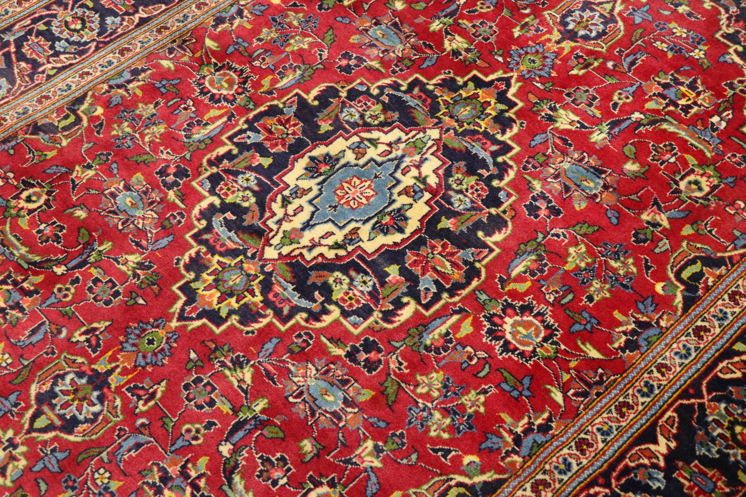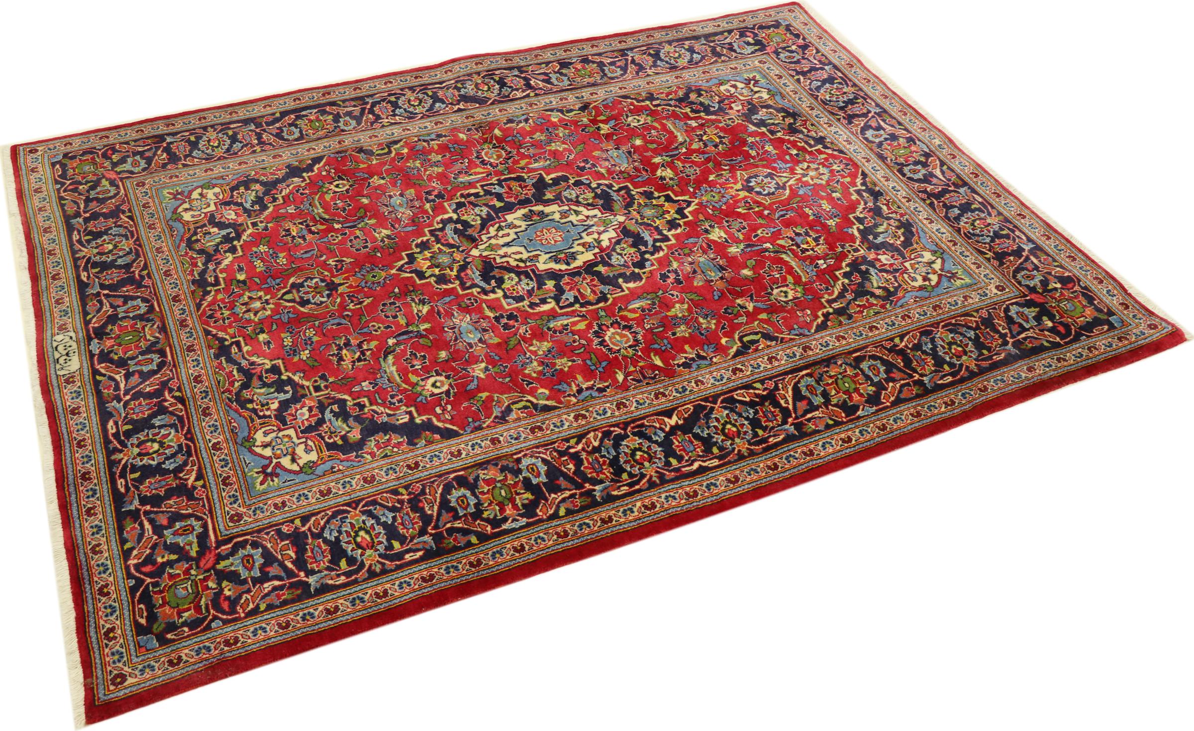 Tämä Kashanista (Keshan) kotoisin oleva matto on hyvin perinteinen ja tyypillinen persialainen muotoilu kauniilla koristeilla. Kashan-matot ovat erittäin suosittuja poikkeuksellisen tyylikkään muotoilunsa ansiosta. Nämä matot ovat peräisin Kashanista, muinaisen Silkkitien varrella sijaitsevasta kaupungista. Tämä matto on solmittu käsin korkealaatuisesta lampaanvillasta, ja se tulee olemaan ainutlaatuinen kohokohta kotiisi.