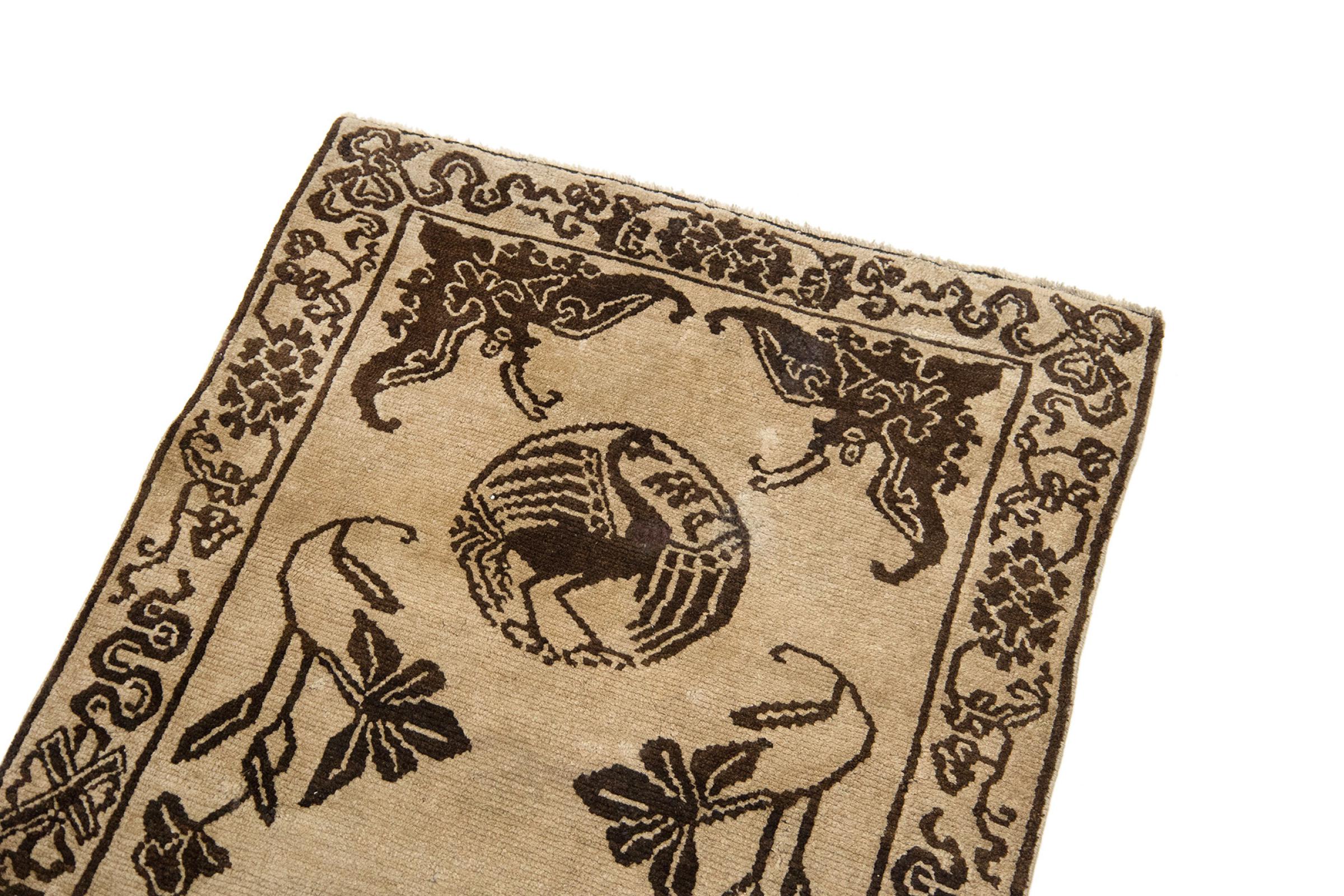 Tämä antiikkimatto Kiinasta on käsinsolmittu ja riittää sellaisenaan vastaamaan kaikkia kiinalaisen mattokulttuurin tuntijan toiveita. Korkea laatu, villanukka ja muotoilu puhuvat kaikki tämän maton ostamisen puolesta.