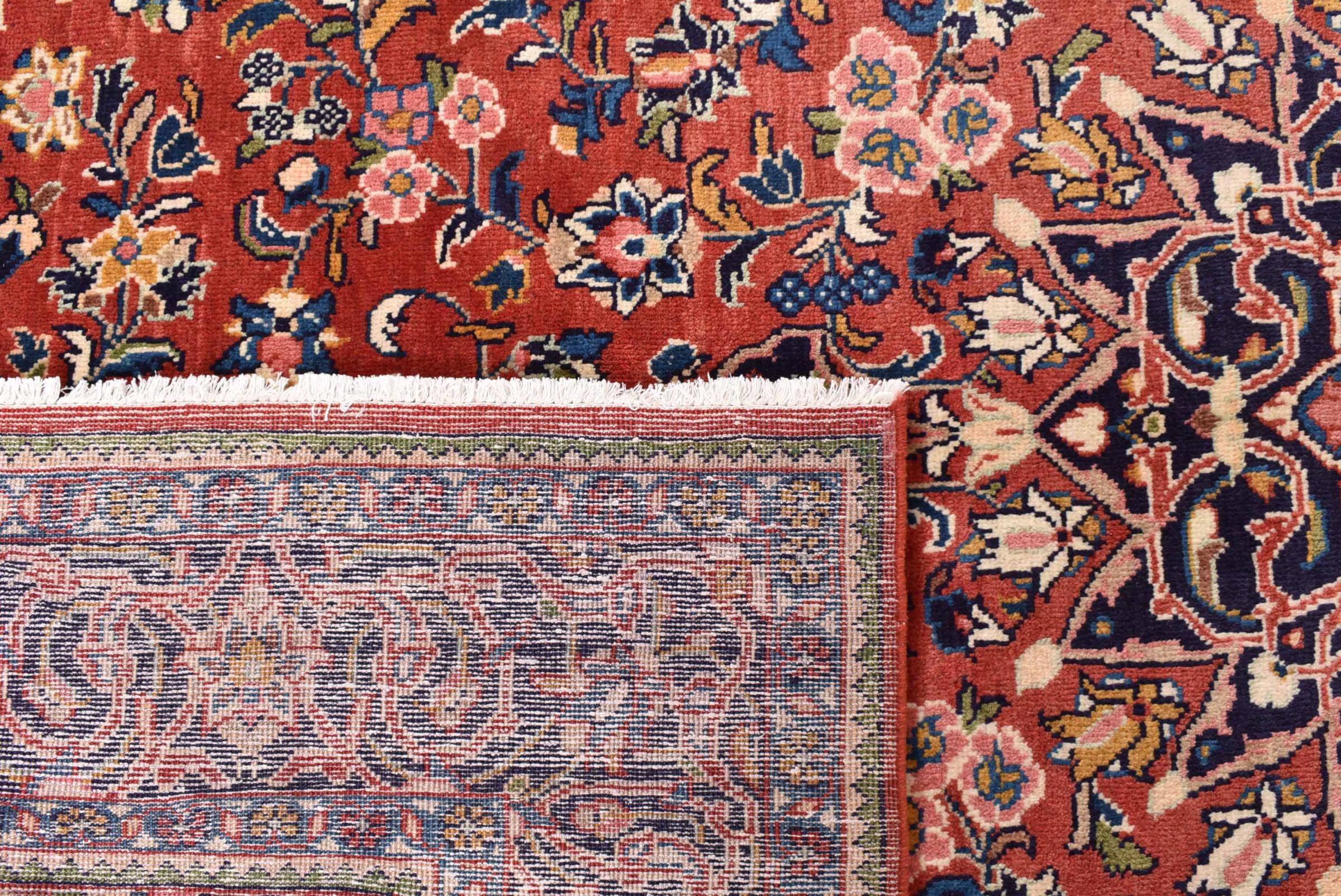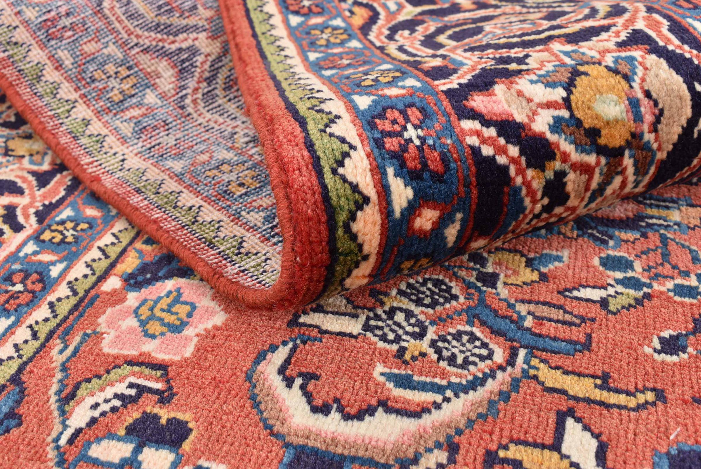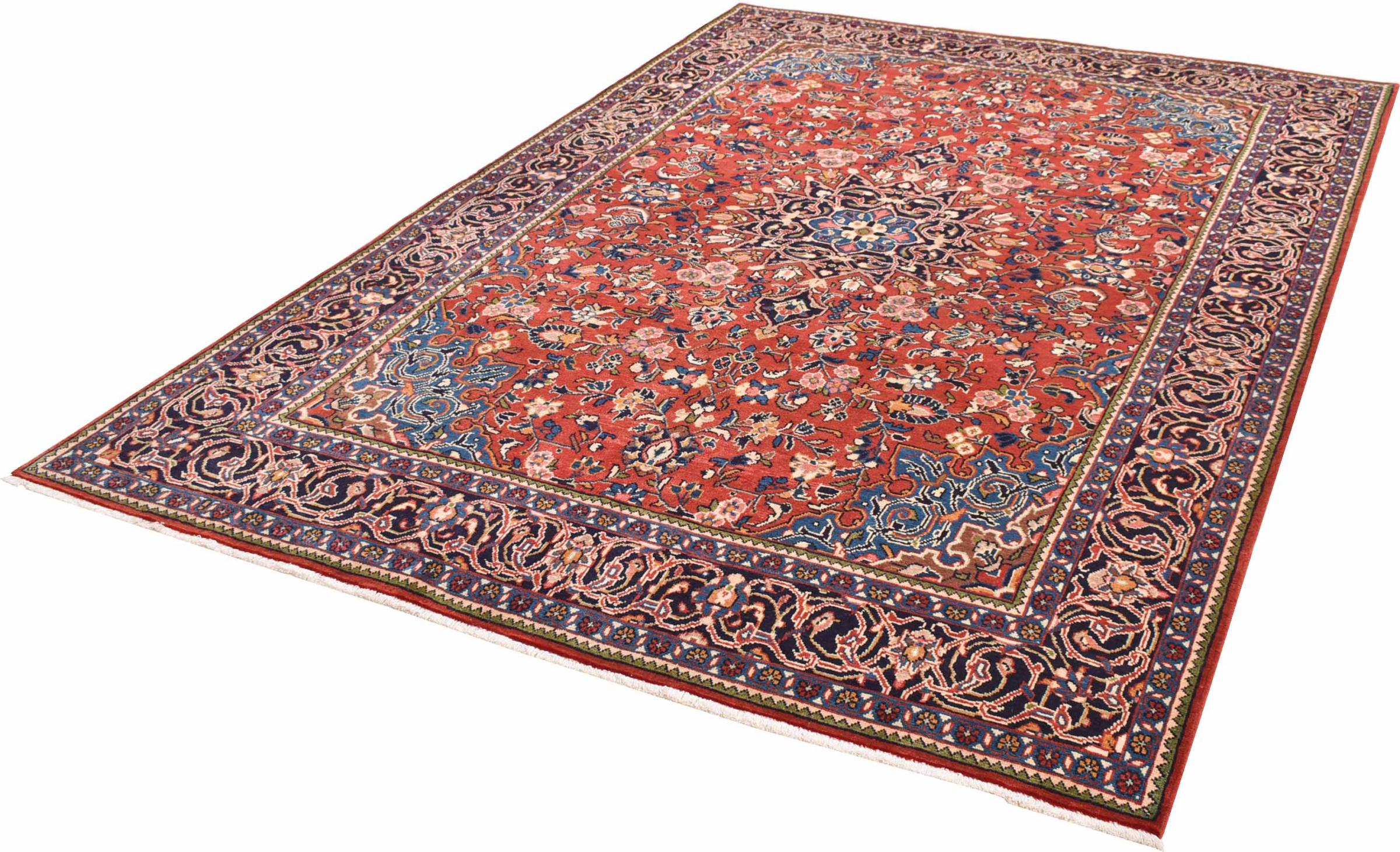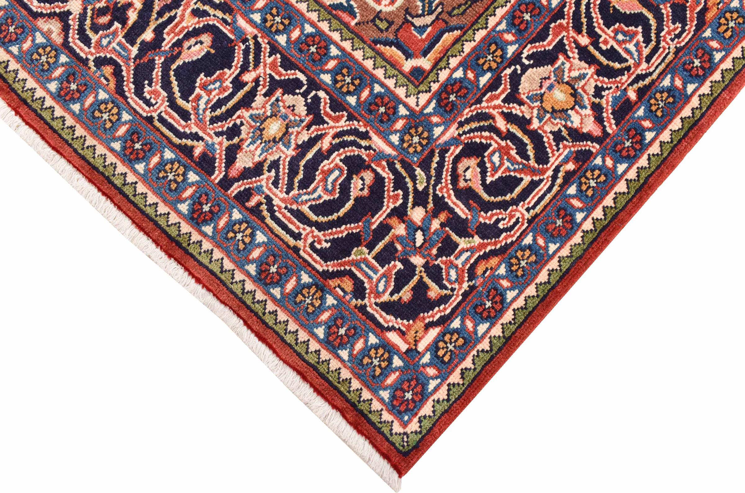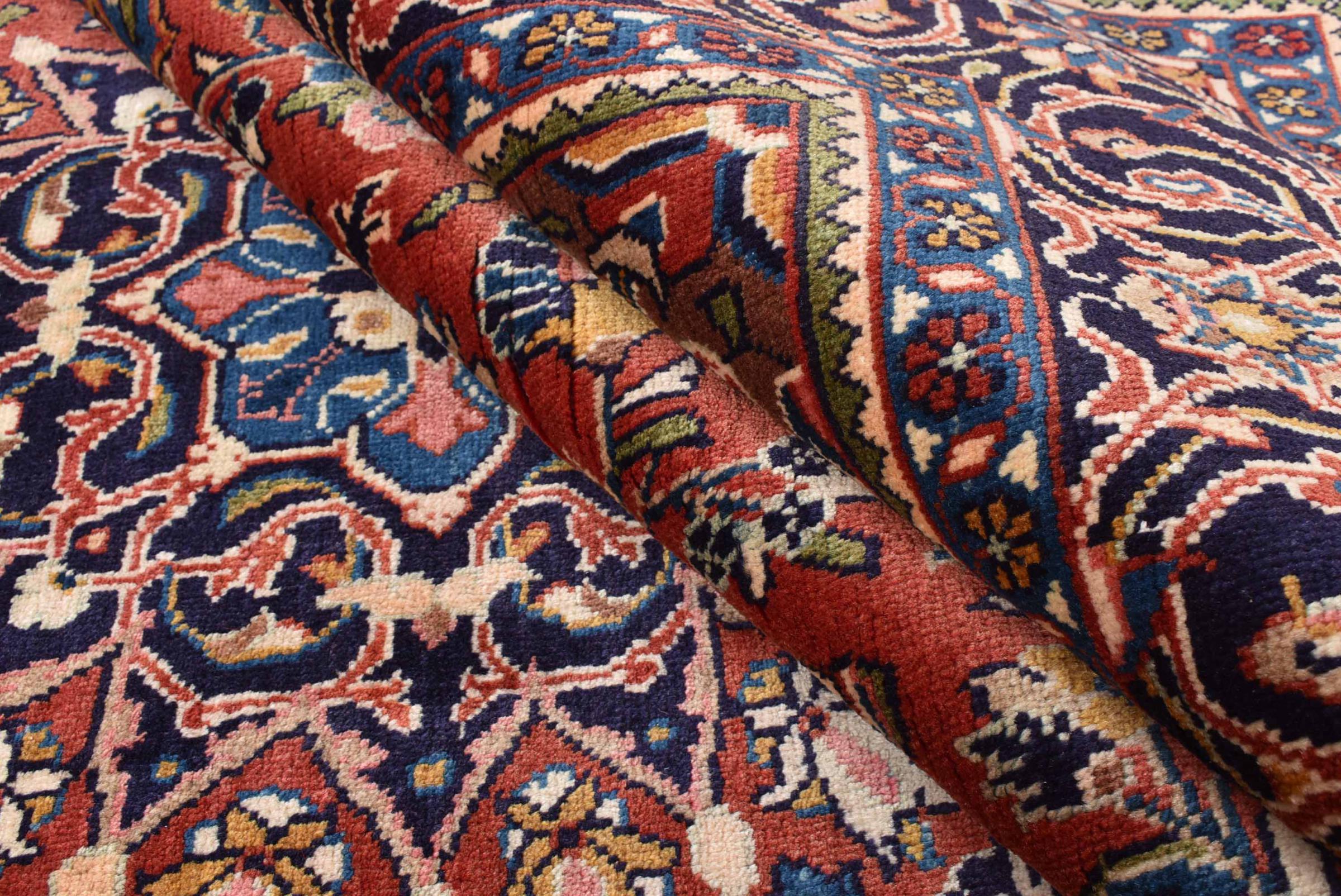 Tämä itämainen matto on peräisin Mahalin alkuperästä, joka sijaitsee Keski-Iranissa. Muotoilu loistaa ystävällisessä värimaailmassa harmonisesti yhteensovitetuilla väreillä. Yksityiskohtainen runko esittelee tyylikkäästi sisäkentän hienosti muotoiltuja aiheita. Aidona käsinsolmitun ja kestävän persialaisena matonna malli on yhtä aikaa esteettinen ja kestävä – ihanteellinen eteiseen tai olohuoneeseen.