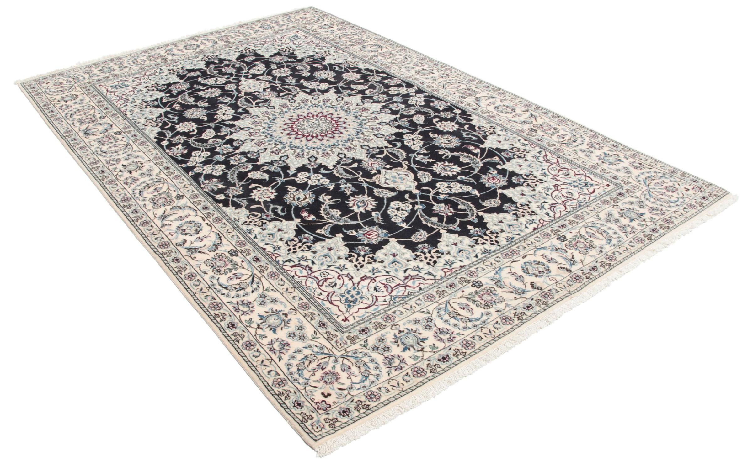 Tässä Nain-matossa yhdistyvät laatu, perinne ja selkeä muotoilu. Se on kudottu käsin samannimisessä Nain-kaupungissa aavikon laidalla, arvokkaasta kork-villasta ja luonnonsilkistä. Arvokkaiden Iranilaisten mattojen ihailija pitää varmasti tästä persialaismatosta. Näiden Nain-mattojen 6La ja 4La luokittelu ei anna varaa erehdykselle.