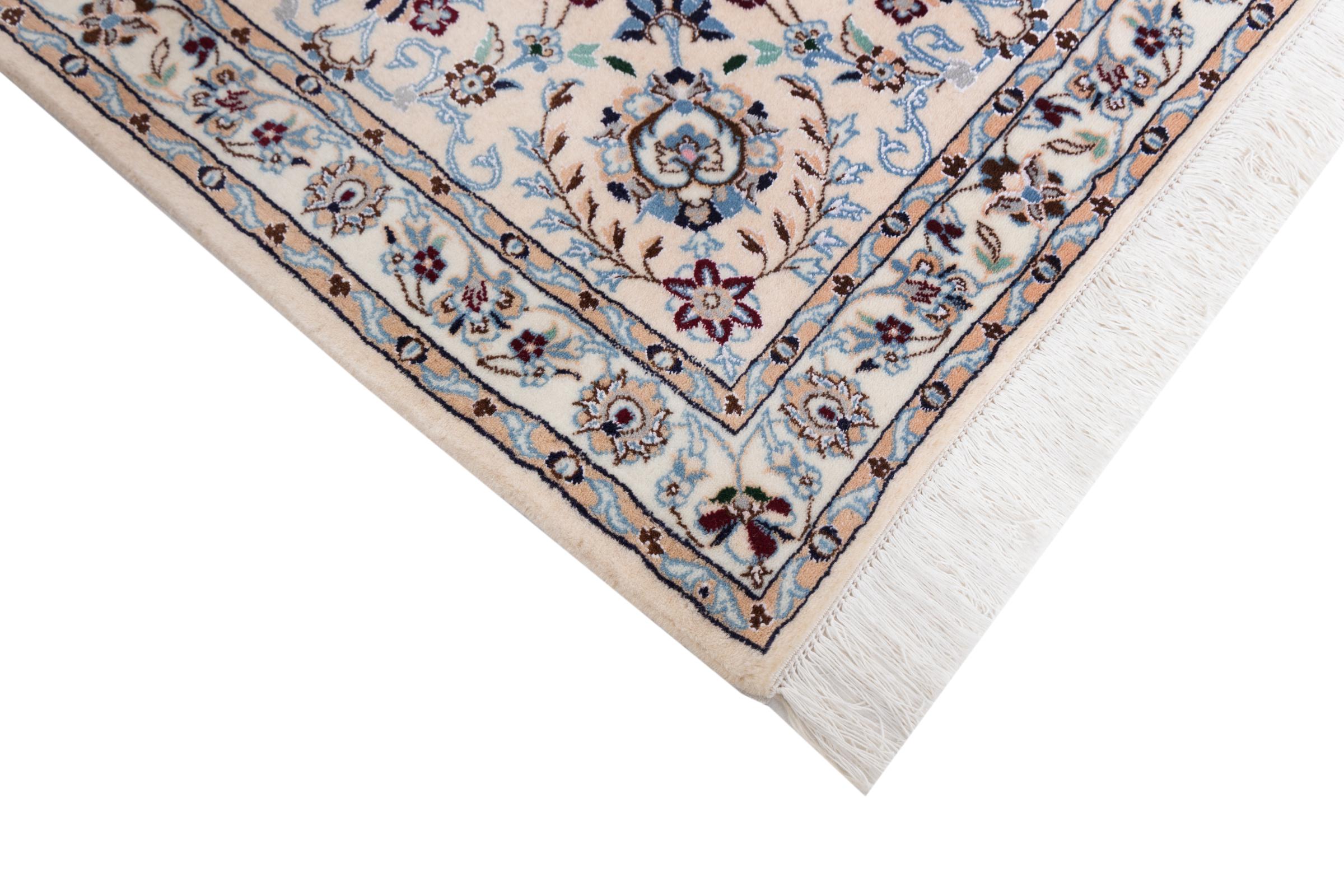 Tässä Nain-matossa yhdistyvät laatu, perinne ja selkeä muotoilu. Se on kudottu käsin samannimisessä Nain-kaupungissa aavikon laidalla, arvokkaasta kork-villasta ja luonnonsilkistä. Arvokkaiden Iranilaisten mattojen ihailija pitää varmasti tästä persialaismatosta. Näiden Nain-mattojen 6La ja 4La luokittelu ei anna varaa erehdykselle.