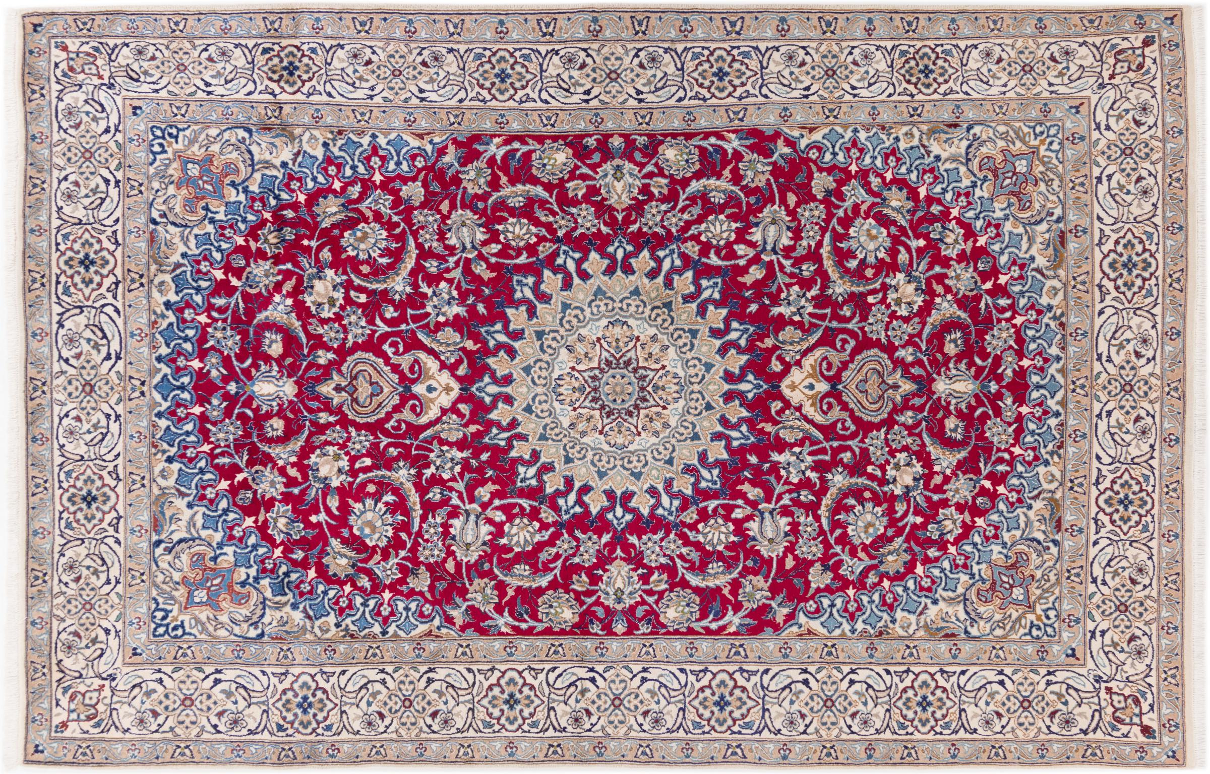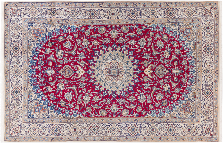Tämä Nain-matto on luokiteltu 9LA luokkaan. Hyvä laatu, kaunis itämainen muotoilu kaarevilla kuvioillaan ihastuttaa jokaista ostajaa. Tämä persialaismatto on valmistettu Nainin kaupungissa, joka on Dascht-e-Kavir -aavikon länsireunalla, arvokkaasta villasta ja luonnonsilkistä käsin solmien.