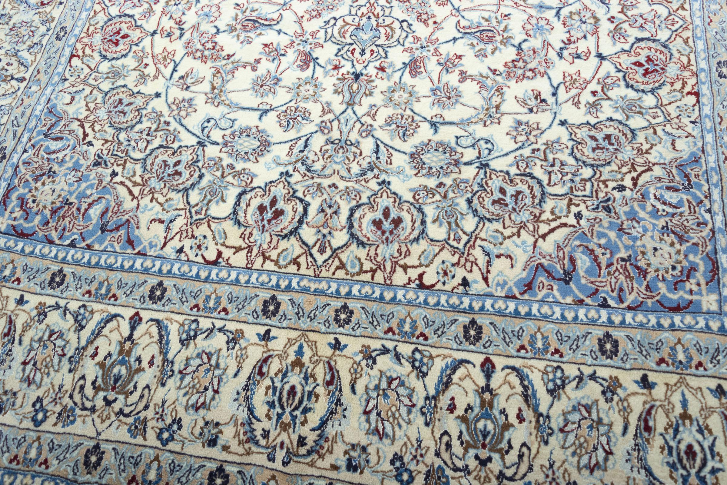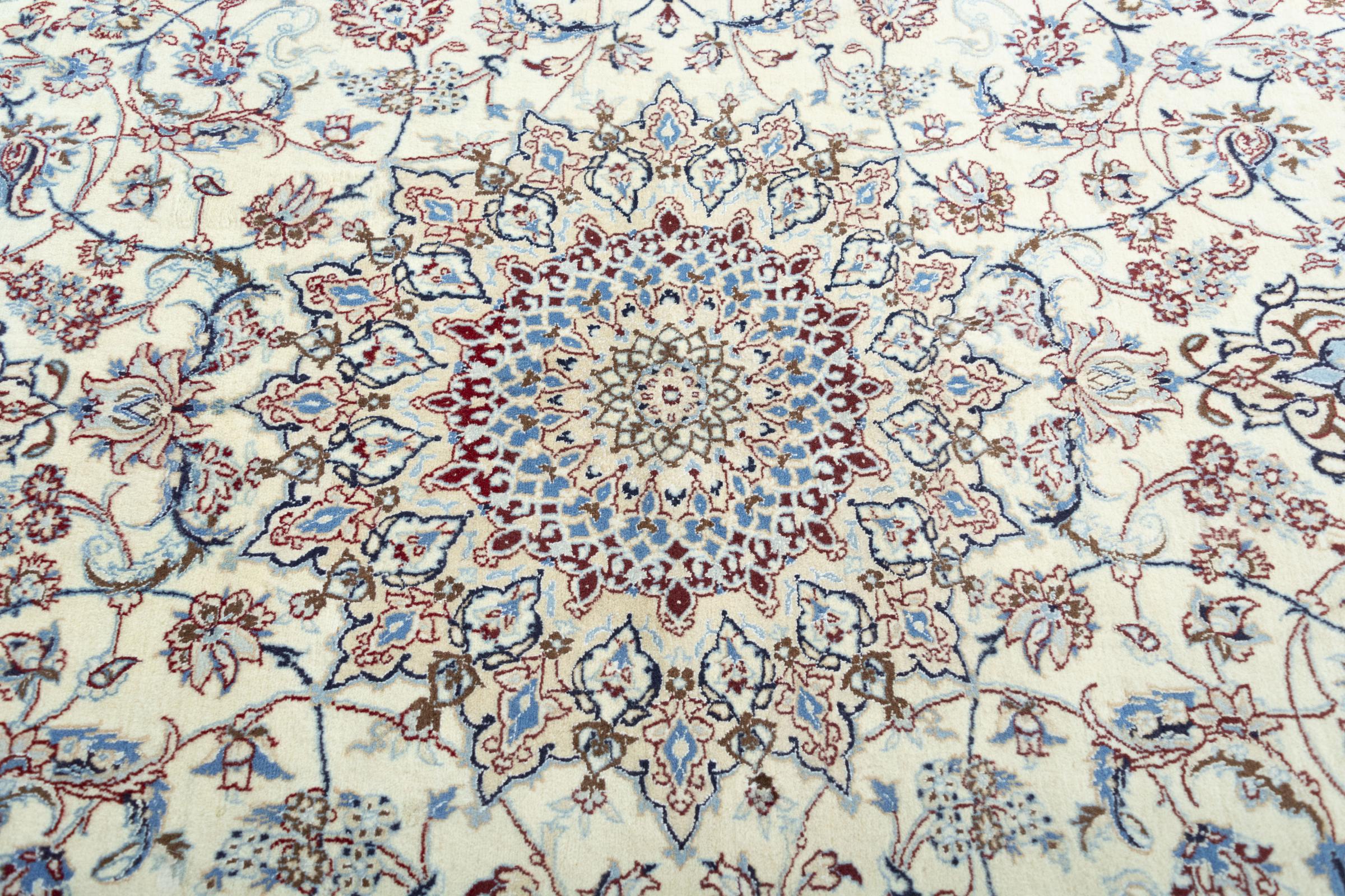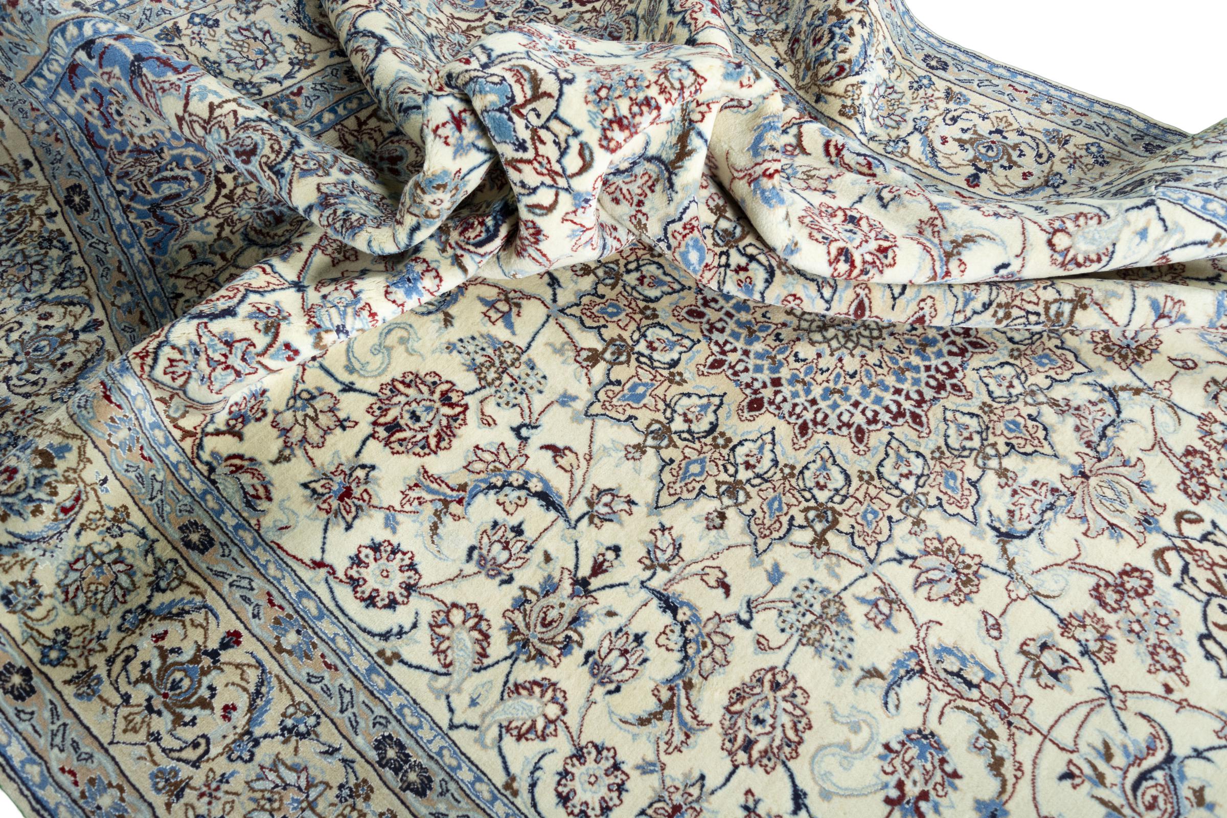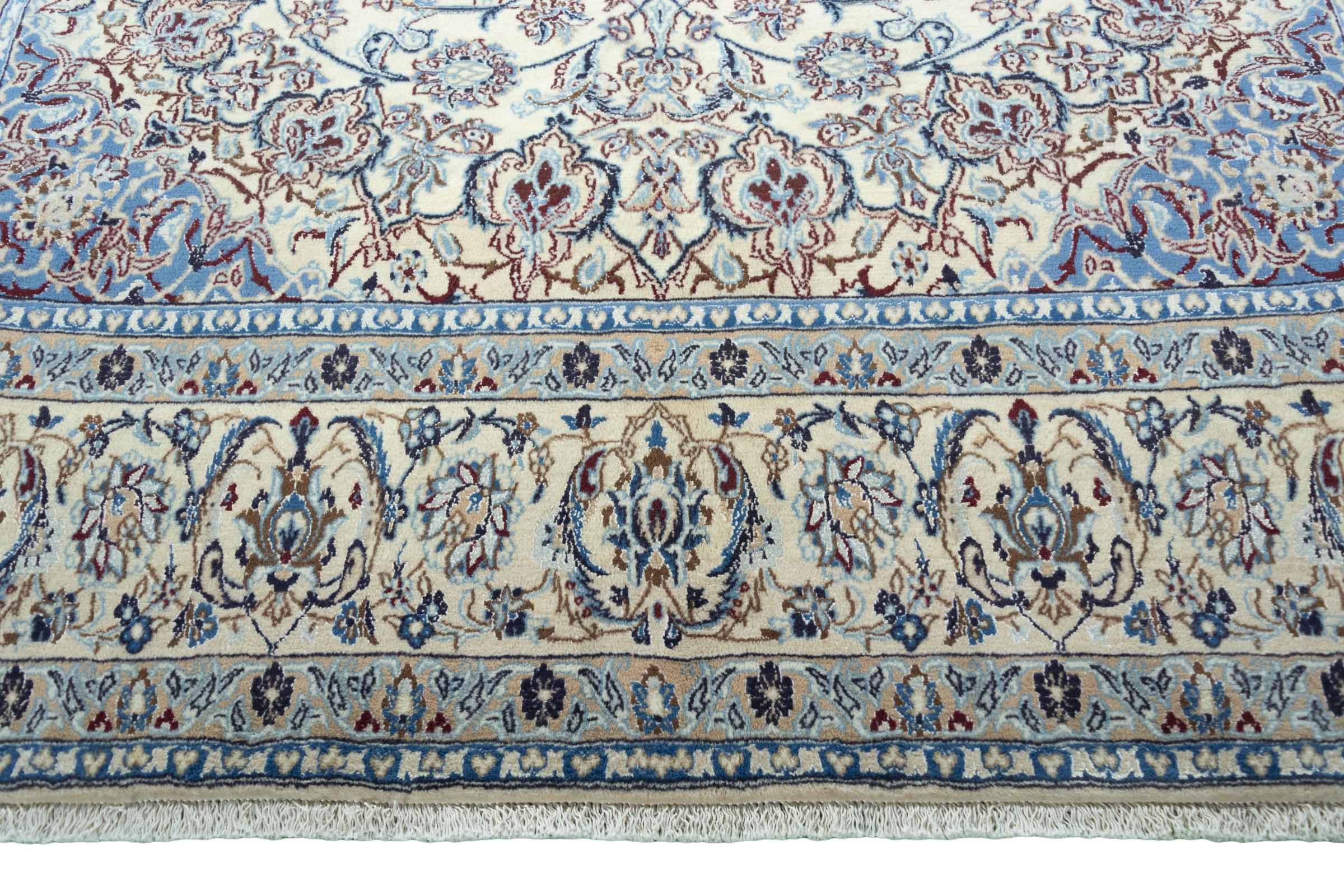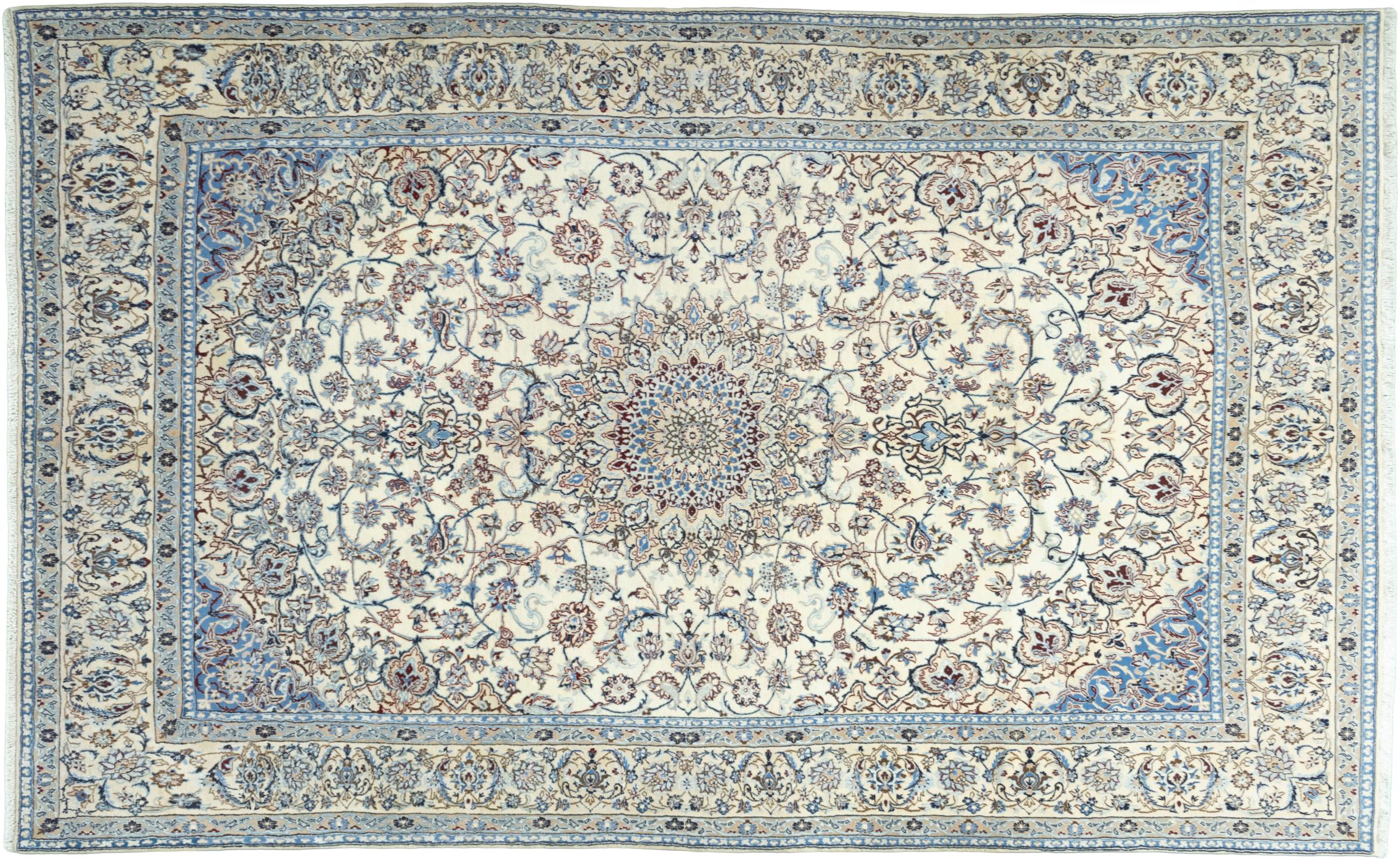 Tämä Nain-matto on luokiteltu 9LA luokkaan. Hyvä laatu, kaunis itämainen muotoilu kaarevilla kuvioillaan ihastuttaa jokaista ostajaa. Tämä persialaismatto on valmistettu Nainin kaupungissa, joka on Dascht-e-Kavir -aavikon länsireunalla, arvokkaasta villasta ja luonnonsilkistä käsin solmien.