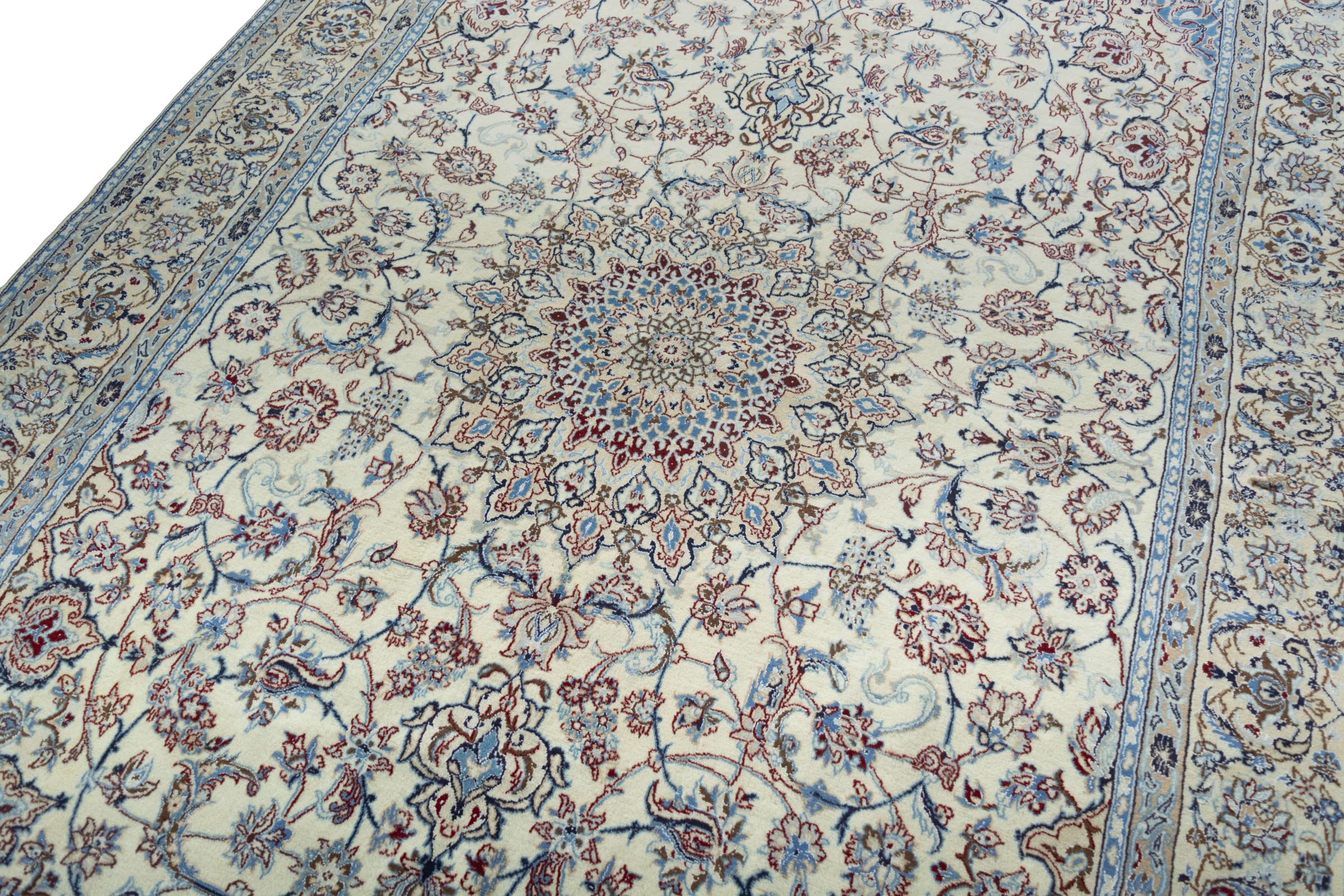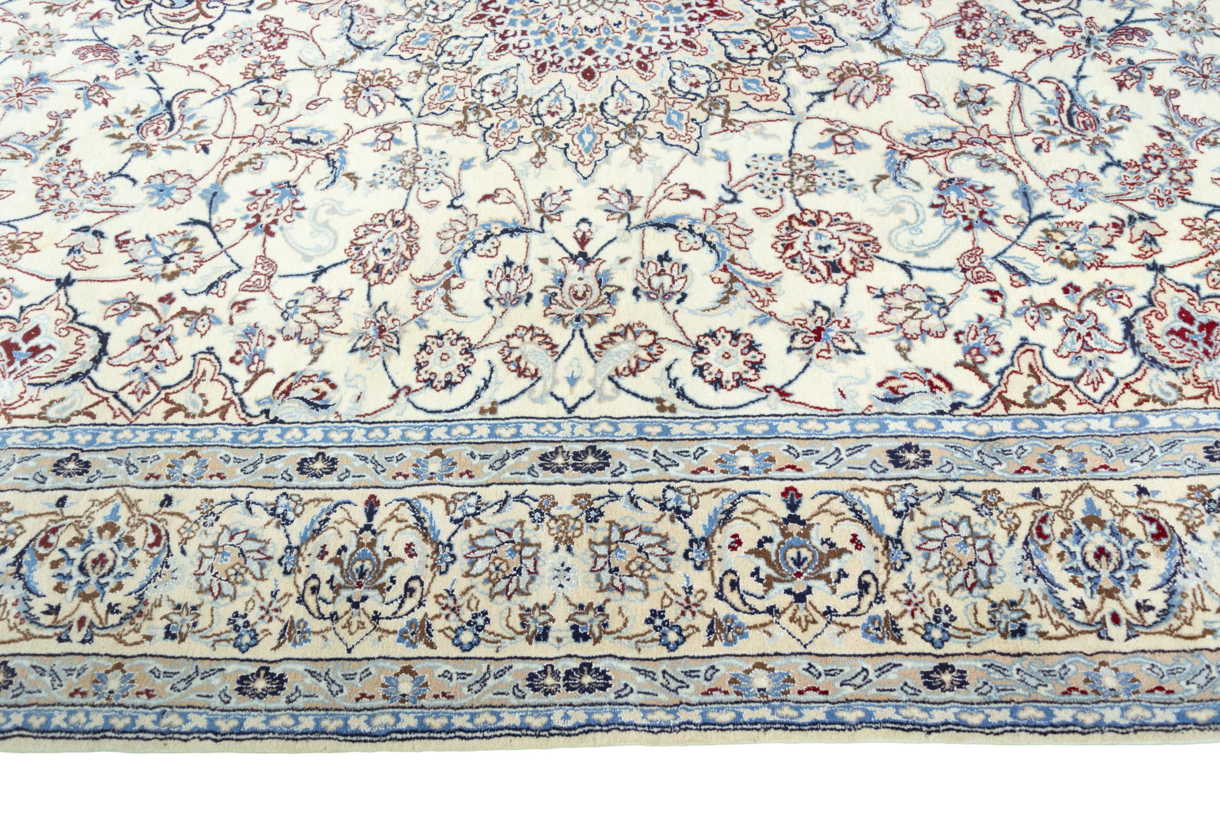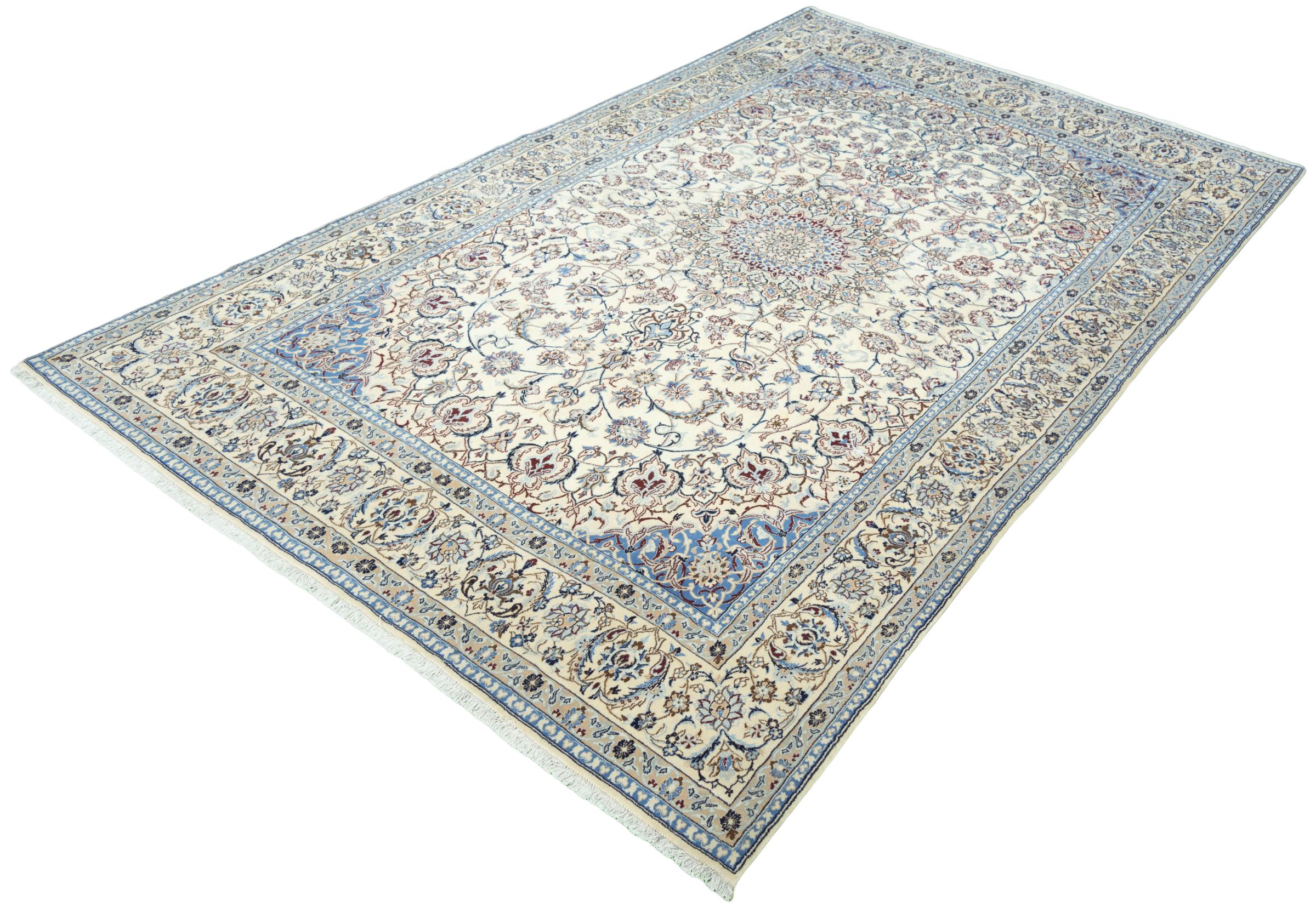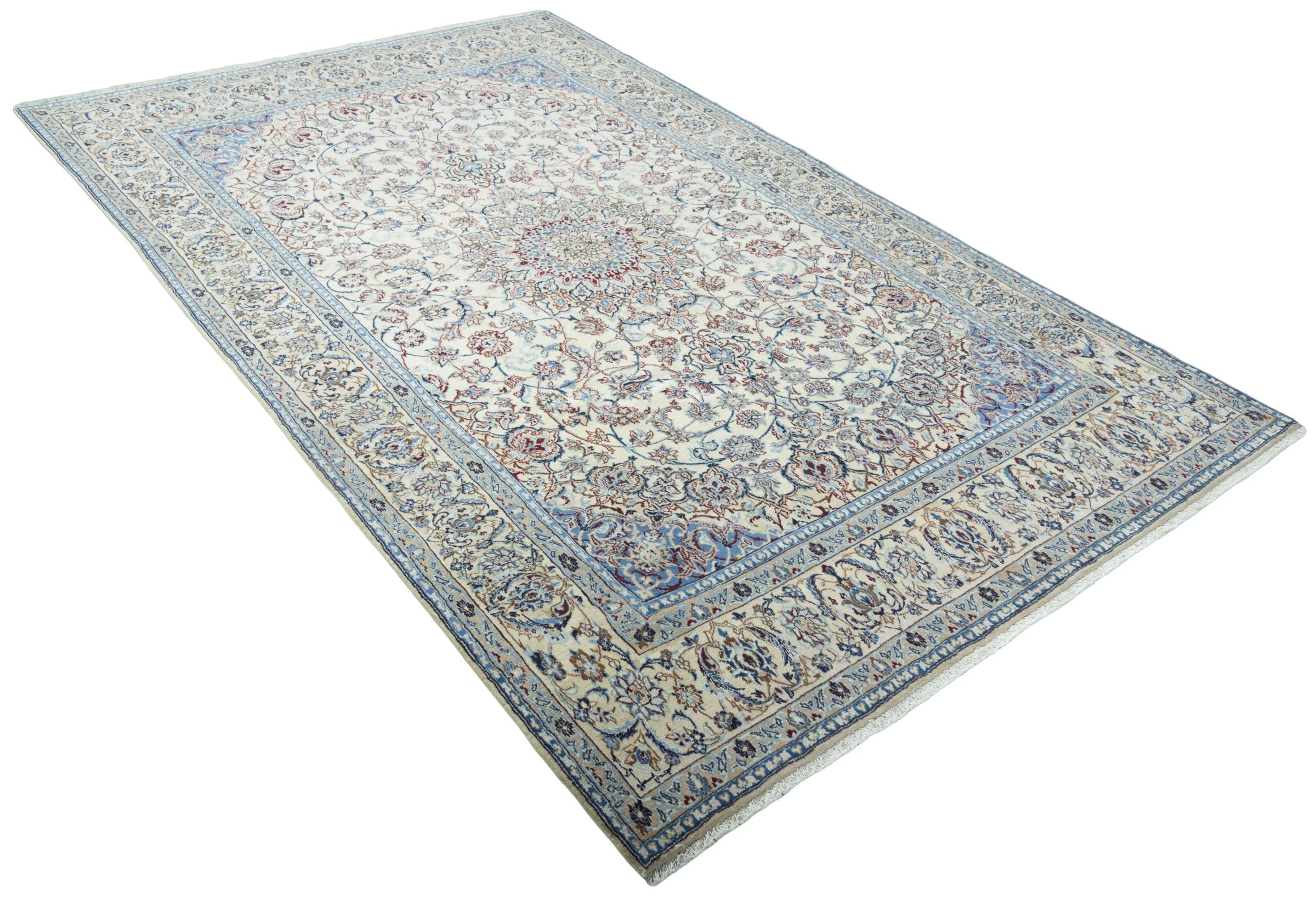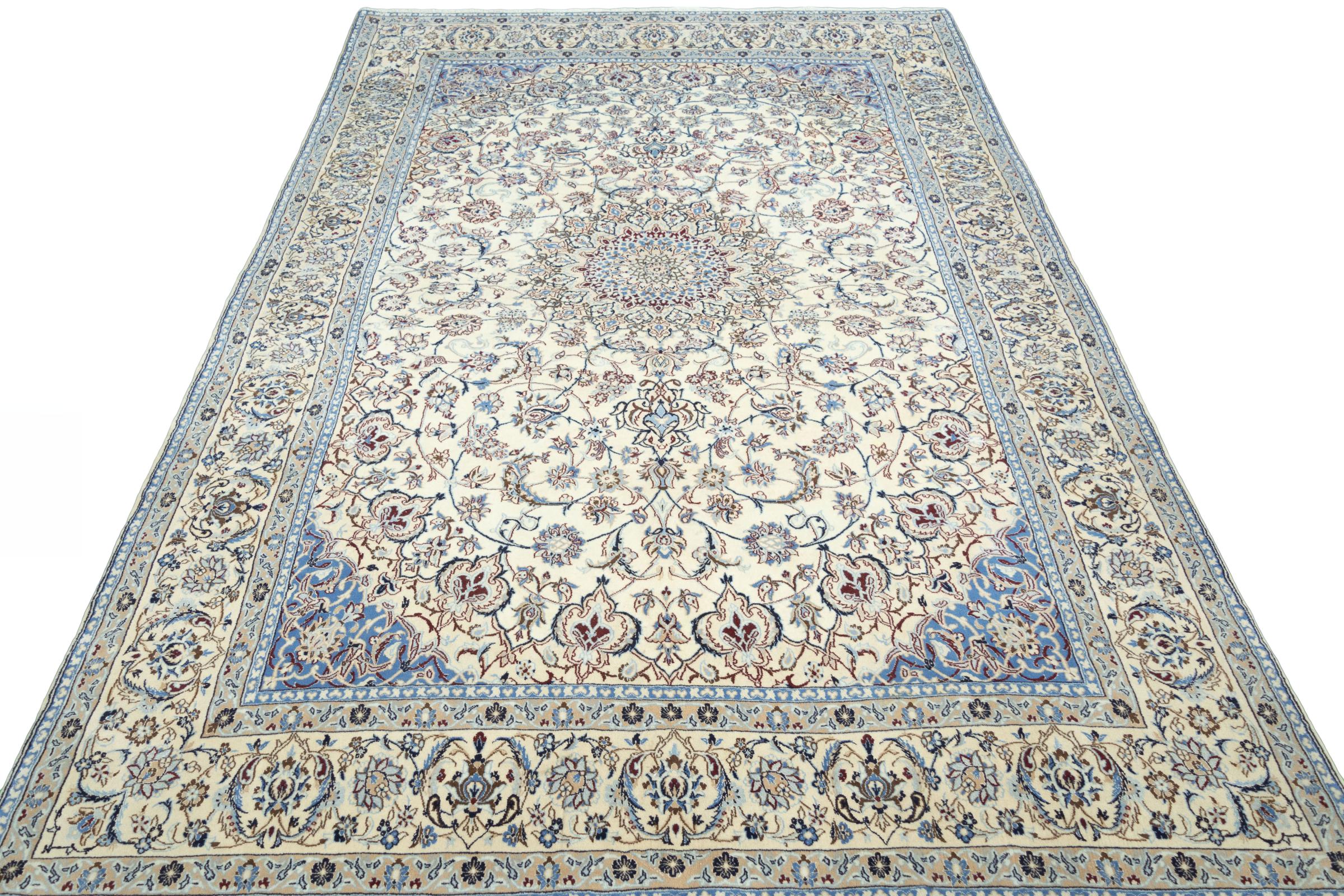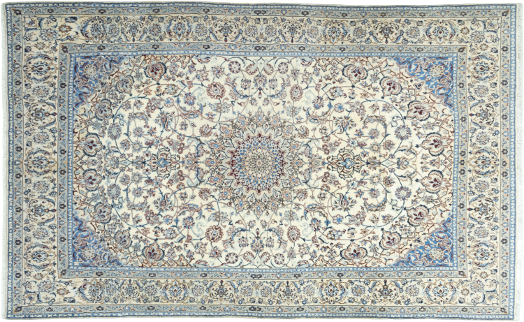 Tämä Nain-matto on luokiteltu 9LA luokkaan. Hyvä laatu, kaunis itämainen muotoilu kaarevilla kuvioillaan ihastuttaa jokaista ostajaa. Tämä persialaismatto on valmistettu Nainin kaupungissa, joka on Dascht-e-Kavir -aavikon länsireunalla, arvokkaasta villasta ja luonnonsilkistä käsin solmien.