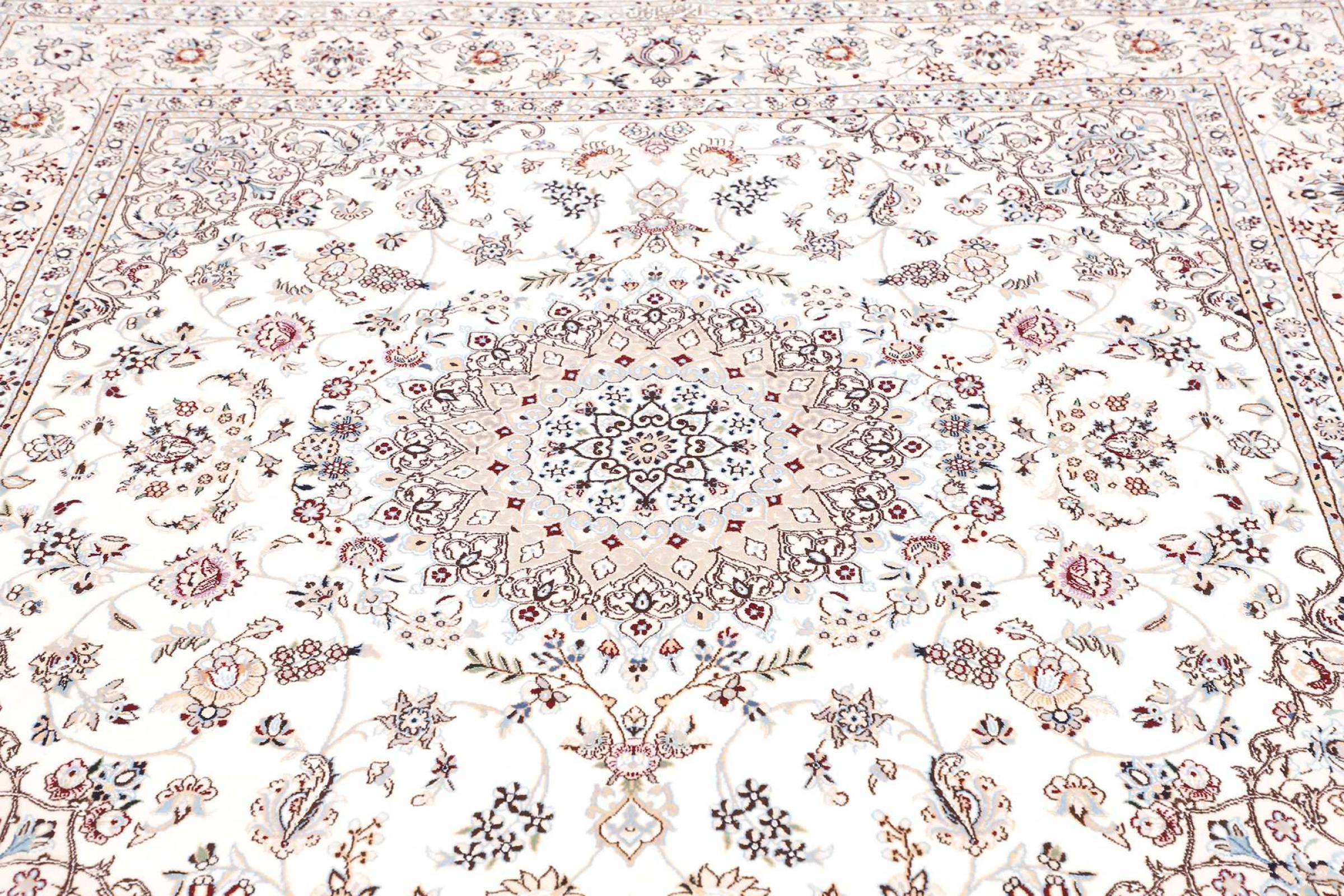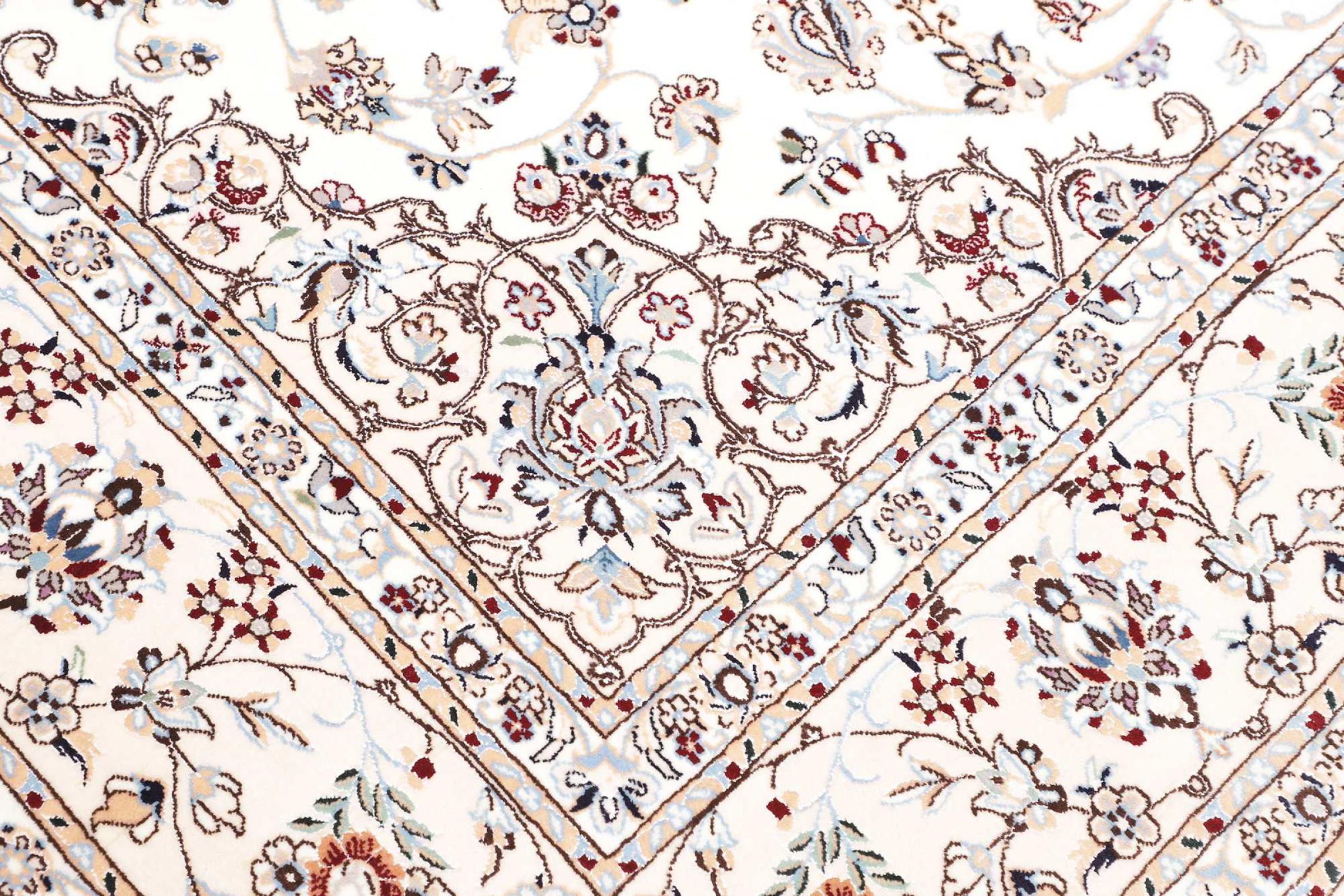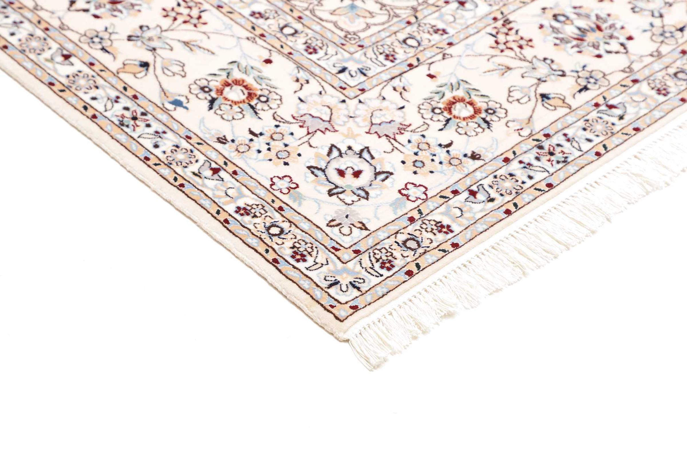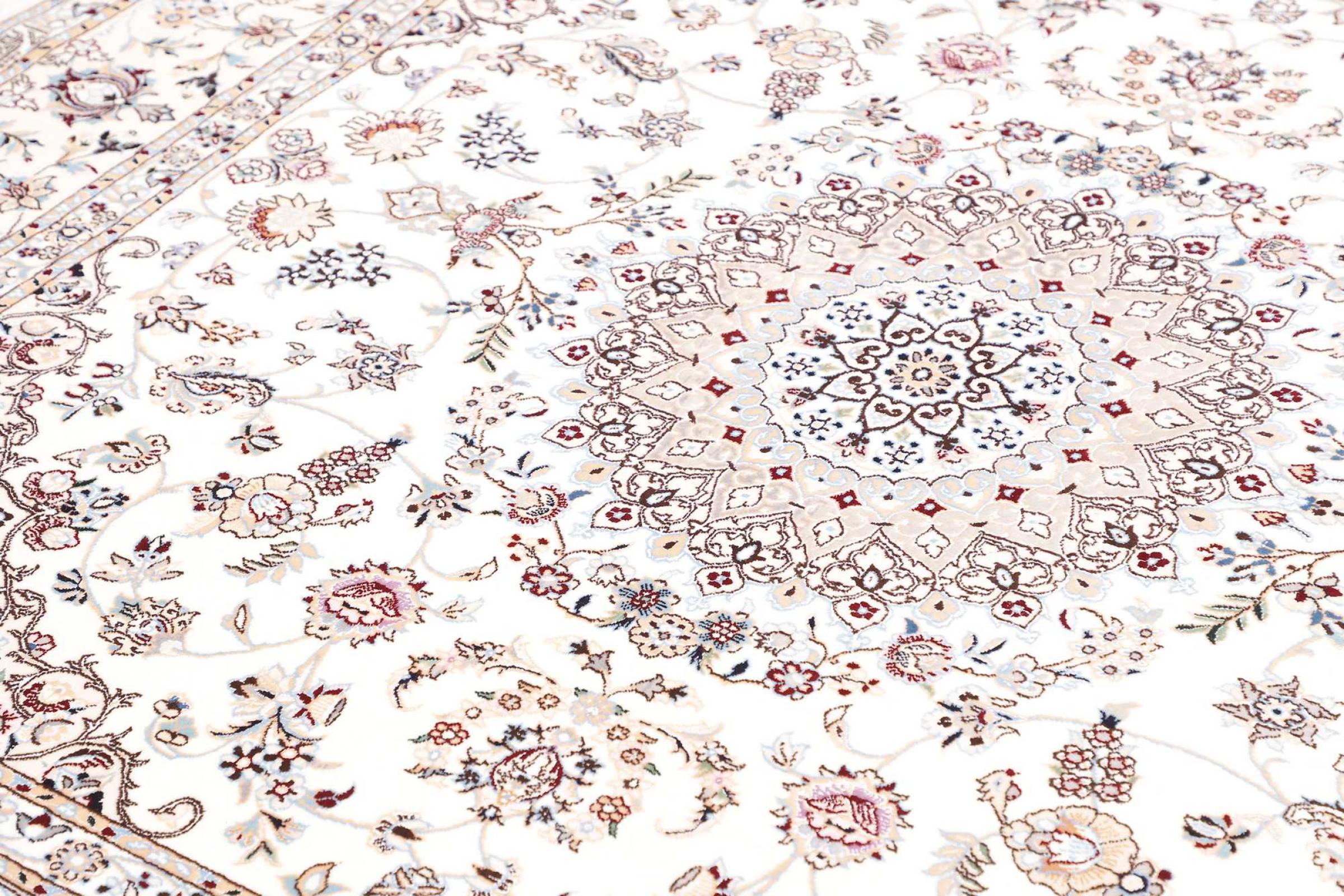 Tässä Nain-matossa yhdistyvät laatu, perinne ja selkeä muotoilu. Se on kudottu käsin samannimisessä Nain-kaupungissa aavikon laidalla, arvokkaasta kork-villasta ja luonnonsilkistä. Arvokkaiden Iranilaisten mattojen ihailija pitää varmasti tästä persialaismatosta. Näiden Nain-mattojen 6La ja 4La luokittelu ei anna varaa erehdykselle.