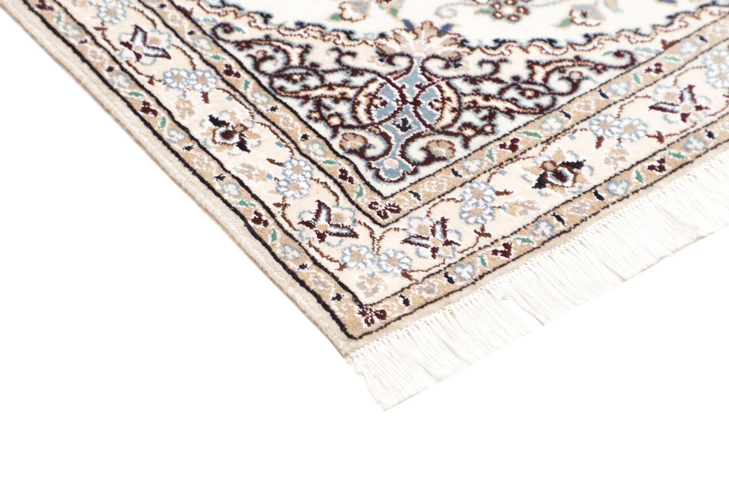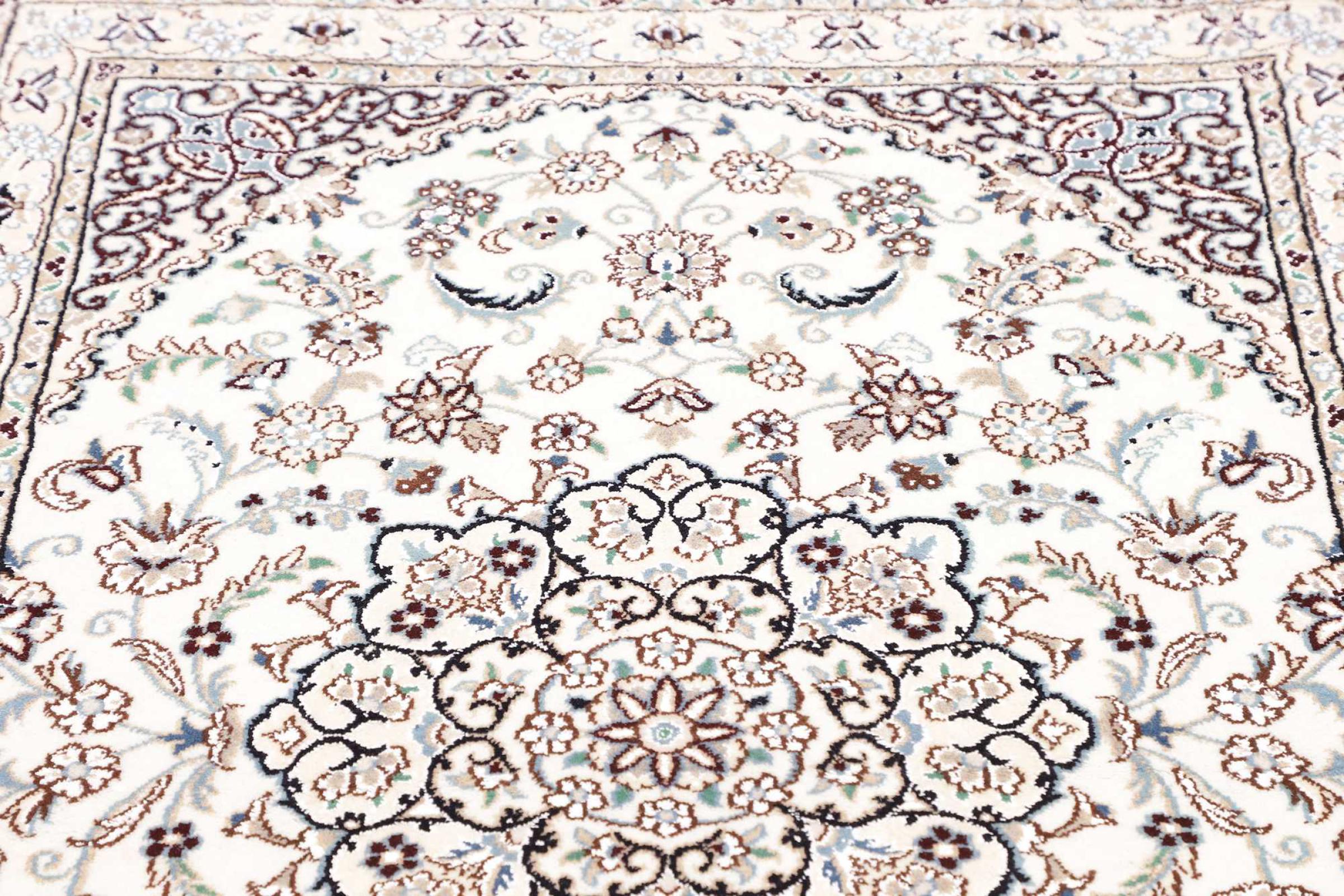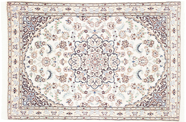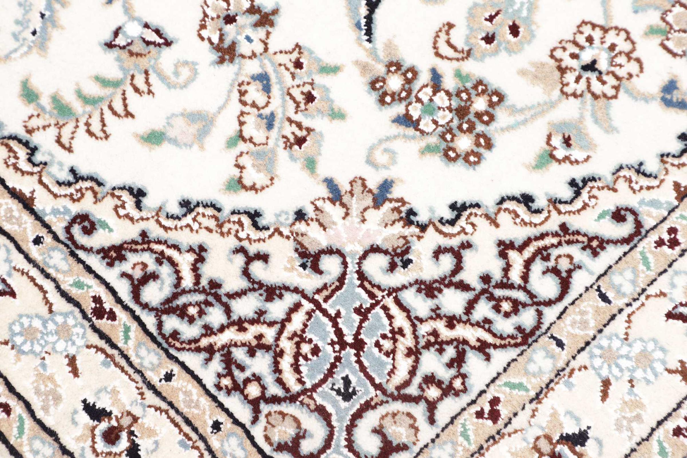 Tämä Nain-matto on luokiteltu 9LA luokkaan. Hyvä laatu, kaunis itämainen muotoilu kaarevilla kuvioillaan ihastuttaa jokaista ostajaa. Tämä persialaismatto on valmistettu Nainin kaupungissa, joka on Dascht-e-Kavir -aavikon länsireunalla, arvokkaasta villasta ja luonnonsilkistä käsin solmien.