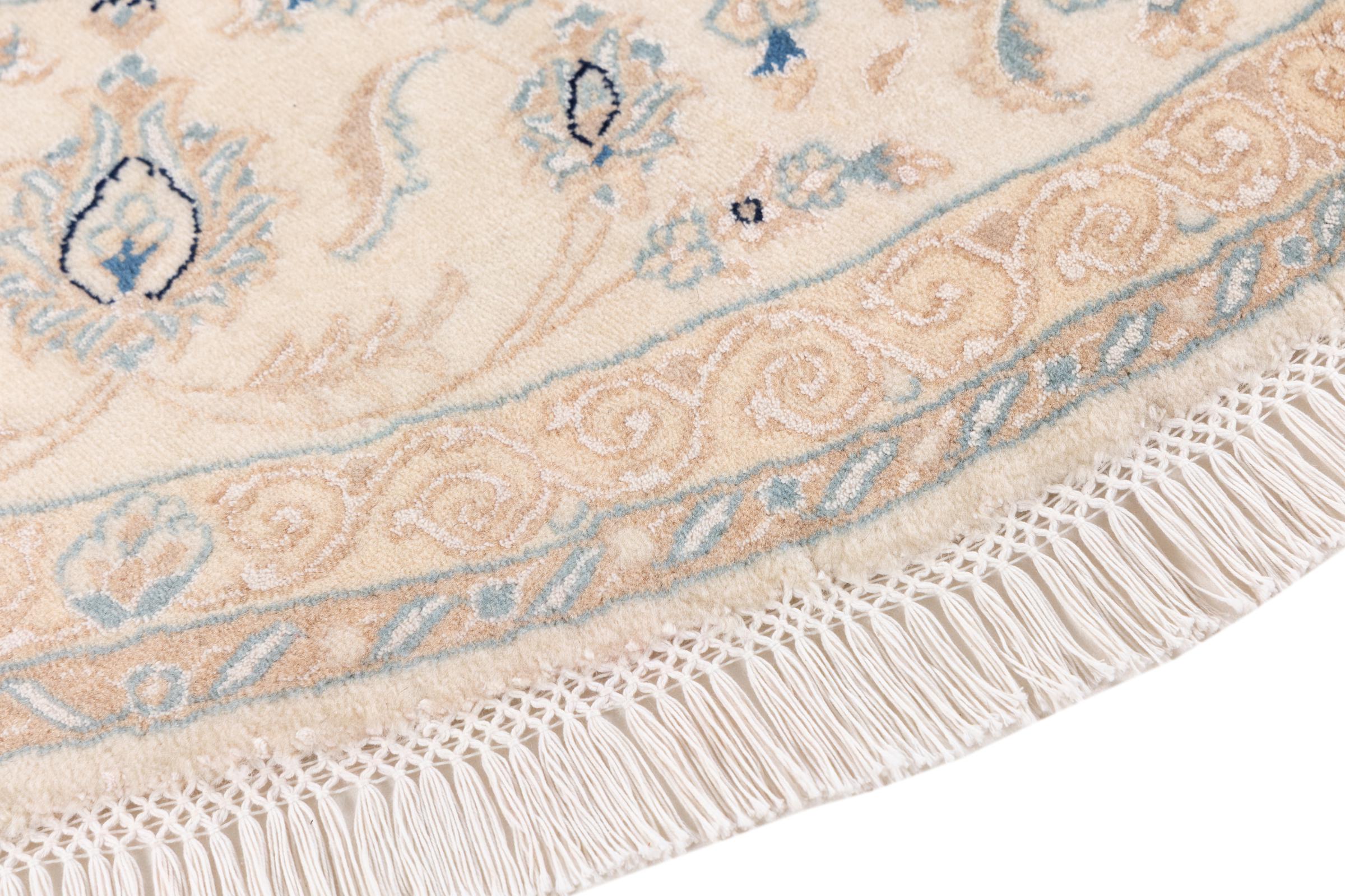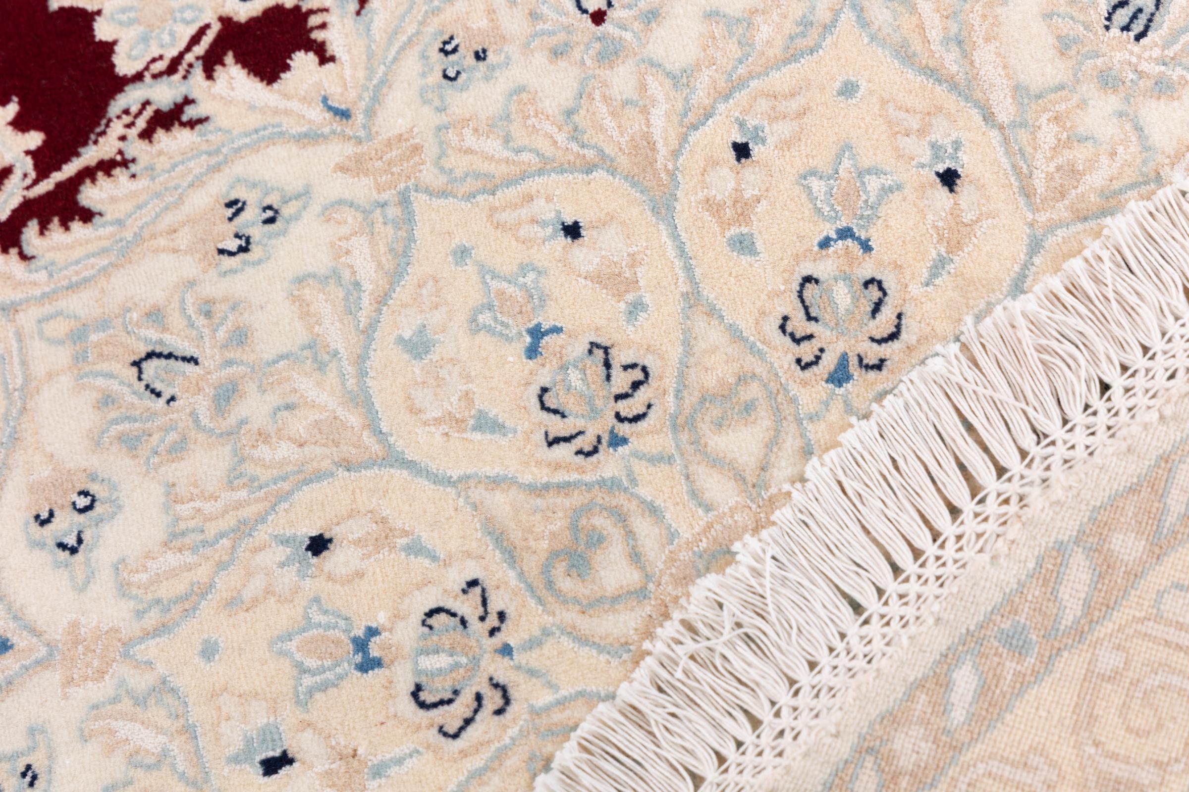 Tämä Nain-matto on luokiteltu 9LA luokkaan. Hyvä laatu, kaunis itämainen muotoilu kaarevilla kuvioillaan ihastuttaa jokaista ostajaa. Tämä persialaismatto on valmistettu Nainin kaupungissa, joka on Dascht-e-Kavir -aavikon länsireunalla, arvokkaasta villasta ja luonnonsilkistä käsin solmien.