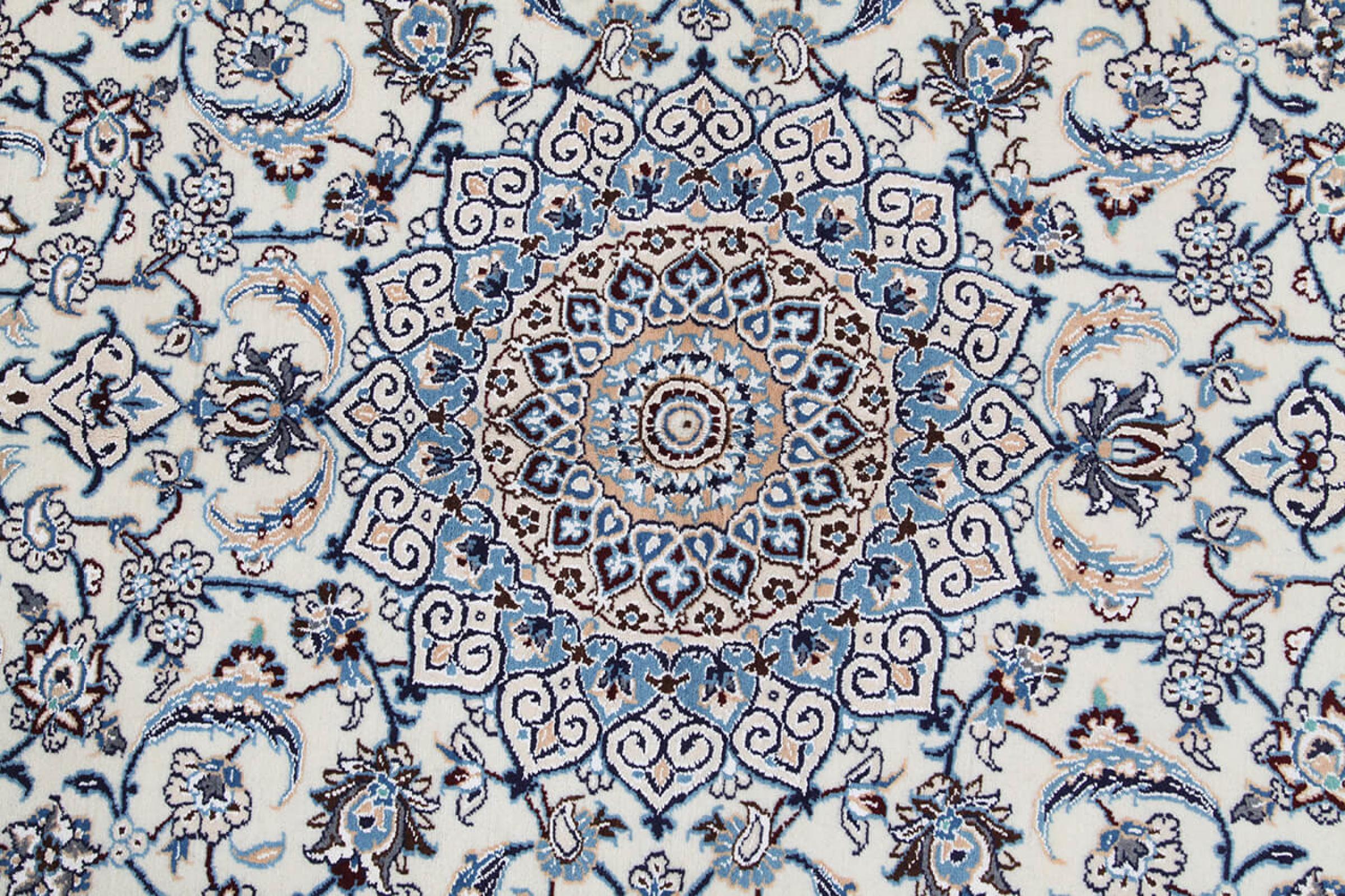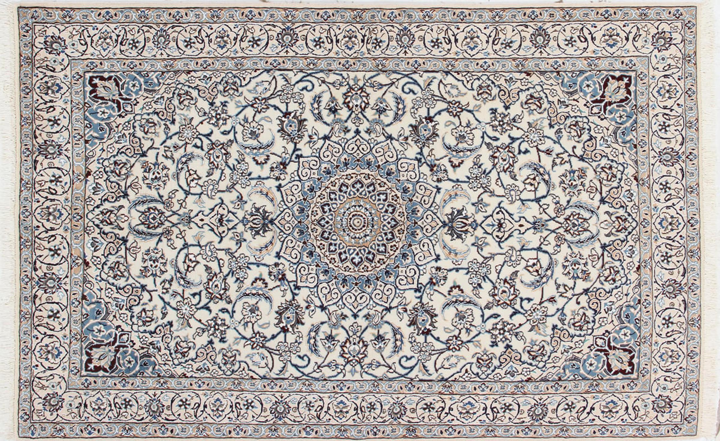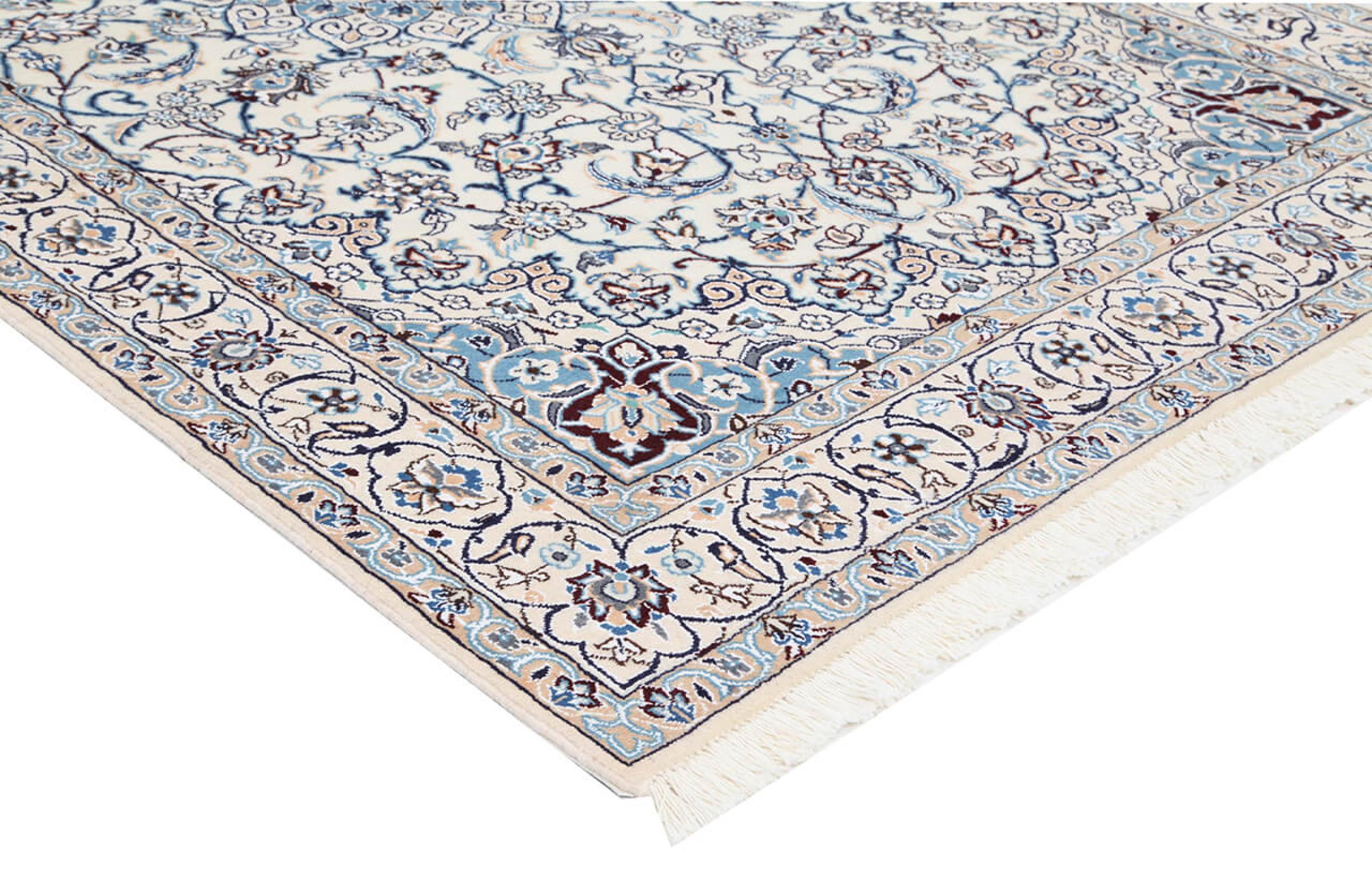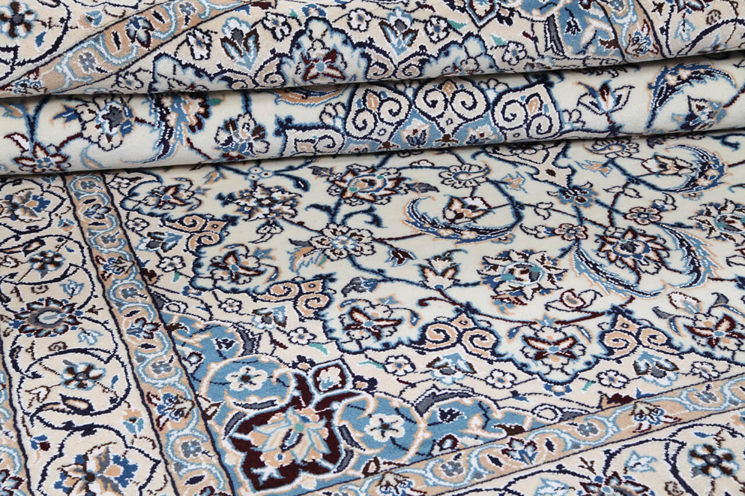 Tämä Nain-matto on luokiteltu 9LA luokkaan. Hyvä laatu, kaunis itämainen muotoilu kaarevilla kuvioillaan ihastuttaa jokaista ostajaa. Tämä persialaismatto on valmistettu Nainin kaupungissa, joka on Dascht-e-Kavir -aavikon länsireunalla, arvokkaasta villasta ja luonnonsilkistä käsin solmien.