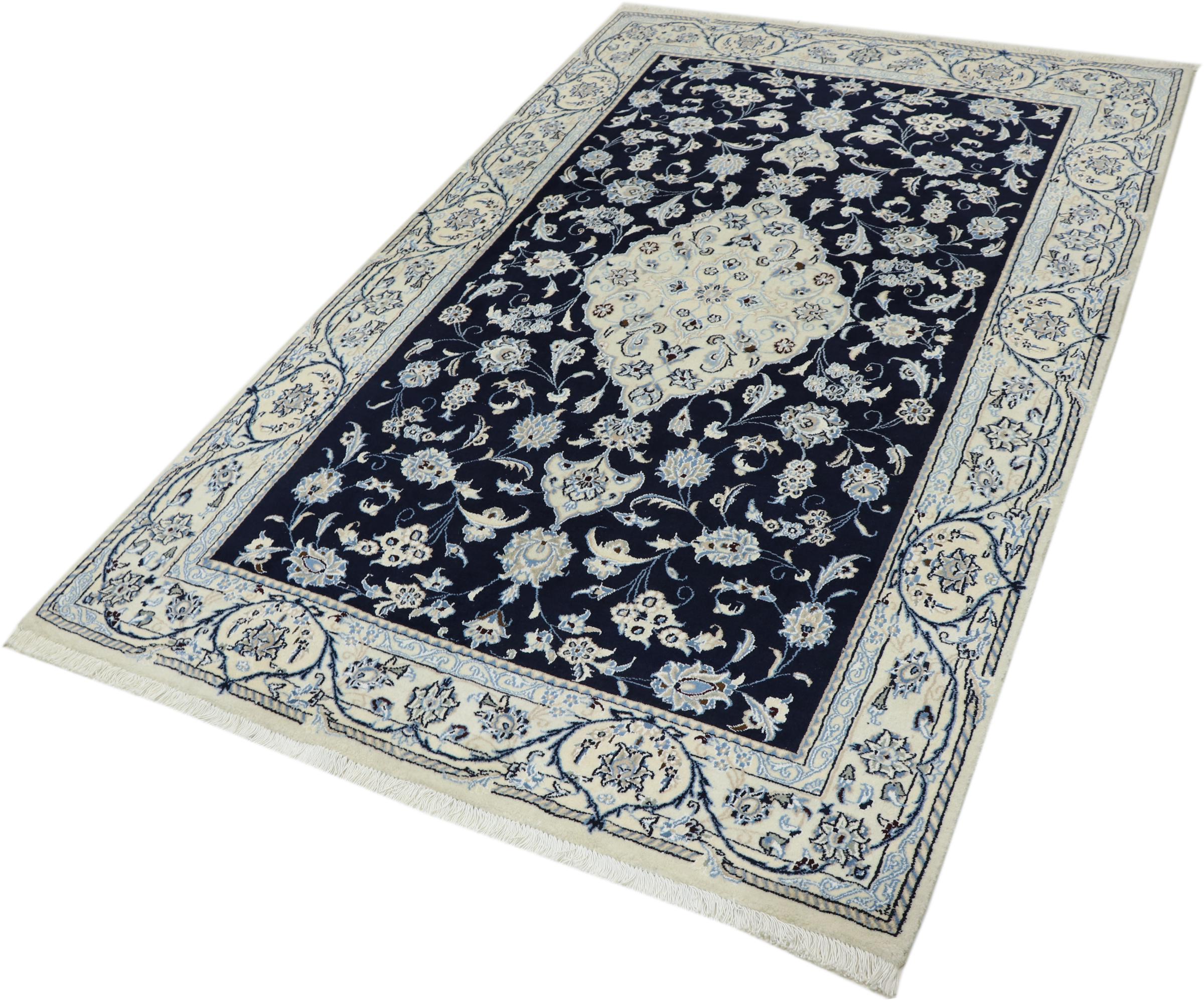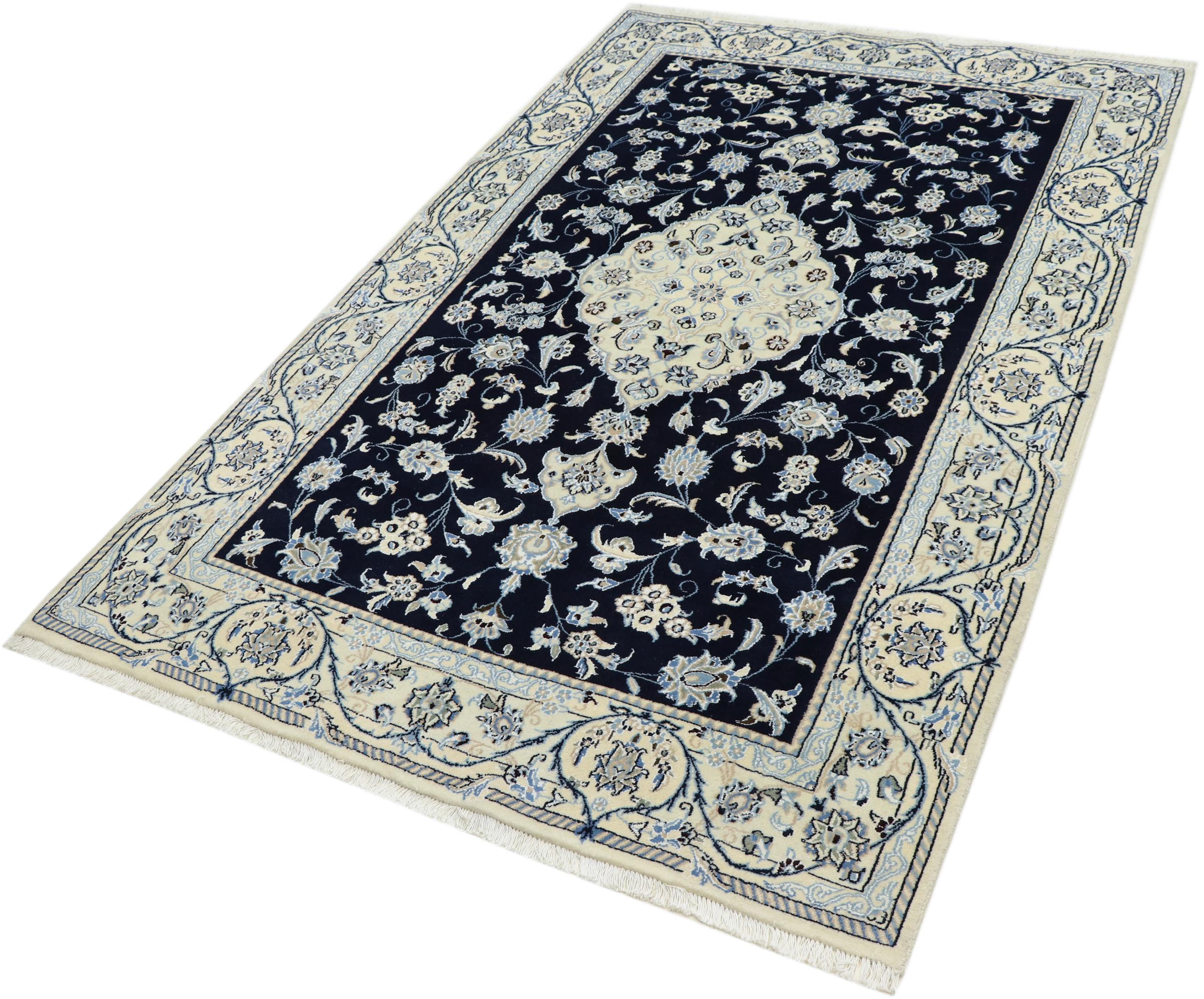Tämä Nain-matto on luokiteltu 9LA luokkaan. Hyvä laatu, kaunis itämainen muotoilu kaarevilla kuvioillaan ihastuttaa jokaista ostajaa. Tämä persialaismatto on valmistettu Nainin kaupungissa, joka on Dascht-e-Kavir -aavikon länsireunalla, arvokkaasta villasta ja luonnonsilkistä käsin solmien.