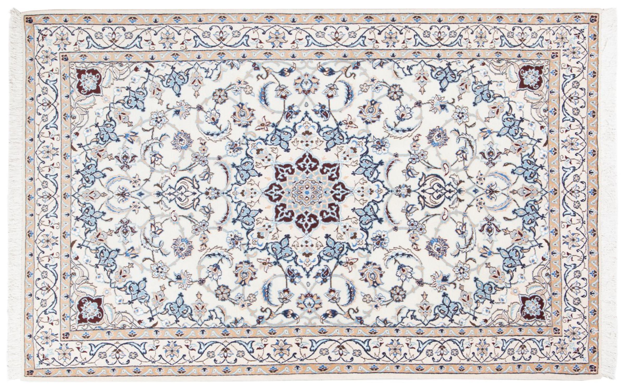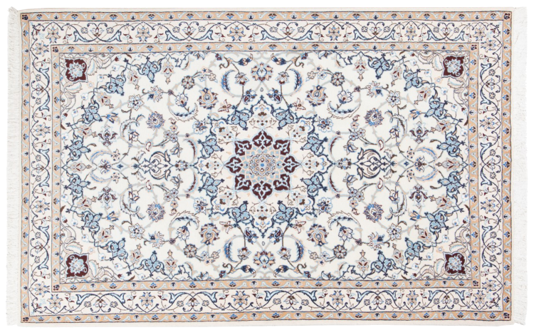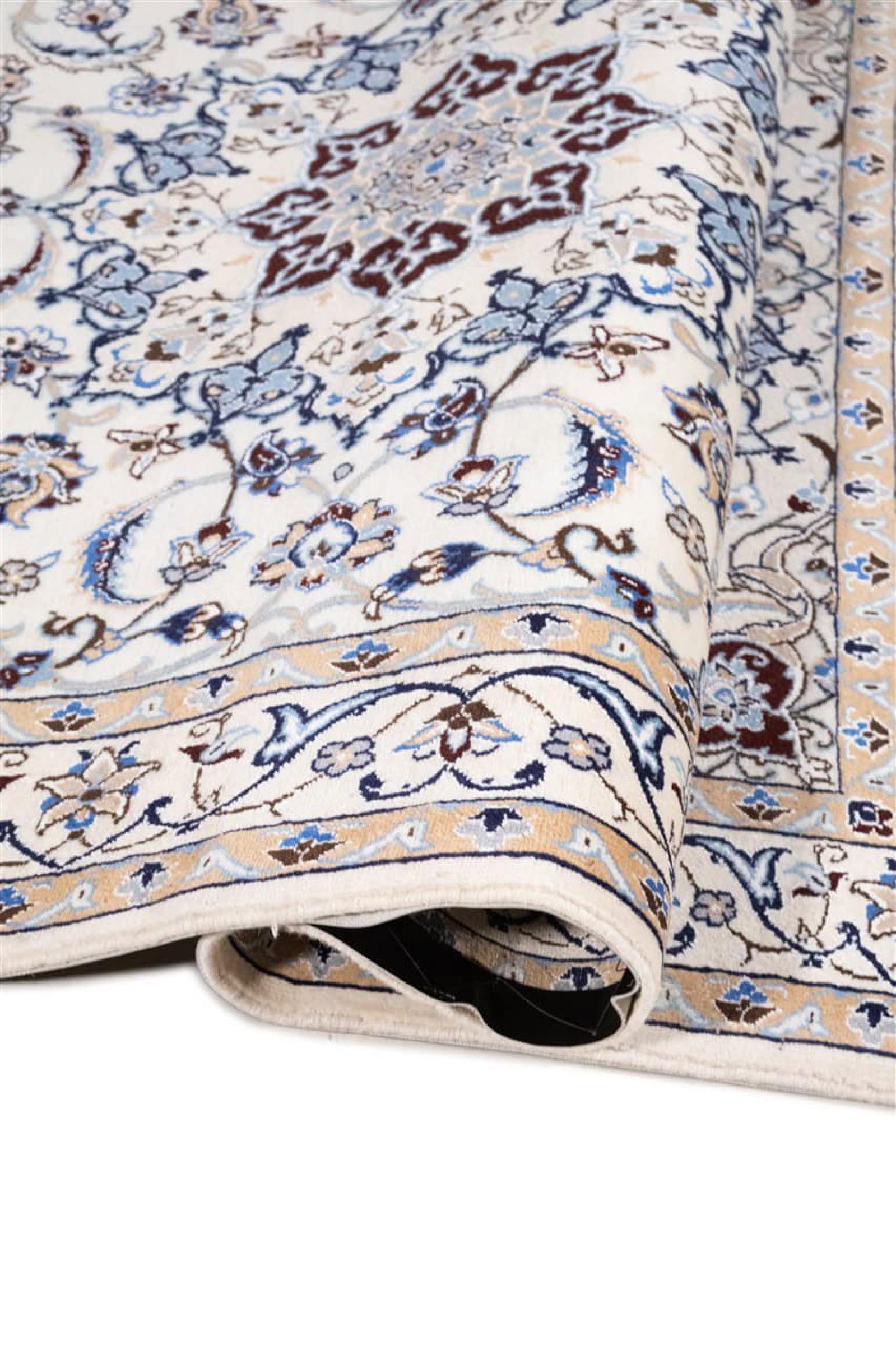 Tämä Nain-matto on luokiteltu 9LA luokkaan. Hyvä laatu, kaunis itämainen muotoilu kaarevilla kuvioillaan ihastuttaa jokaista ostajaa. Tämä persialaismatto on valmistettu Nainin kaupungissa, joka on Dascht-e-Kavir -aavikon länsireunalla, arvokkaasta villasta ja luonnonsilkistä käsin solmien.