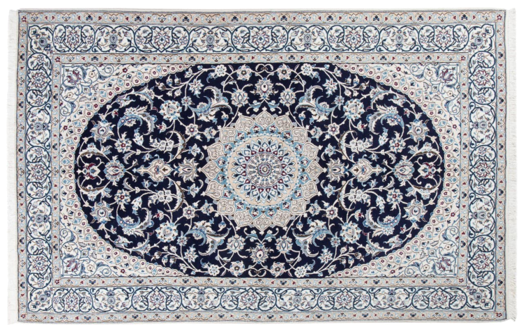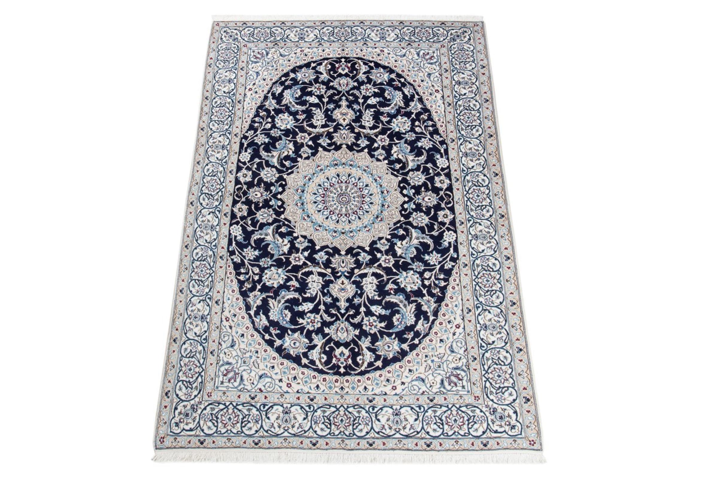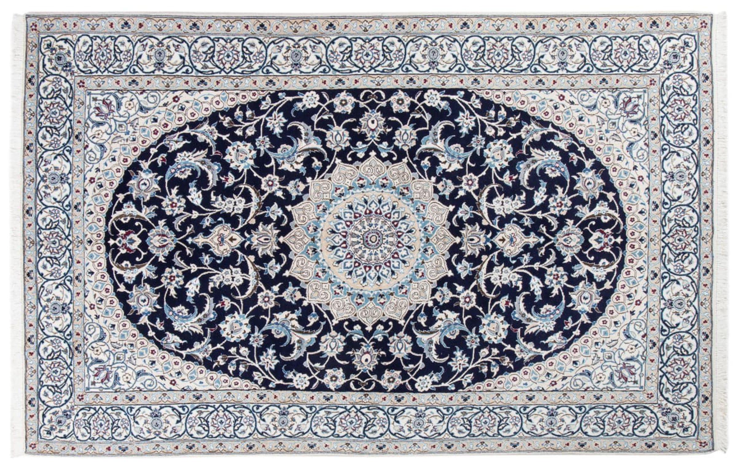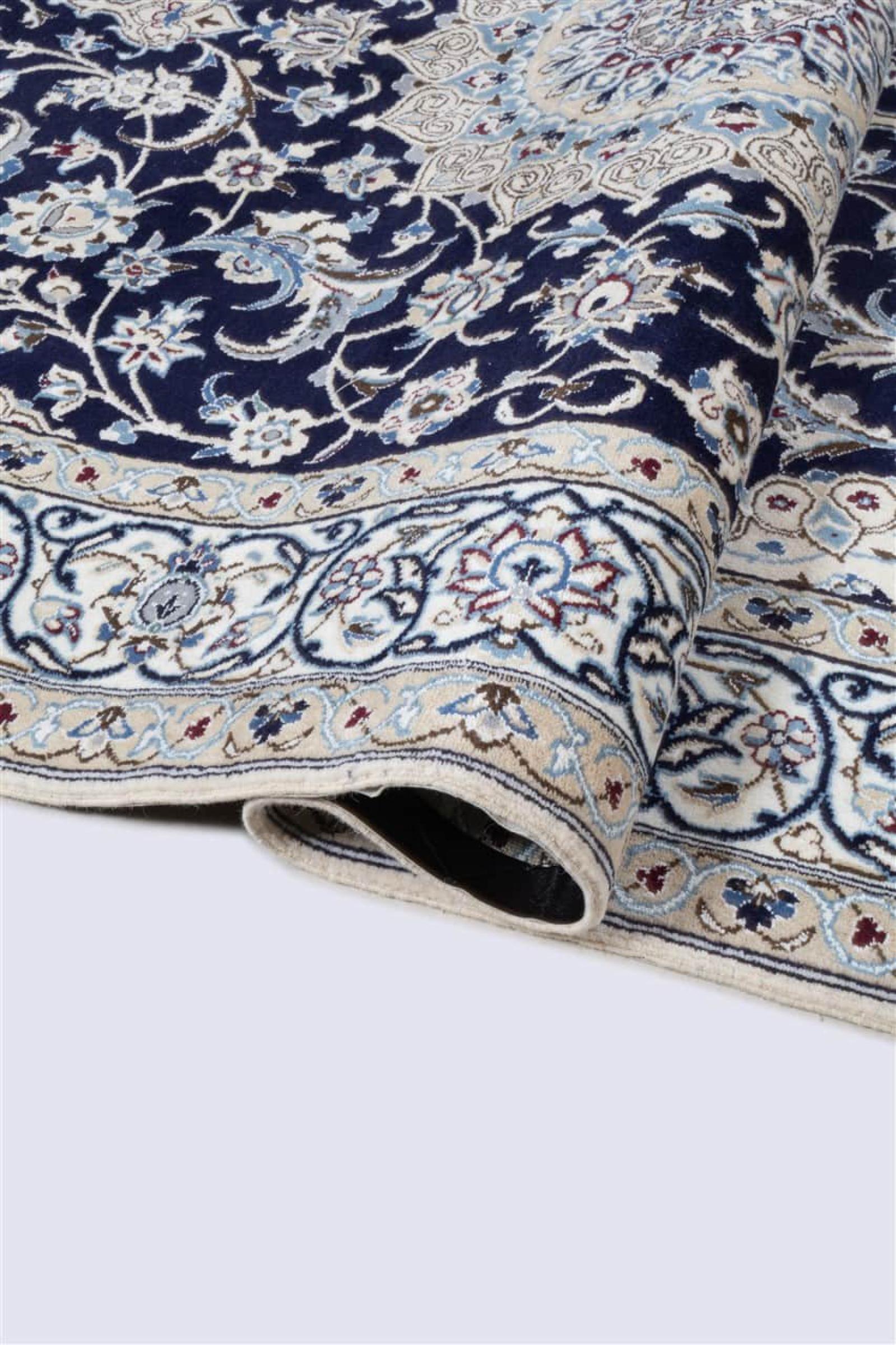 Tämä Nain-matto on luokiteltu 9LA luokkaan. Hyvä laatu, kaunis itämainen muotoilu kaarevilla kuvioillaan ihastuttaa jokaista ostajaa. Tämä persialaismatto on valmistettu Nainin kaupungissa, joka on Dascht-e-Kavir -aavikon länsireunalla, arvokkaasta villasta ja luonnonsilkistä käsin solmien.
