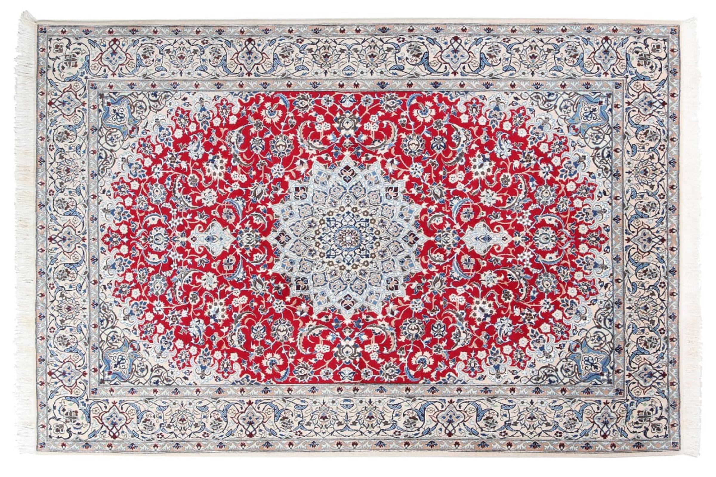 Tämä Nain-matto on luokiteltu 9LA luokkaan. Hyvä laatu, kaunis itämainen muotoilu kaarevilla kuvioillaan ihastuttaa jokaista ostajaa. Tämä persialaismatto on valmistettu Nainin kaupungissa, joka on Dascht-e-Kavir -aavikon länsireunalla, arvokkaasta villasta ja luonnonsilkistä käsin solmien.