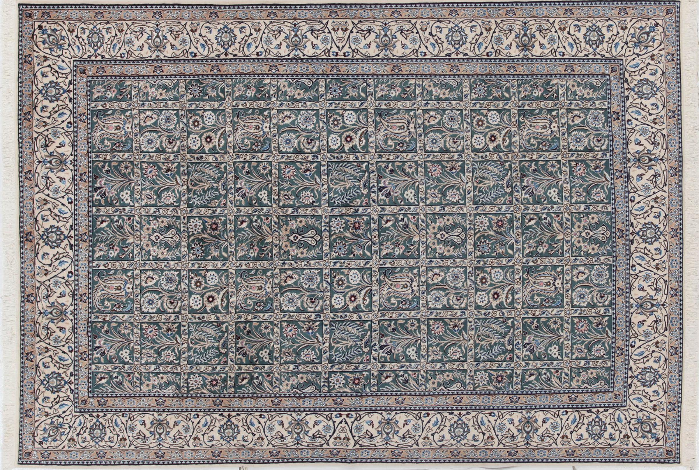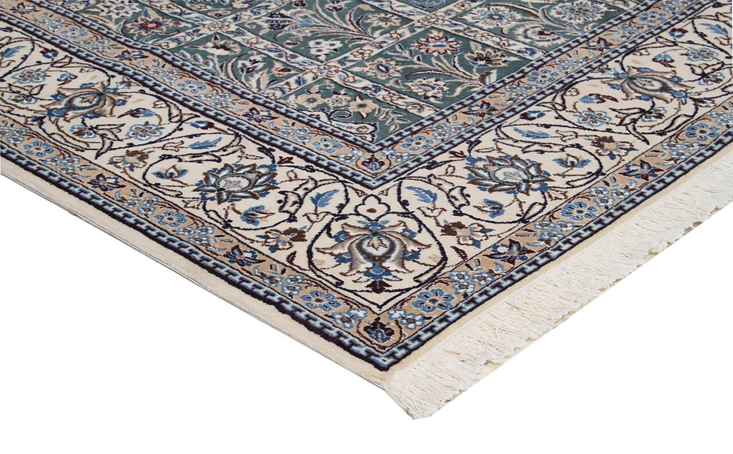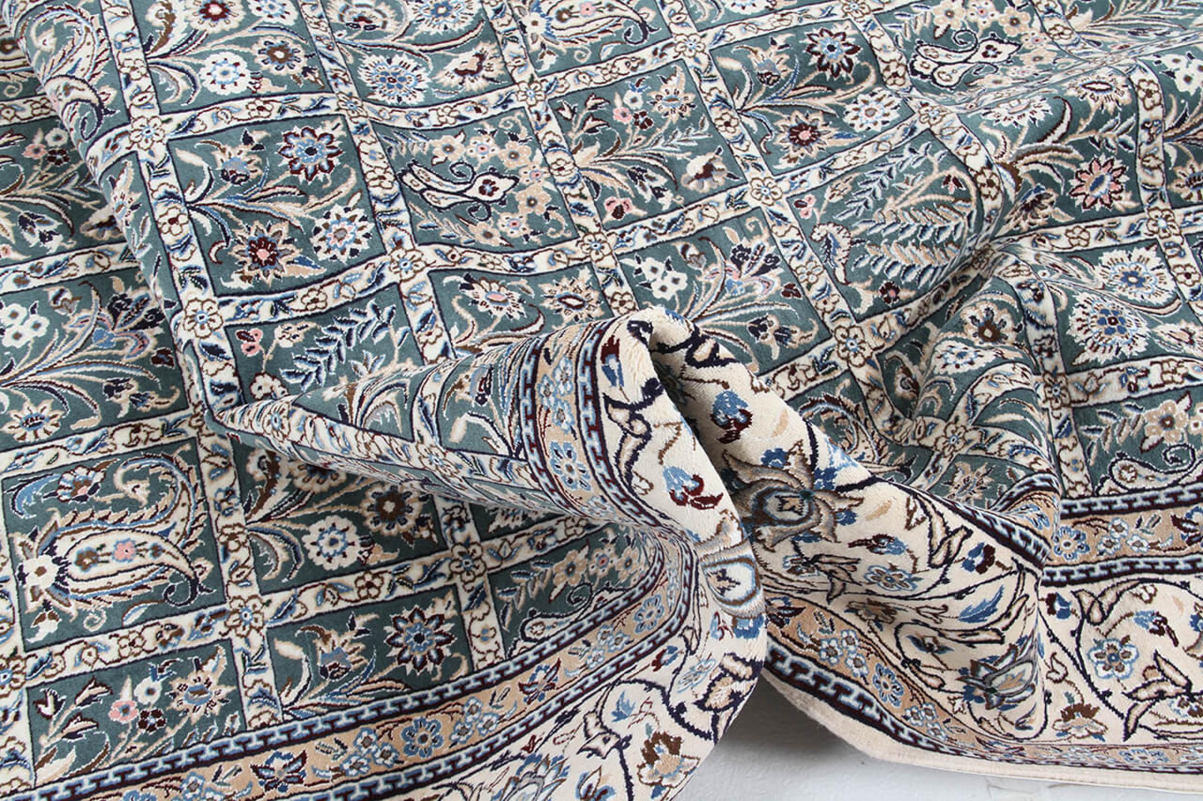 Tämä Nain-matto on luokiteltu 9LA luokkaan. Hyvä laatu, kaunis itämainen muotoilu kaarevilla kuvioillaan ihastuttaa jokaista ostajaa. Tämä persialaismatto on valmistettu Nainin kaupungissa, joka on Dascht-e-Kavir -aavikon länsireunalla, arvokkaasta villasta ja luonnonsilkistä käsin solmien.