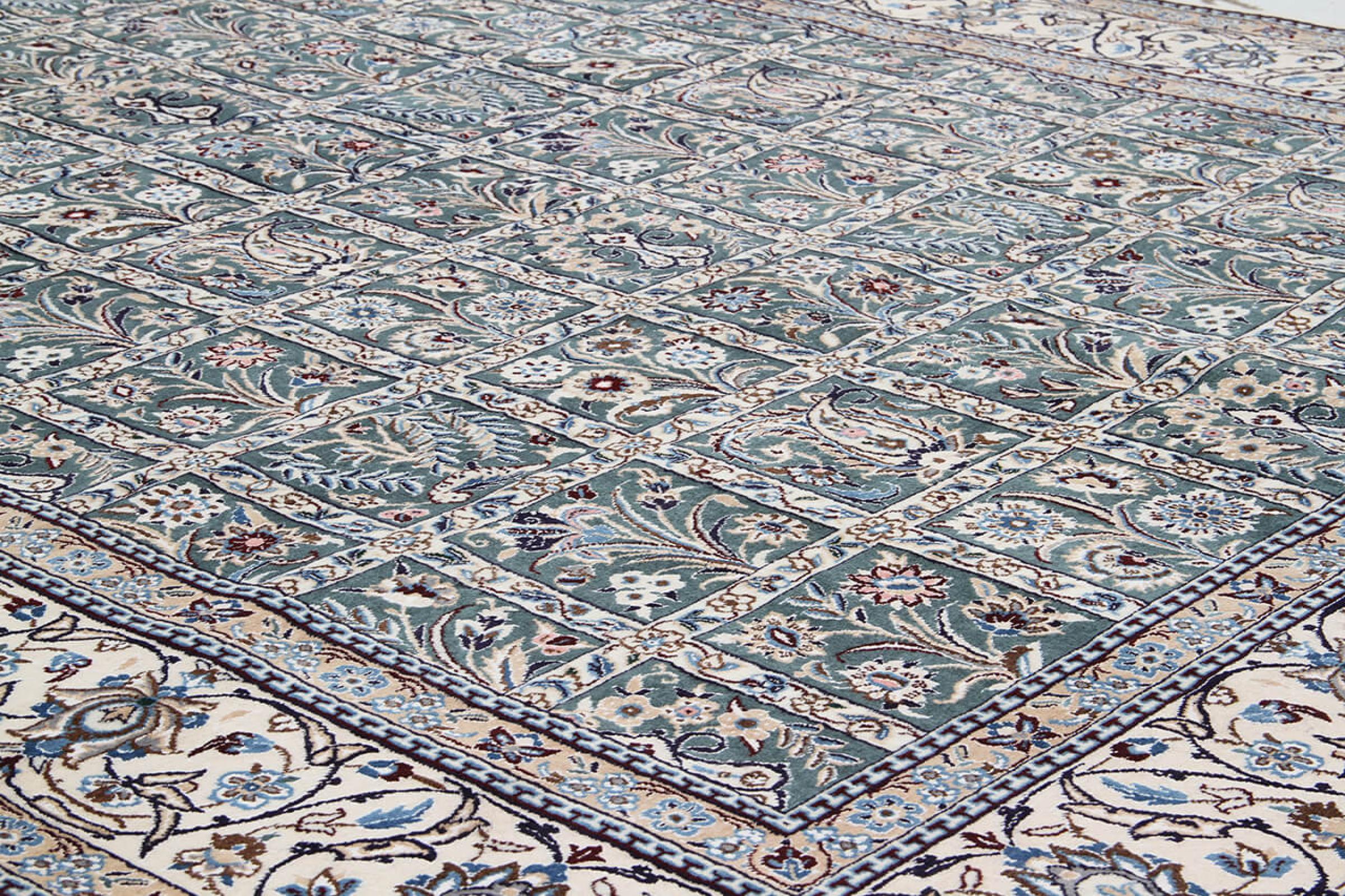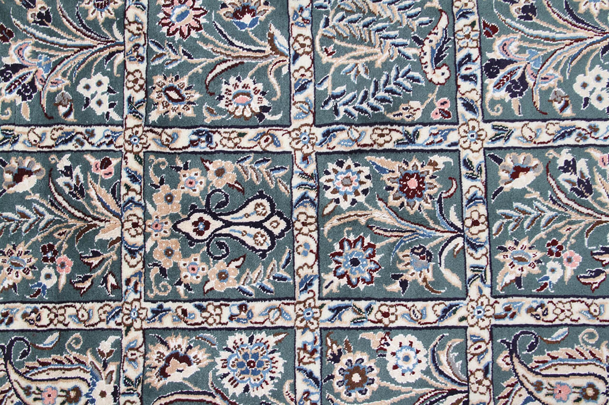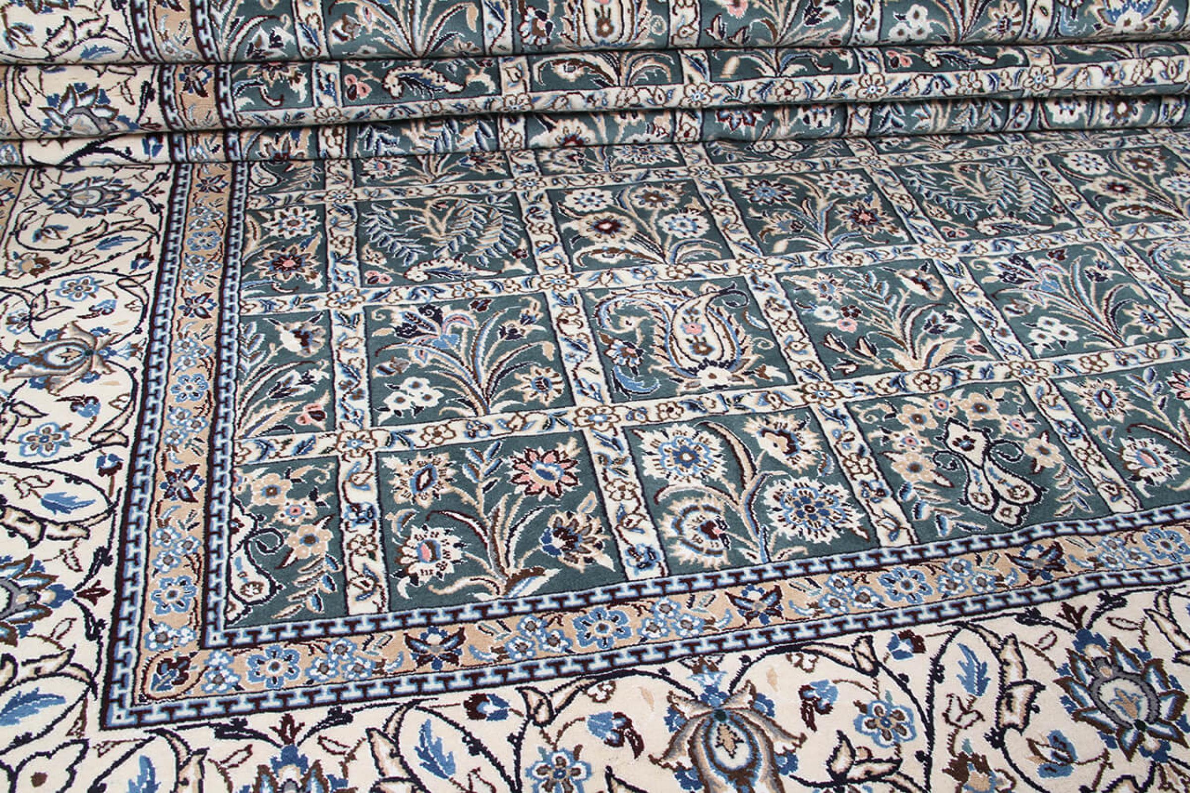 Tämä Nain-matto on luokiteltu 9LA luokkaan. Hyvä laatu, kaunis itämainen muotoilu kaarevilla kuvioillaan ihastuttaa jokaista ostajaa. Tämä persialaismatto on valmistettu Nainin kaupungissa, joka on Dascht-e-Kavir -aavikon länsireunalla, arvokkaasta villasta ja luonnonsilkistä käsin solmien.