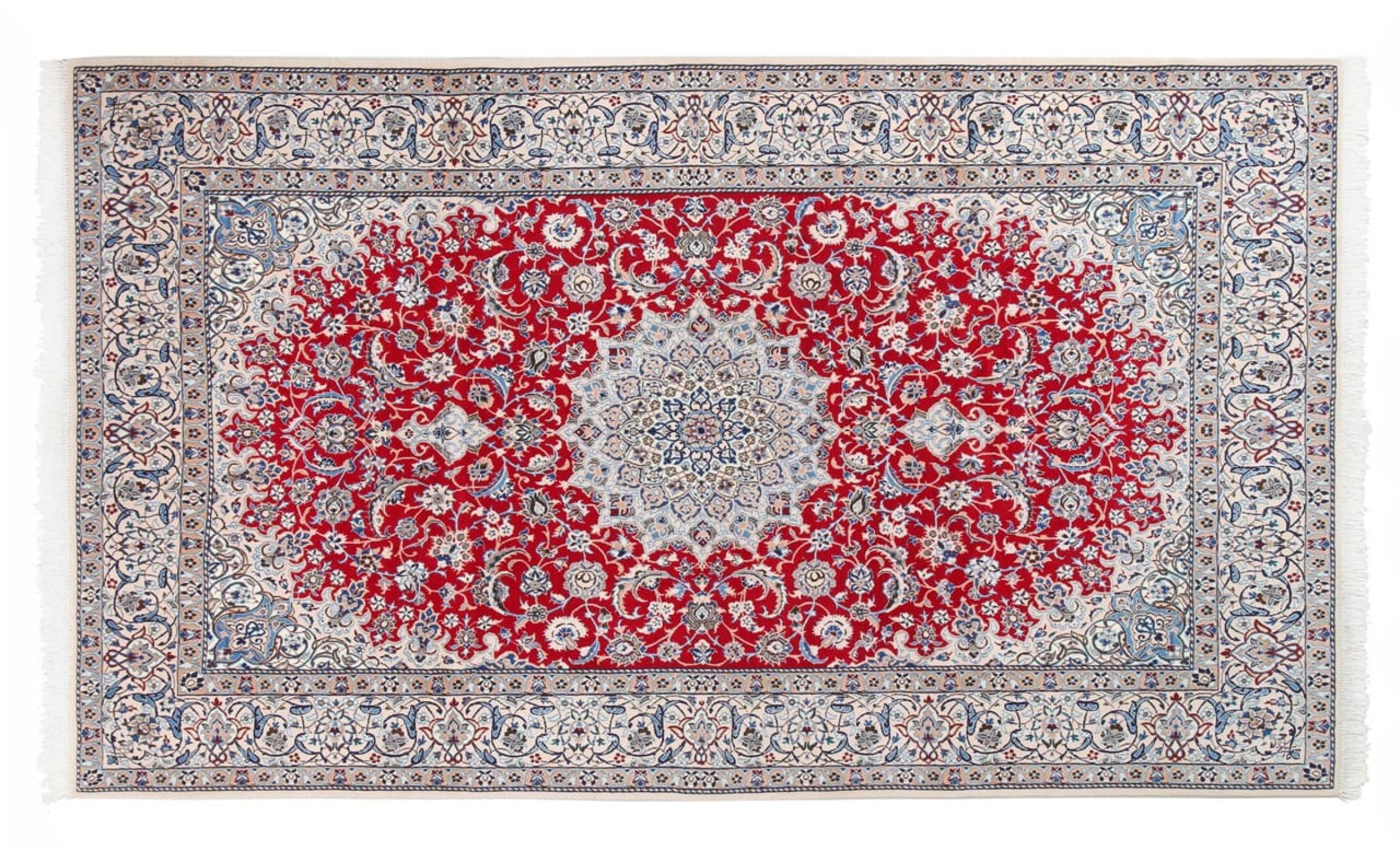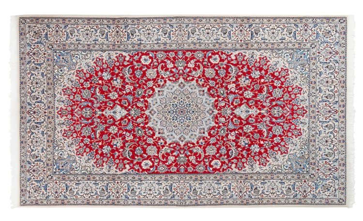 Tämä Nain-matto on luokiteltu 9LA luokkaan. Hyvä laatu, kaunis itämainen muotoilu kaarevilla kuvioillaan ihastuttaa jokaista ostajaa. Tämä persialaismatto on valmistettu Nainin kaupungissa, joka on Dascht-e-Kavir -aavikon länsireunalla, arvokkaasta villasta ja luonnonsilkistä käsin solmien.