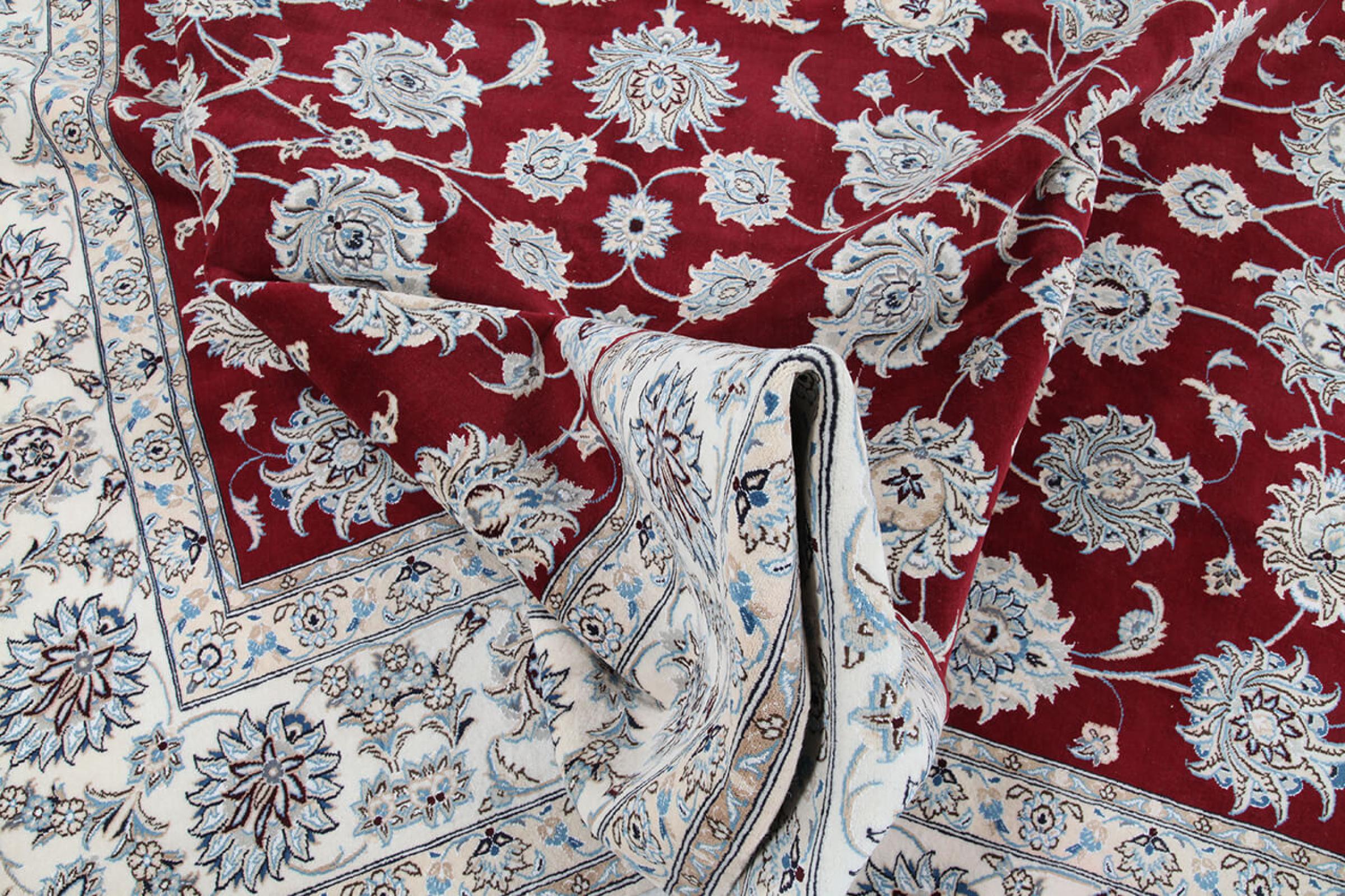 Tämä Nain-matto on luokiteltu 9LA luokkaan. Hyvä laatu, kaunis itämainen muotoilu kaarevilla kuvioillaan ihastuttaa jokaista ostajaa. Tämä persialaismatto on valmistettu Nainin kaupungissa, joka on Dascht-e-Kavir -aavikon länsireunalla, arvokkaasta villasta ja luonnonsilkistä käsin solmien.