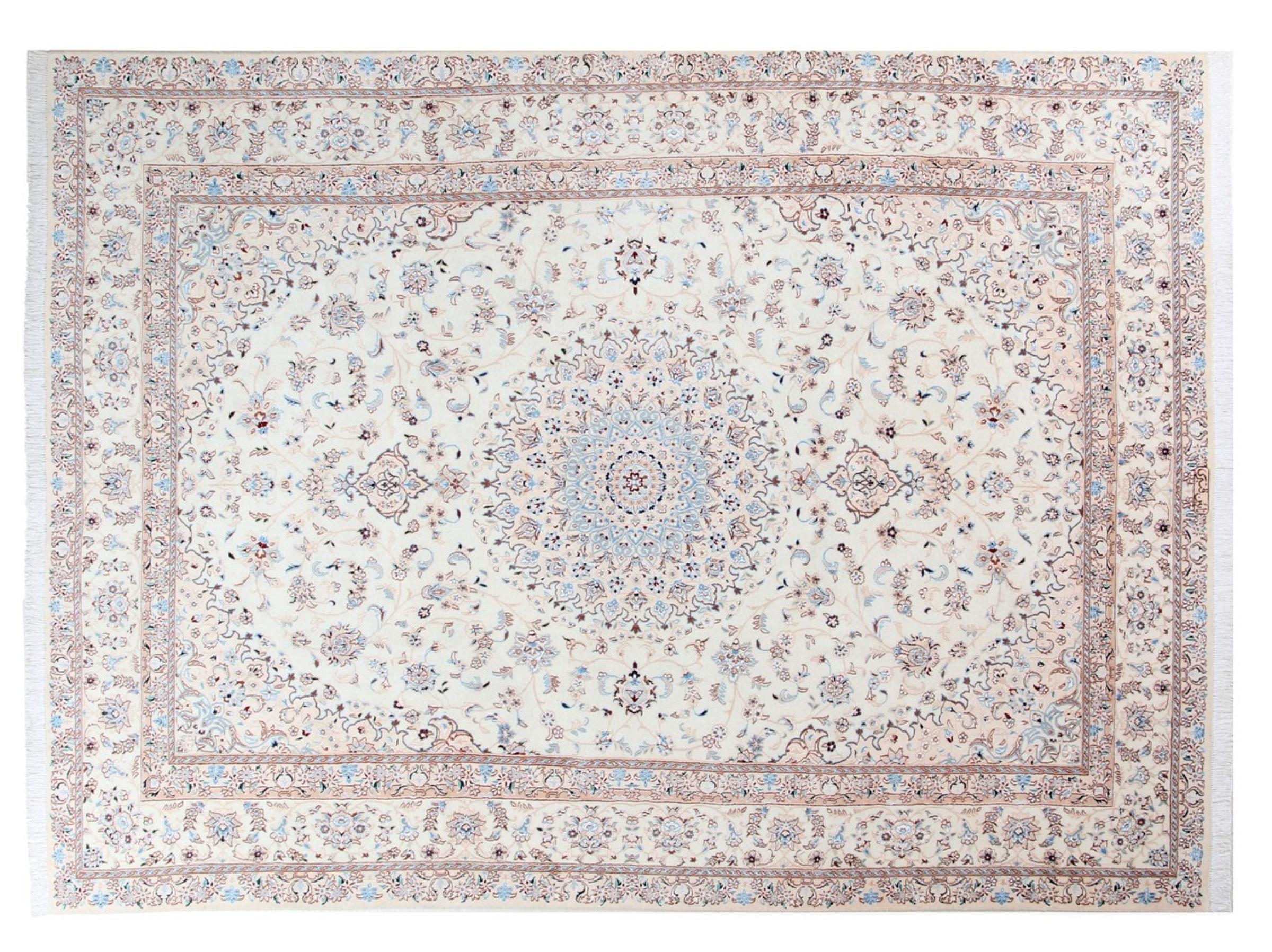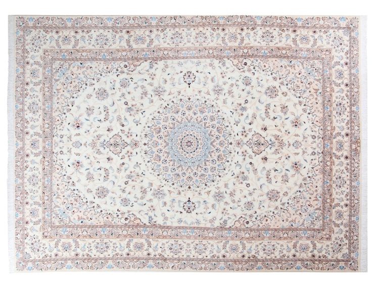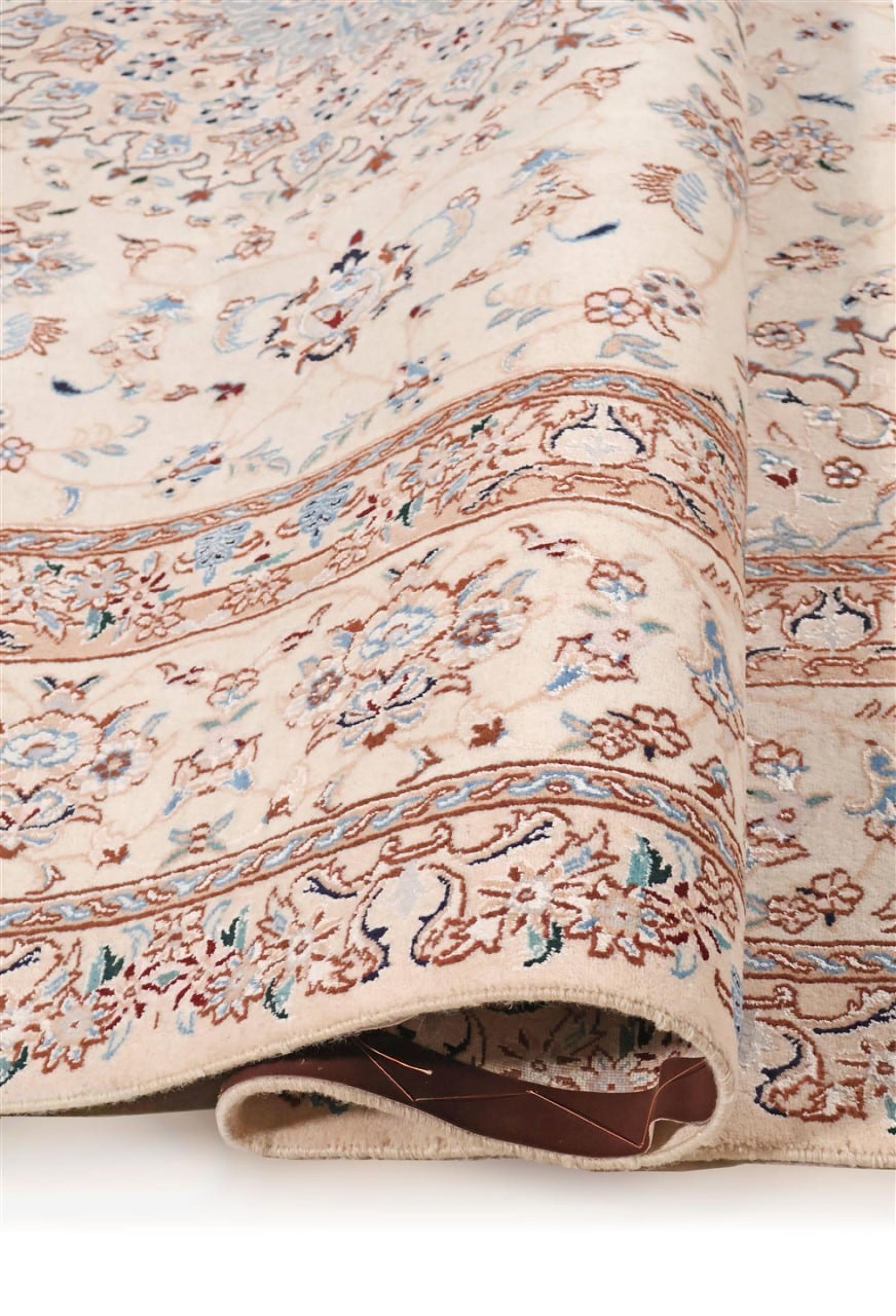 Tämä Nain-matto on luokiteltu 9LA luokkaan. Hyvä laatu, kaunis itämainen muotoilu kaarevilla kuvioillaan ihastuttaa jokaista ostajaa. Tämä persialaismatto on valmistettu Nainin kaupungissa, joka on Dascht-e-Kavir -aavikon länsireunalla, arvokkaasta villasta ja luonnonsilkistä käsin solmien.