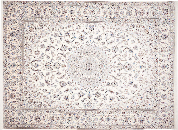 Tämä Nain-matto on luokiteltu 9LA luokkaan. Hyvä laatu, kaunis itämainen muotoilu kaarevilla kuvioillaan ihastuttaa jokaista ostajaa. Tämä persialaismatto on valmistettu Nainin kaupungissa, joka on Dascht-e-Kavir -aavikon länsireunalla, arvokkaasta villasta ja luonnonsilkistä käsin solmien.