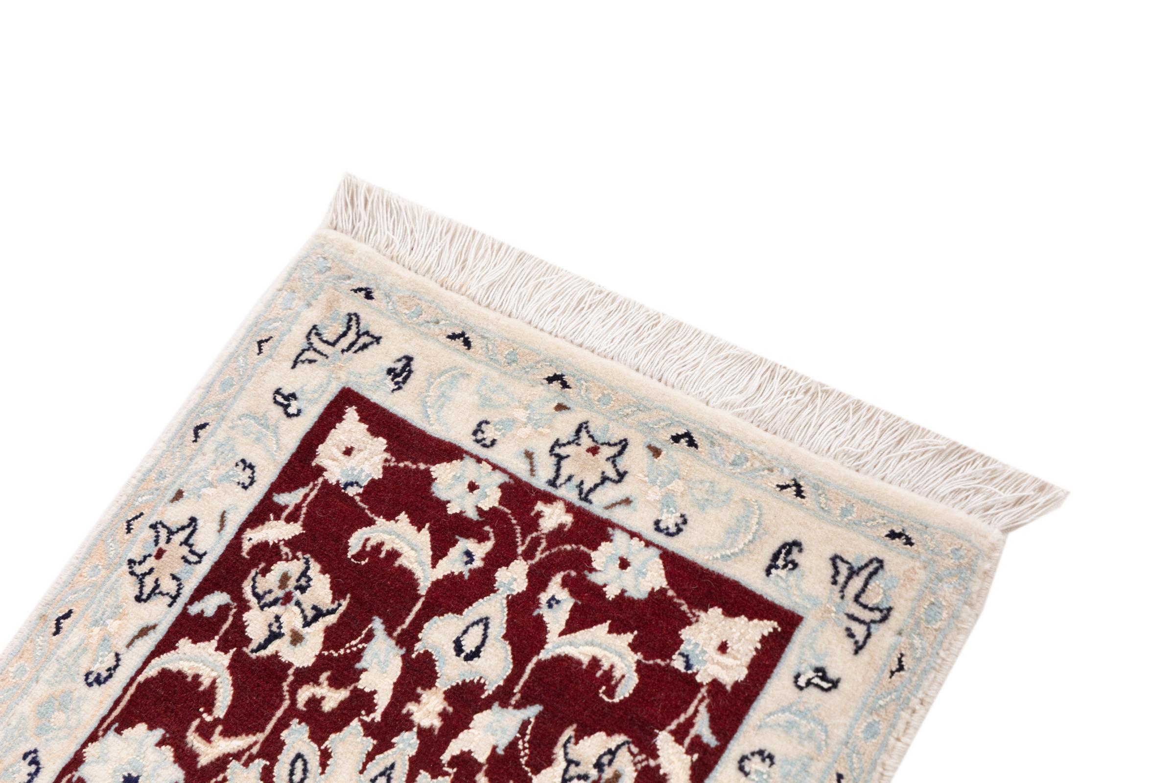 Tämä Nain-matto on luokiteltu 9LA luokkaan. Hyvä laatu, kaunis itämainen muotoilu kaarevilla kuvioillaan ihastuttaa jokaista ostajaa. Tämä persialaismatto on valmistettu Nainin kaupungissa, joka on Dascht-e-Kavir -aavikon länsireunalla, arvokkaasta villasta ja luonnonsilkistä käsin solmien.