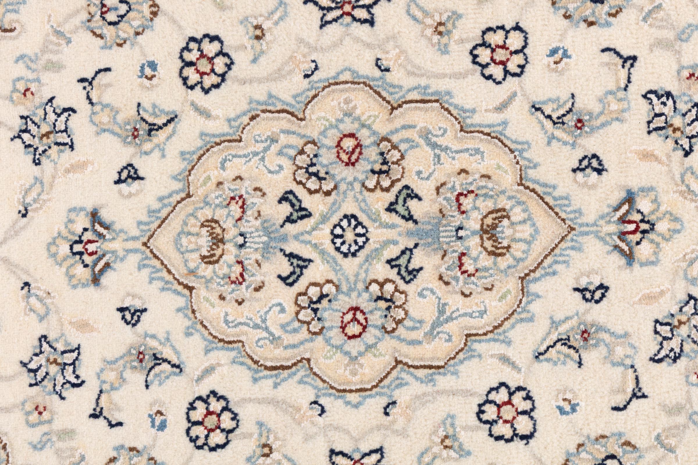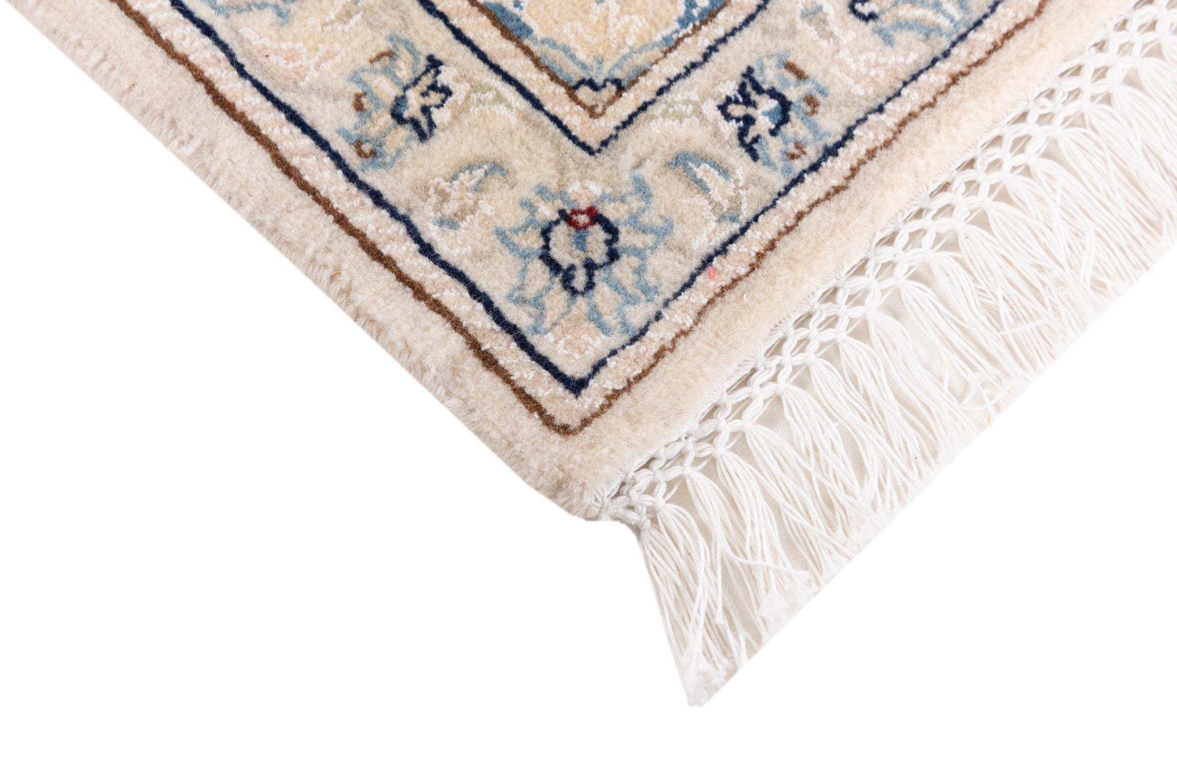 Tämä Nain-matto on luokiteltu 9LA luokkaan. Hyvä laatu, kaunis itämainen muotoilu kaarevilla kuvioillaan ihastuttaa jokaista ostajaa. Tämä persialaismatto on valmistettu Nainin kaupungissa, joka on Dascht-e-Kavir -aavikon länsireunalla, arvokkaasta villasta ja luonnonsilkistä käsin solmien.