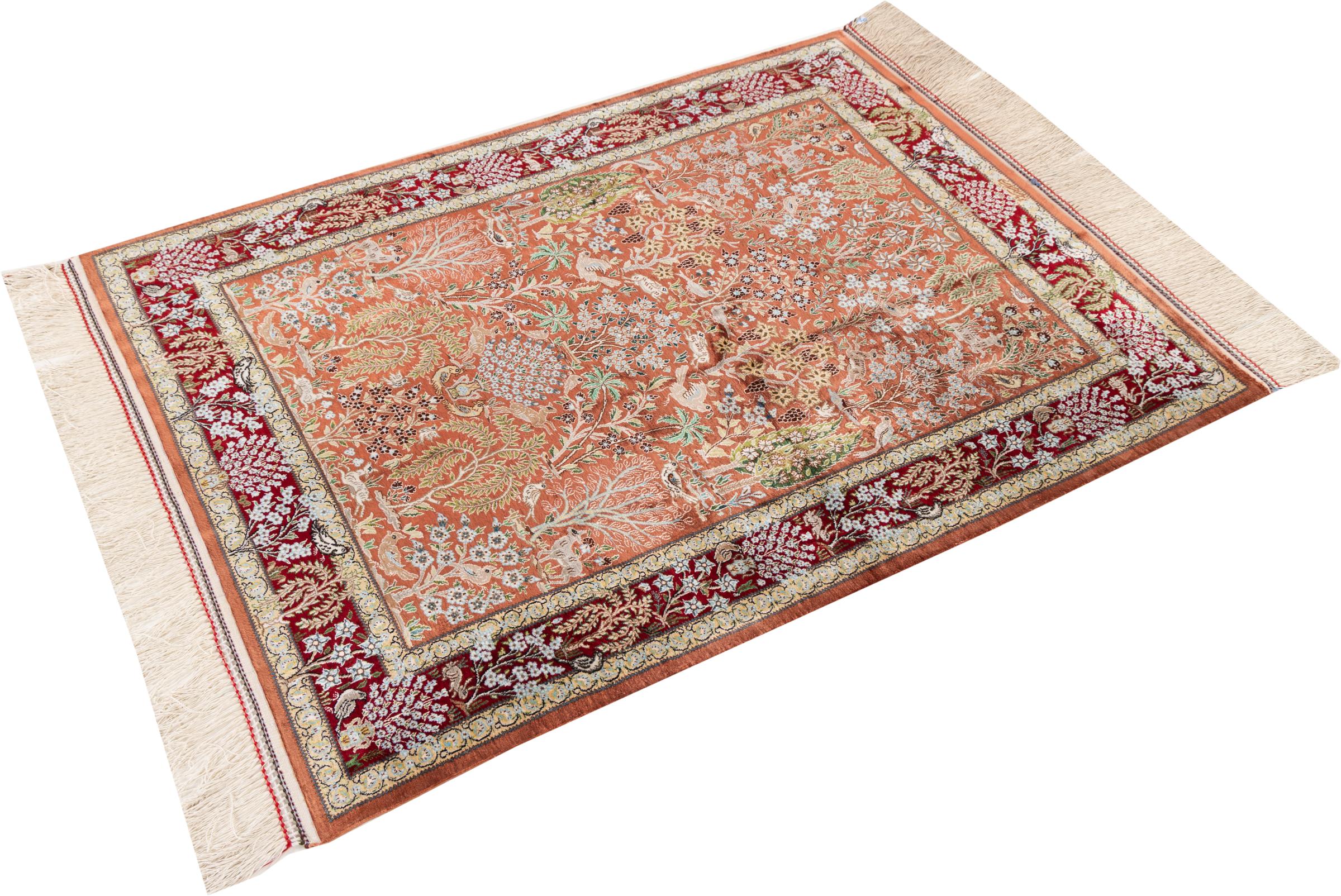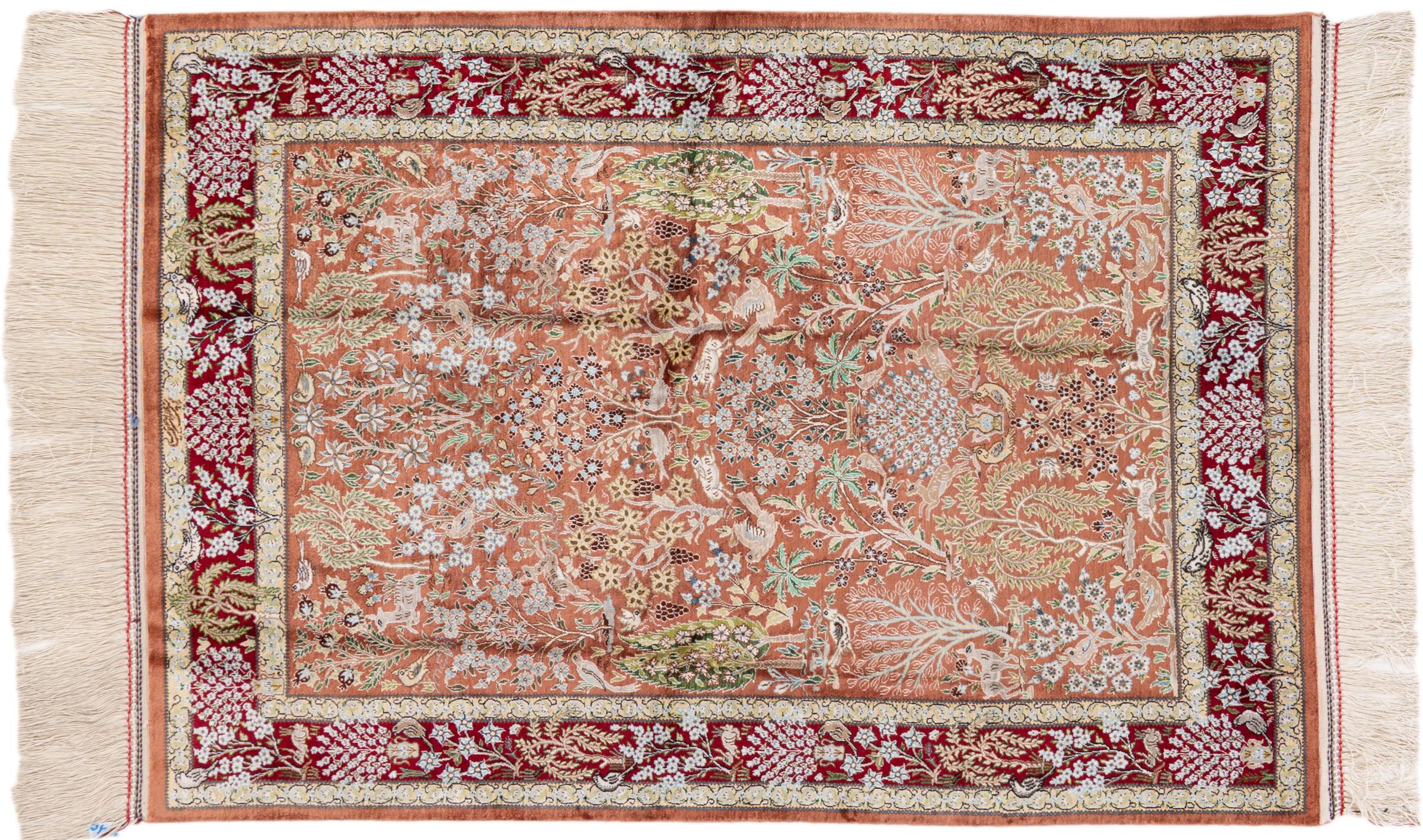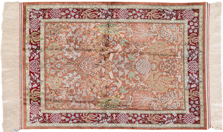 Maton nro.: 3069290021708 Koko: 145x100 cm Paksuus: n. 5 mm Solmua: 800 000 - 1 000 000 / m² Työstäminen: Solmittu käsin Nukka: Silkki Loimi: Silkki Alkuperä: Persia / Iran Ikä: uusi Paino: n. 4 kg Készleten: Uniikki - Csak 1 van készleten
