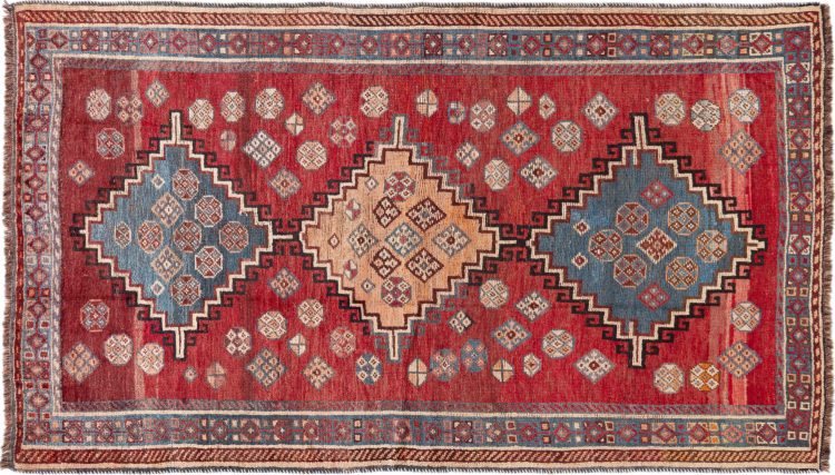 Maton nro.: 295645004669 Koko: 230x130 cm Paksuus: n. 15 mm Solmua: 72 000 - 90 000 / m² Työstäminen: Solmittu käsin Nukka: Käsinkehrätty villa Loimi: Villa Alkuperä: Persia / Iran Ikä: vanha/lähes antiikkinen, yli 50 vuotta vanha Paino: n. 12 kg Tunnetaan myös nimellä Gabbe, Ghabbeh Készleten: Uniikki - Csak 1 van készleten