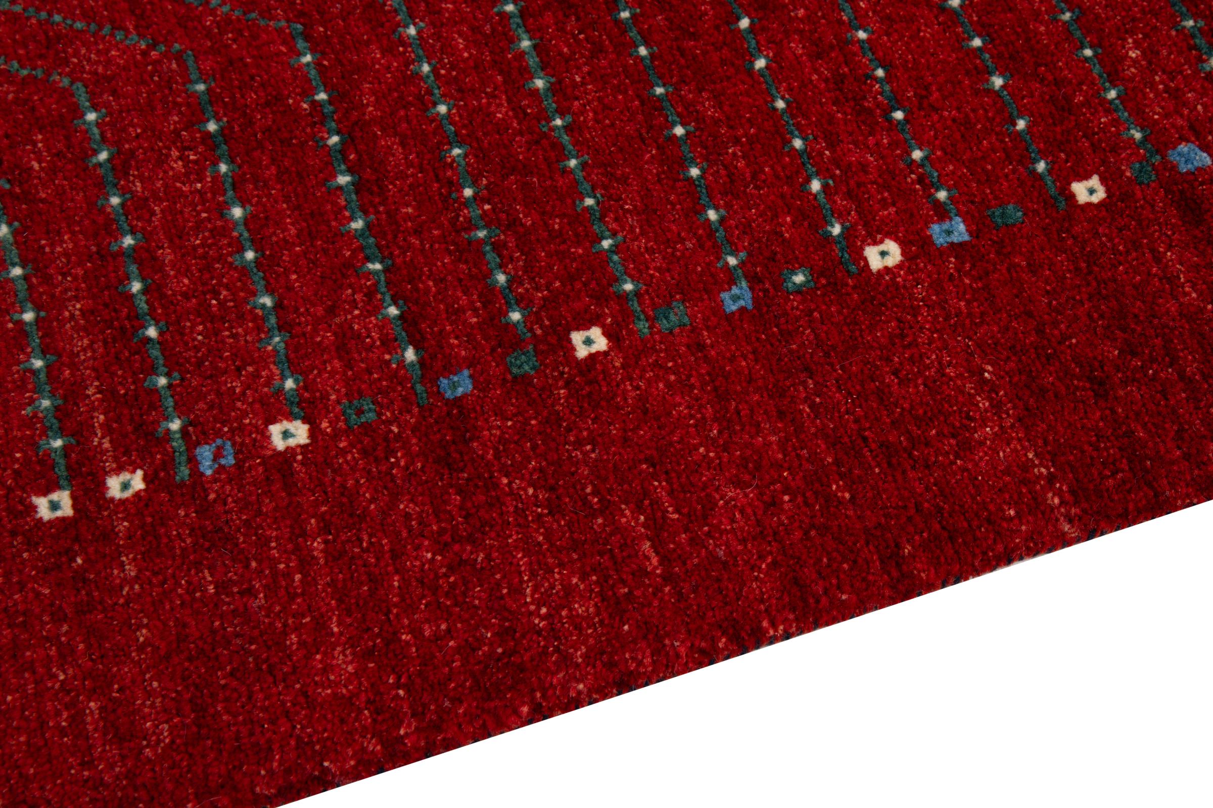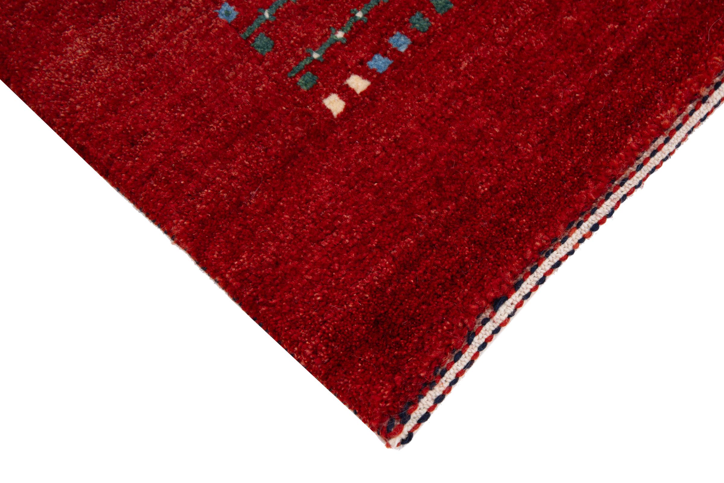 Tämä kaunis matto on Persian Gabbeh ja on yksi korkealaatuisimmista Gabbeh-matoista. Iranissa nomadit tai puoli-nomadit solmittavat mattoja perinteisillä käsityöillä. Yksinkertaiset motiivit ja kuviot ovat pääosin inspiroineet paimentolaisten välittömästä ympäristöstä. Esimerkiksi kameleita, puita tai pensaita löytyy perinteisistä matoista. Persialaiset Gabbeh-matot on valmistettu paikallisten lammaslaumojen villasta. Siksi villaa kehrätään useimmiten käsin. Jokainen näistä itämaisista matoista edustaa vuosisatojen vanhan kulttuurin ainutlaatuista luonnetta.