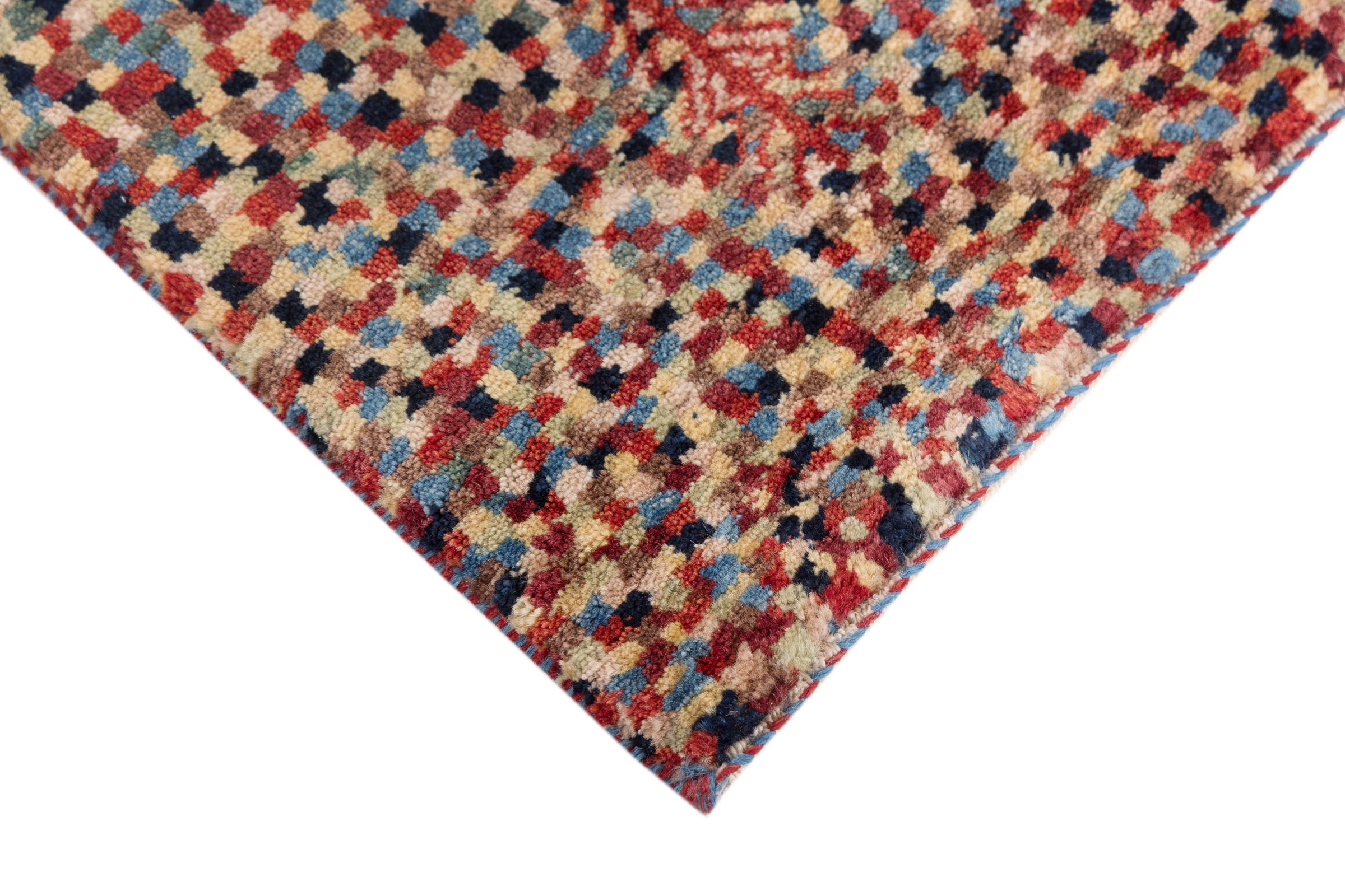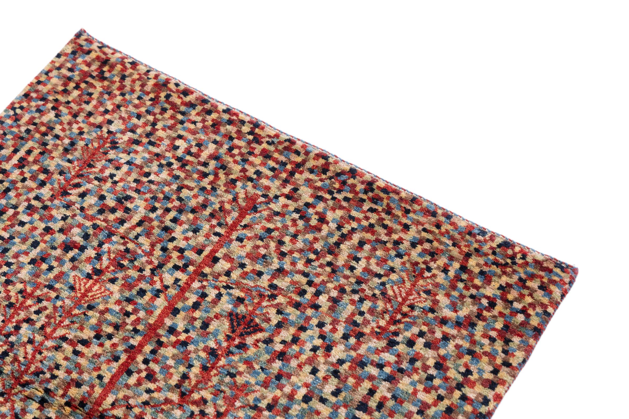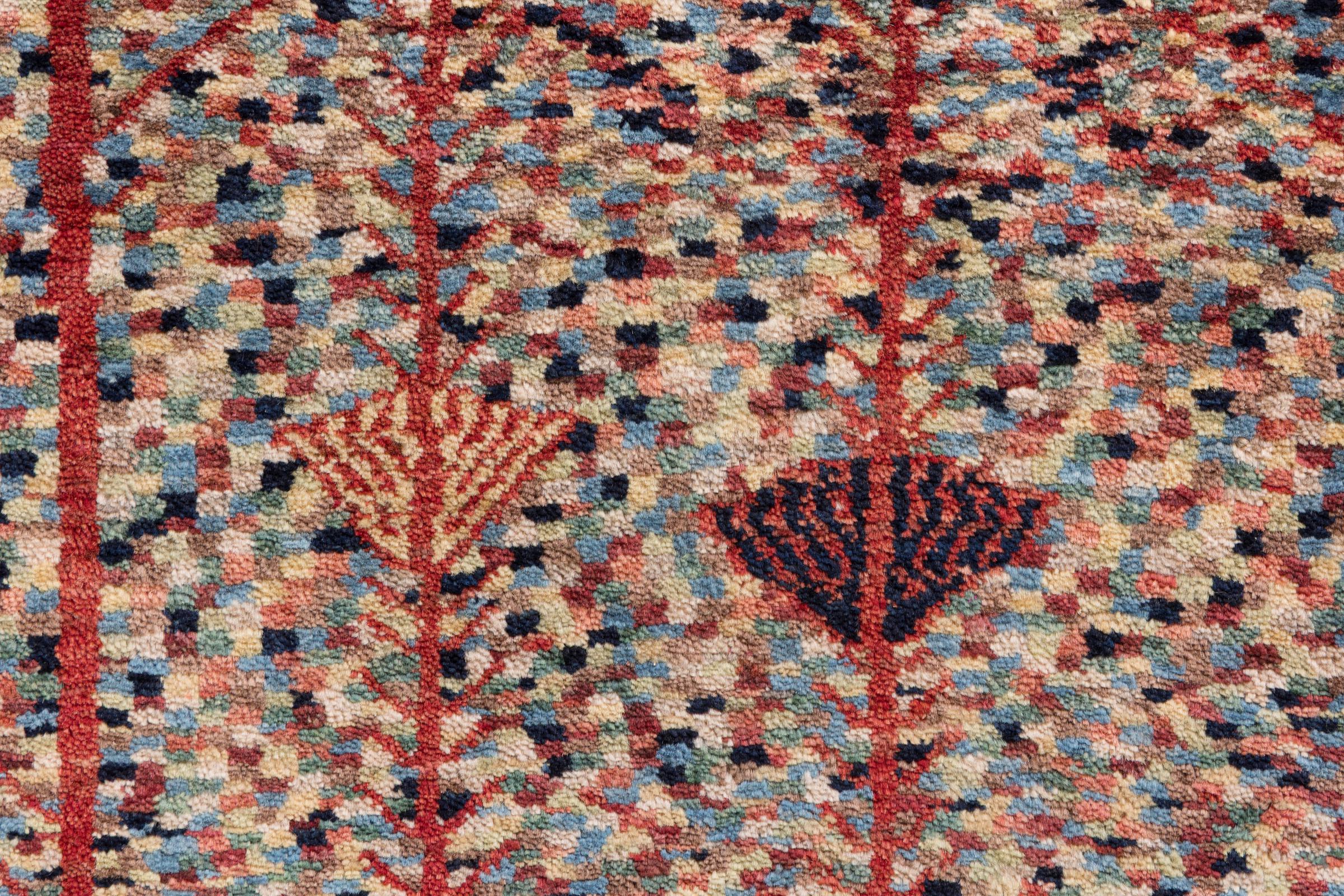 Tämä kaunis matto on Persian Gabbeh ja on yksi korkealaatuisimmista Gabbeh-matoista. Iranissa nomadit tai puoli-nomadit solmittavat mattoja perinteisillä käsityöillä. Yksinkertaiset motiivit ja kuviot ovat pääosin inspiroineet paimentolaisten välittömästä ympäristöstä. Esimerkiksi kameleita, puita tai pensaita löytyy perinteisistä matoista. Persialaiset Gabbeh-matot on valmistettu paikallisten lammaslaumojen villasta. Siksi villaa kehrätään useimmiten käsin. Jokainen näistä itämaisista matoista edustaa vuosisatojen vanhan kulttuurin ainutlaatuista luonnetta.