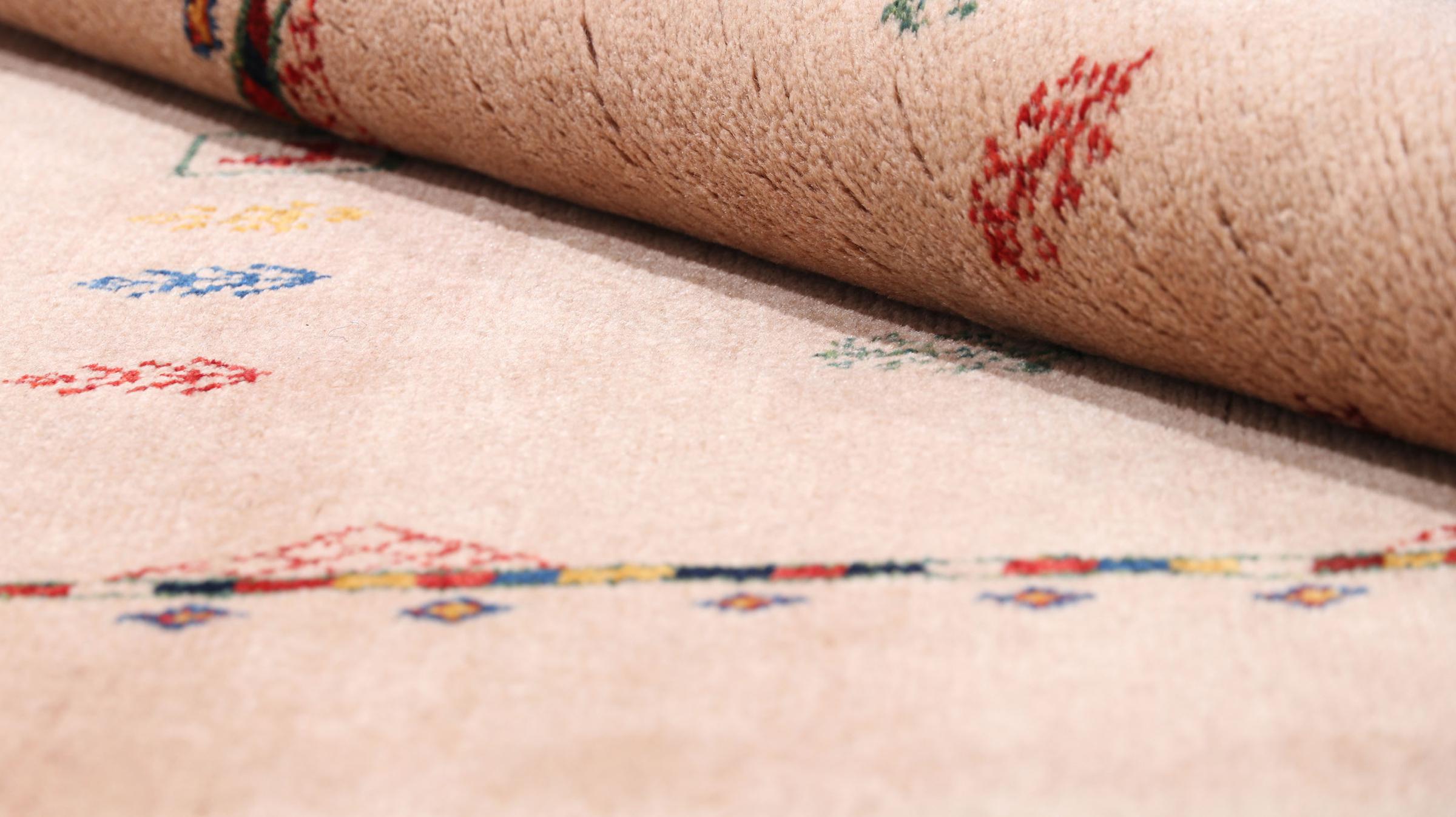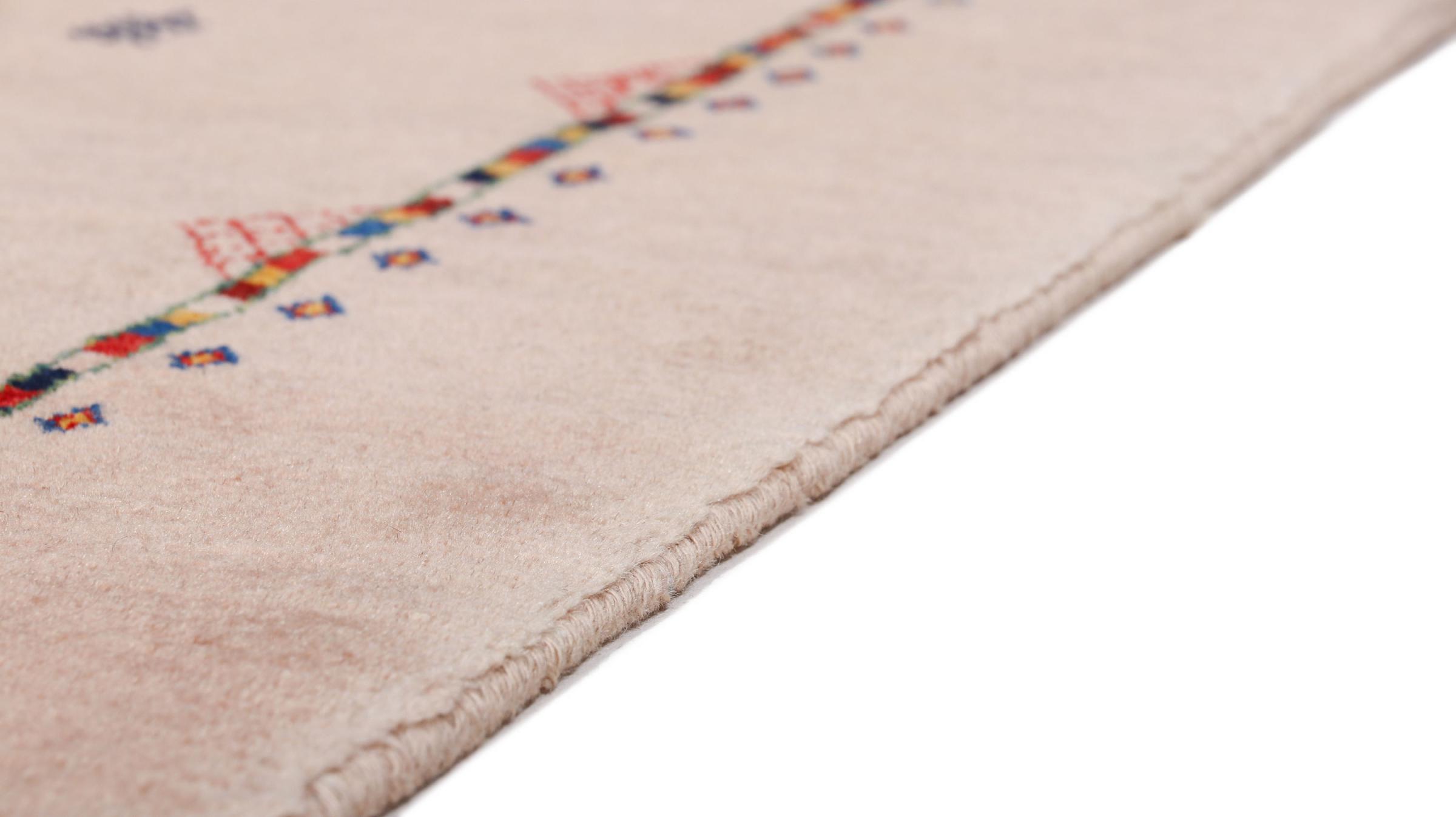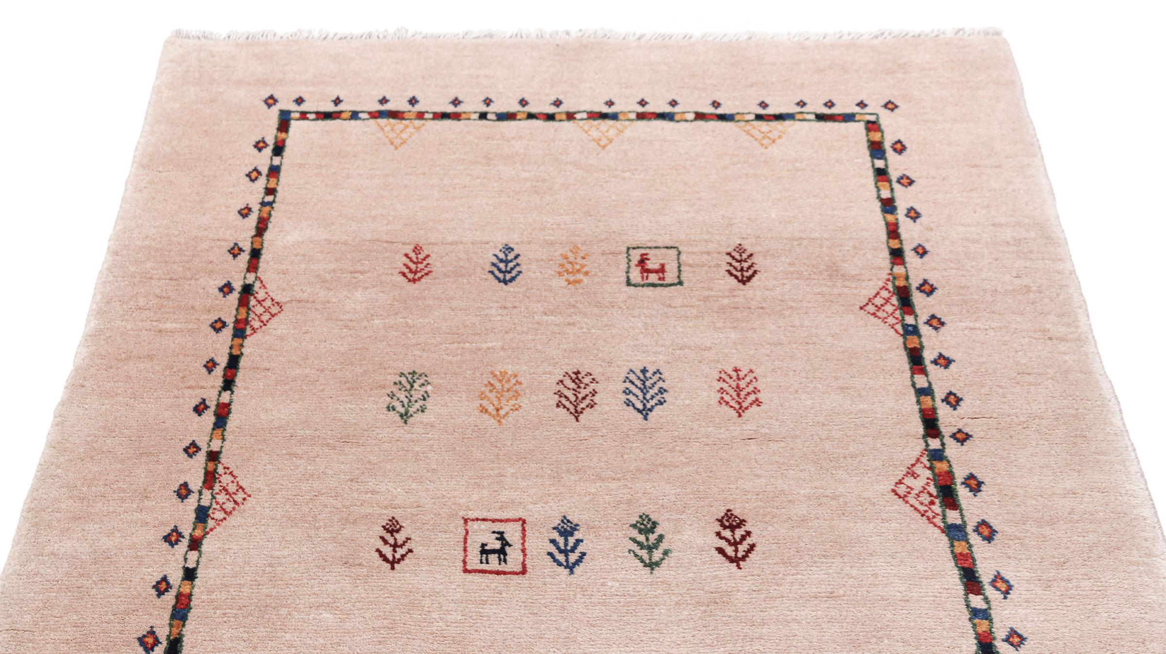 Tämä kaunis matto on Persian Gabbeh ja on yksi korkealaatuisimmista Gabbeh-matoista. Iranissa nomadit tai puoli-nomadit solmittavat mattoja perinteisillä käsityöillä. Yksinkertaiset motiivit ja kuviot ovat pääosin inspiroineet paimentolaisten välittömästä ympäristöstä. Esimerkiksi kameleita, puita tai pensaita löytyy perinteisistä matoista. Persialaiset Gabbeh-matot on valmistettu paikallisten lammaslaumojen villasta. Siksi villaa kehrätään useimmiten käsin. Jokainen näistä itämaisista matoista edustaa vuosisatojen vanhan kulttuurin ainutlaatuista luonnetta.