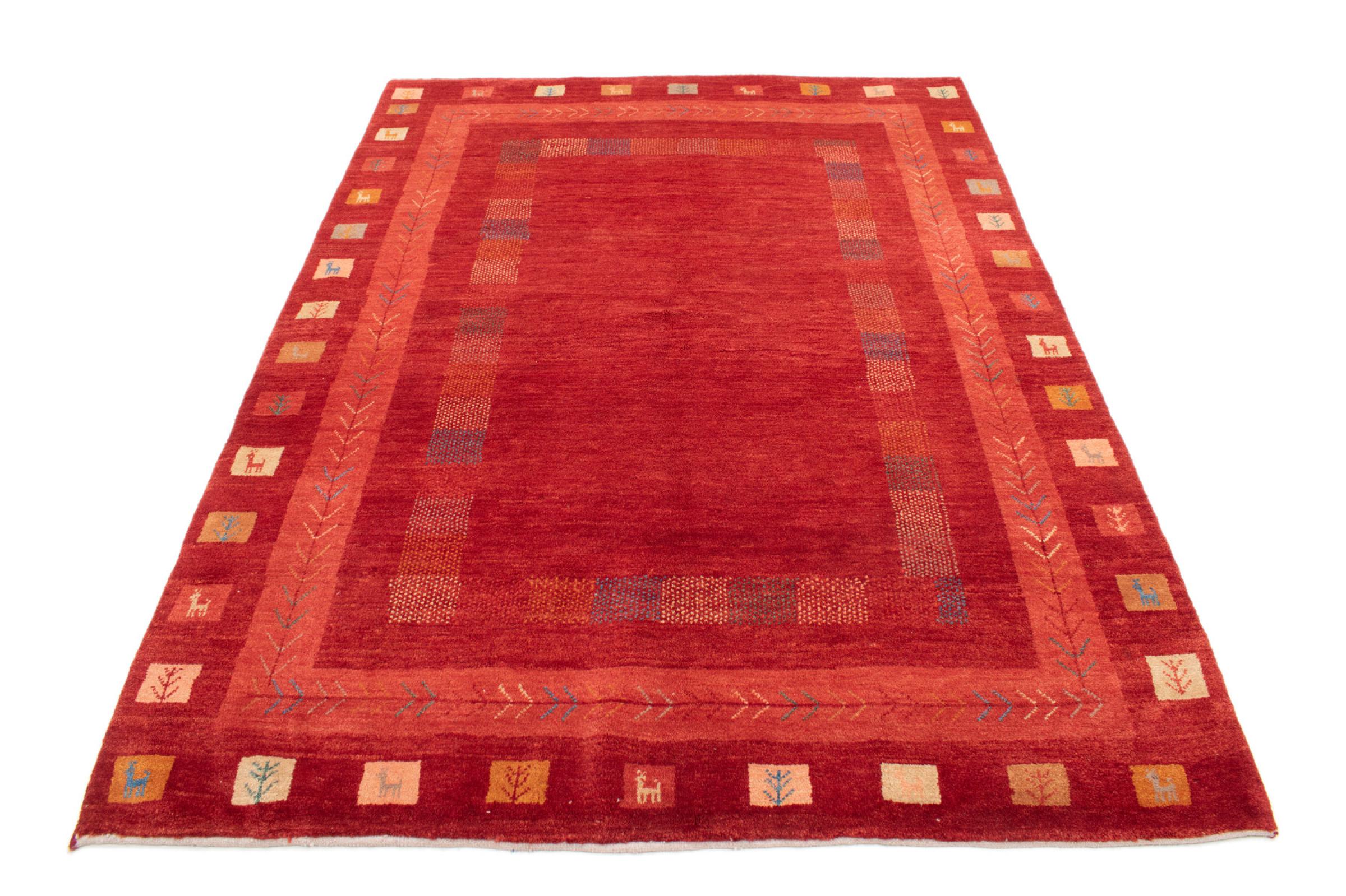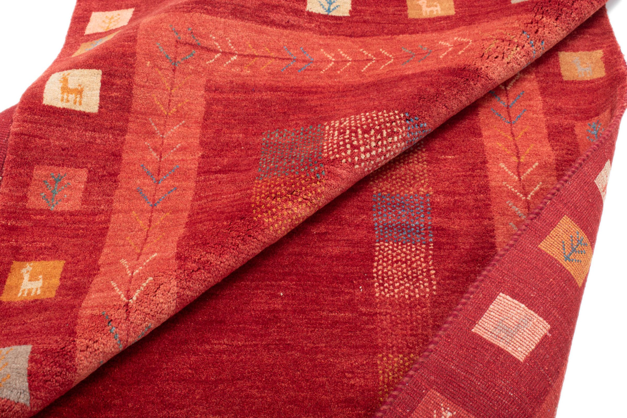 Tämä kaunis matto on Persian Gabbeh ja on yksi korkealaatuisimmista Gabbeh-matoista. Iranissa nomadit tai puoli-nomadit solmittavat mattoja perinteisillä käsityöillä. Yksinkertaiset motiivit ja kuviot ovat pääosin inspiroineet paimentolaisten välittömästä ympäristöstä. Esimerkiksi kameleita, puita tai pensaita löytyy perinteisistä matoista. Persialaiset Gabbeh-matot on valmistettu paikallisten lammaslaumojen villasta. Siksi villaa kehrätään useimmiten käsin. Jokainen näistä itämaisista matoista edustaa vuosisatojen vanhan kulttuurin ainutlaatuista luonnetta.