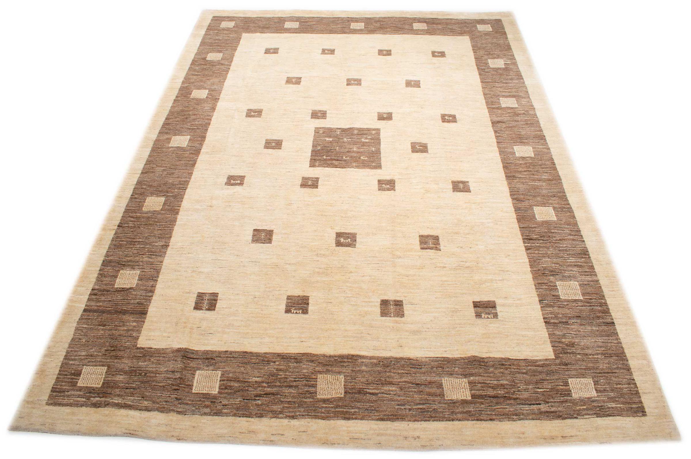 Tämä kaunis matto on Persian Gabbeh ja on yksi korkealaatuisimmista Gabbeh-matoista. Iranissa nomadit tai puoli-nomadit solmittavat mattoja perinteisillä käsityöillä. Yksinkertaiset motiivit ja kuviot ovat pääosin inspiroineet paimentolaisten välittömästä ympäristöstä. Esimerkiksi kameleita, puita tai pensaita löytyy perinteisistä matoista. Persialaiset Gabbeh-matot on valmistettu paikallisten lammaslaumojen villasta. Siksi villaa kehrätään useimmiten käsin. Jokainen näistä itämaisista matoista edustaa vuosisatojen vanhan kulttuurin ainutlaatuista luonnetta.