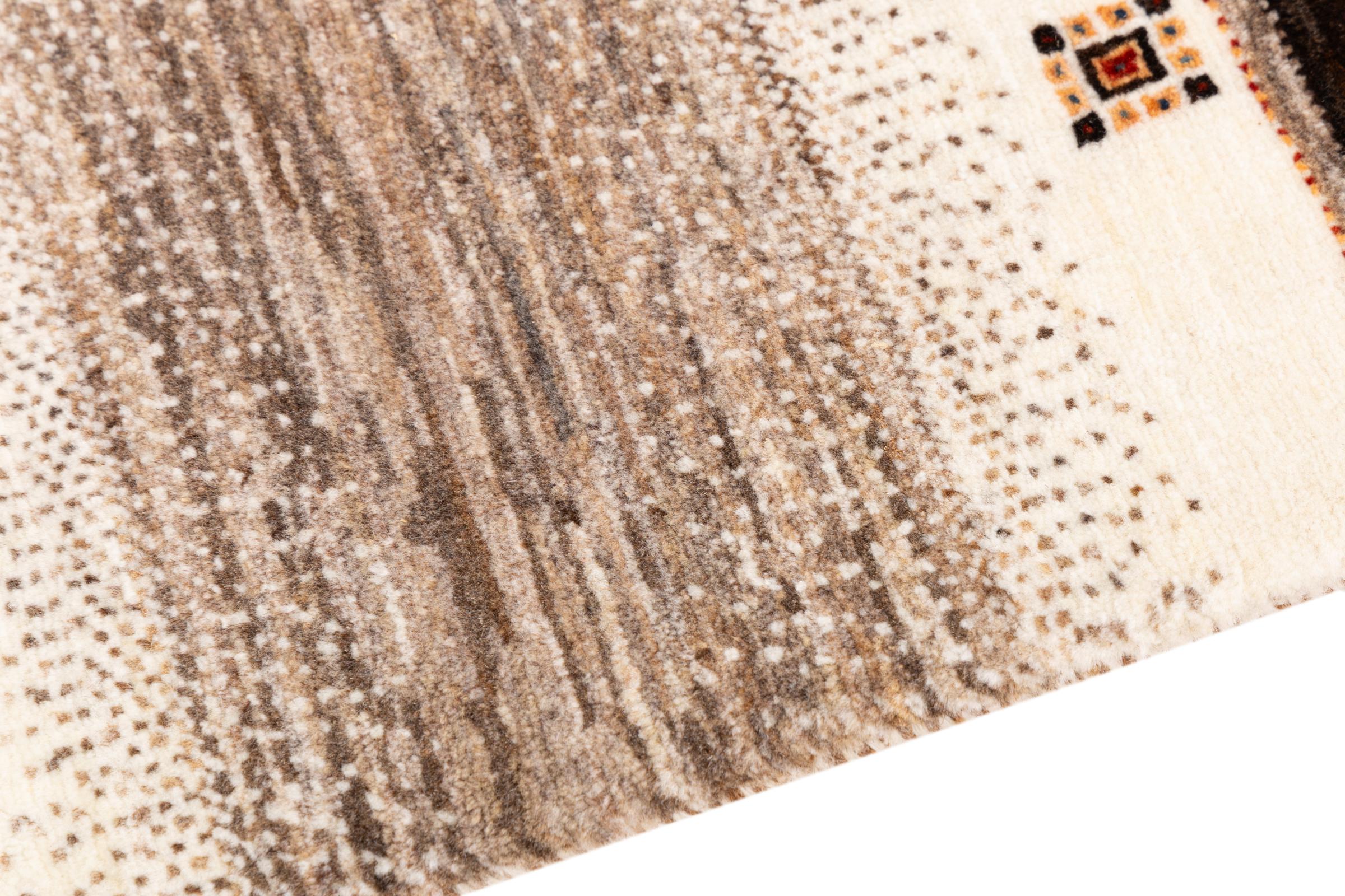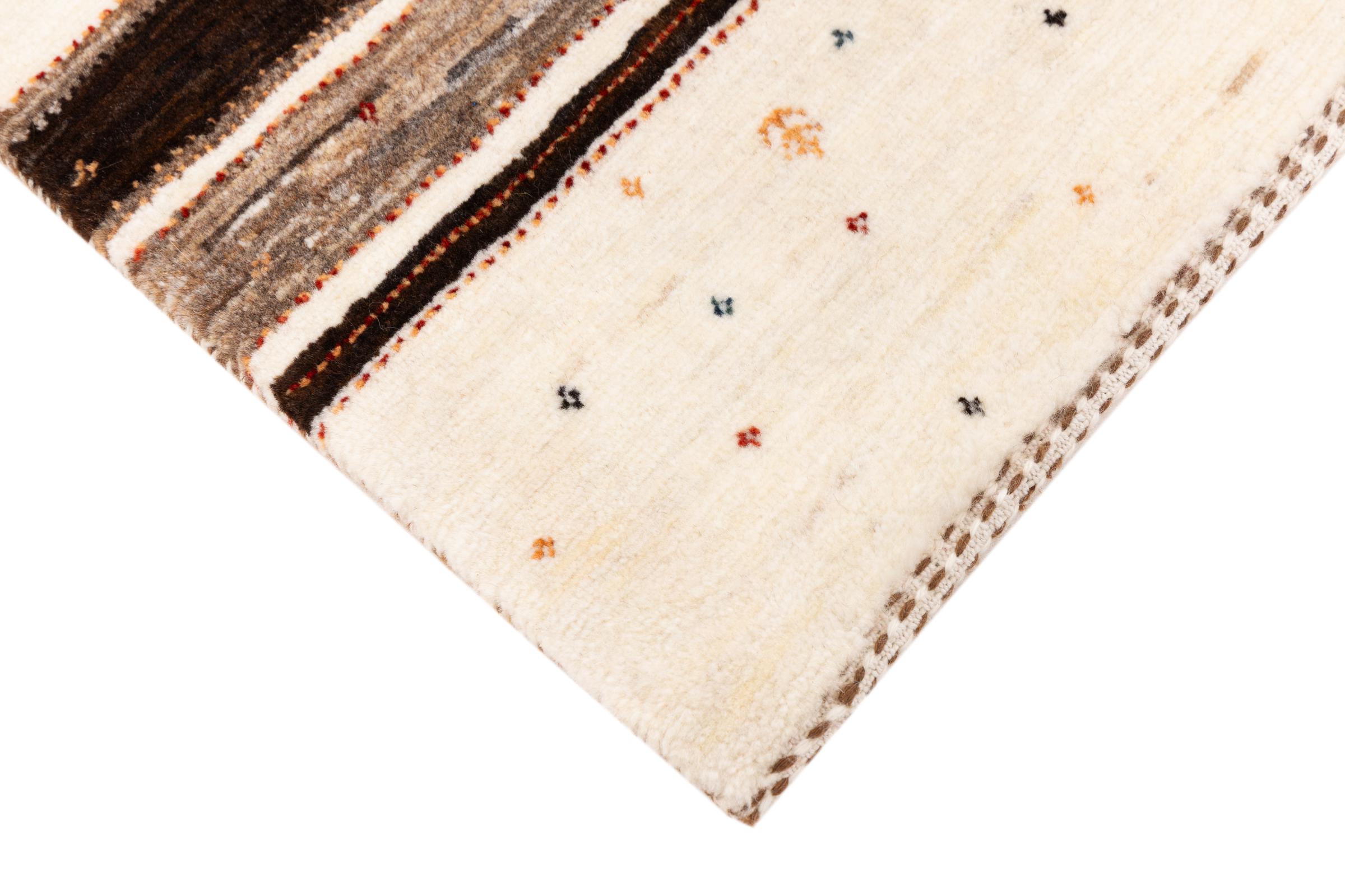 Tämä kaunis matto on Persian Gabbeh ja on yksi korkealaatuisimmista Gabbeh-matoista. Iranissa nomadit tai puoli-nomadit solmittavat mattoja perinteisillä käsityöillä. Yksinkertaiset motiivit ja kuviot ovat pääosin inspiroineet paimentolaisten välittömästä ympäristöstä. Esimerkiksi kameleita, puita tai pensaita löytyy perinteisistä matoista. Persialaiset Gabbeh-matot on valmistettu paikallisten lammaslaumojen villasta. Siksi villaa kehrätään useimmiten käsin. Jokainen näistä itämaisista matoista edustaa vuosisatojen vanhan kulttuurin ainutlaatuista luonnetta.