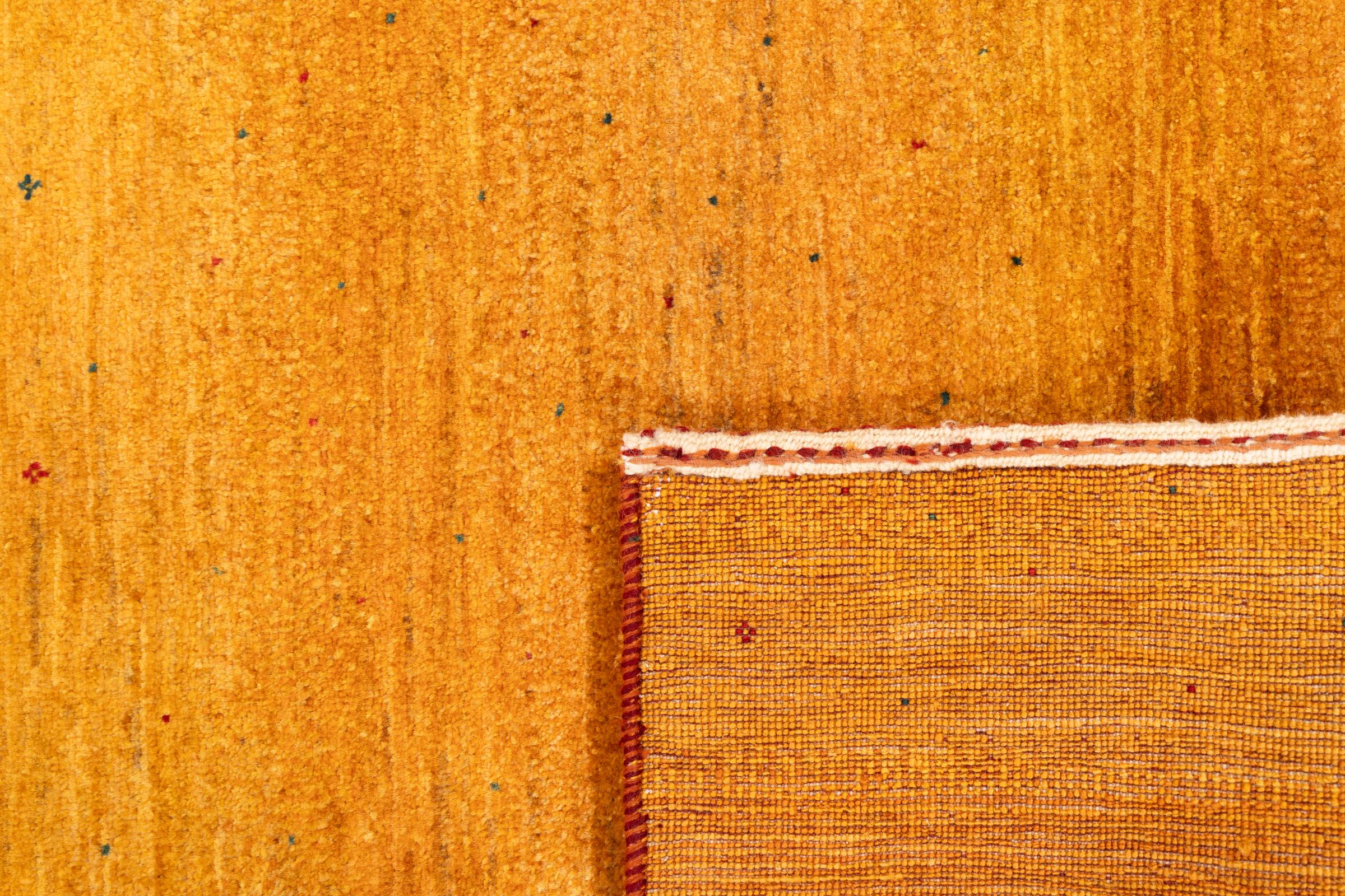 Tämä kaunis matto on Persian Gabbeh ja on yksi korkealaatuisimmista Gabbeh-matoista. Iranissa nomadit tai puoli-nomadit solmittavat mattoja perinteisillä käsityöillä. Yksinkertaiset motiivit ja kuviot ovat pääosin inspiroineet paimentolaisten välittömästä ympäristöstä. Esimerkiksi kameleita, puita tai pensaita löytyy perinteisistä matoista. Persialaiset Gabbeh-matot on valmistettu paikallisten lammaslaumojen villasta. Siksi villaa kehrätään useimmiten käsin. Jokainen näistä itämaisista matoista edustaa vuosisatojen vanhan kulttuurin ainutlaatuista luonnetta.