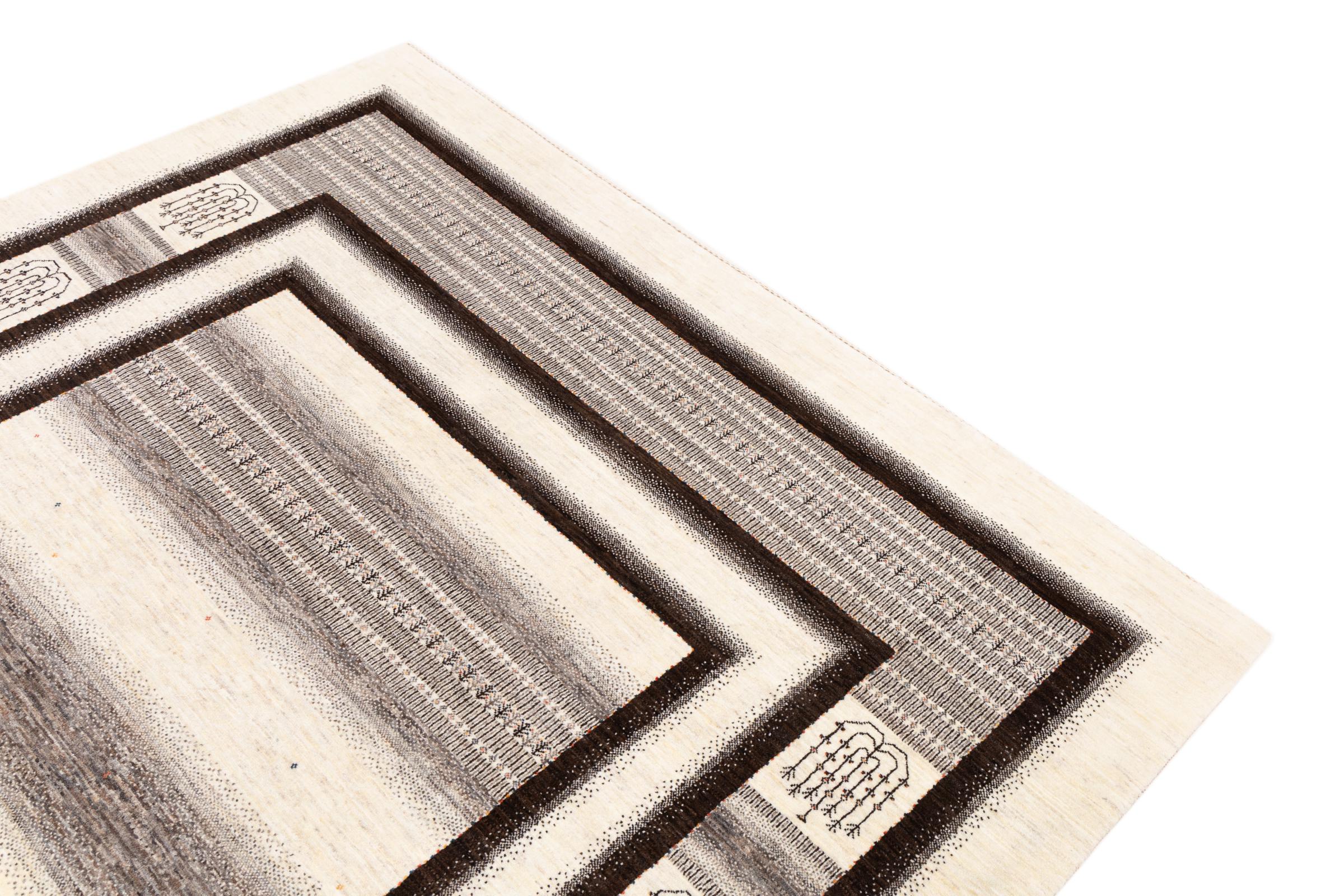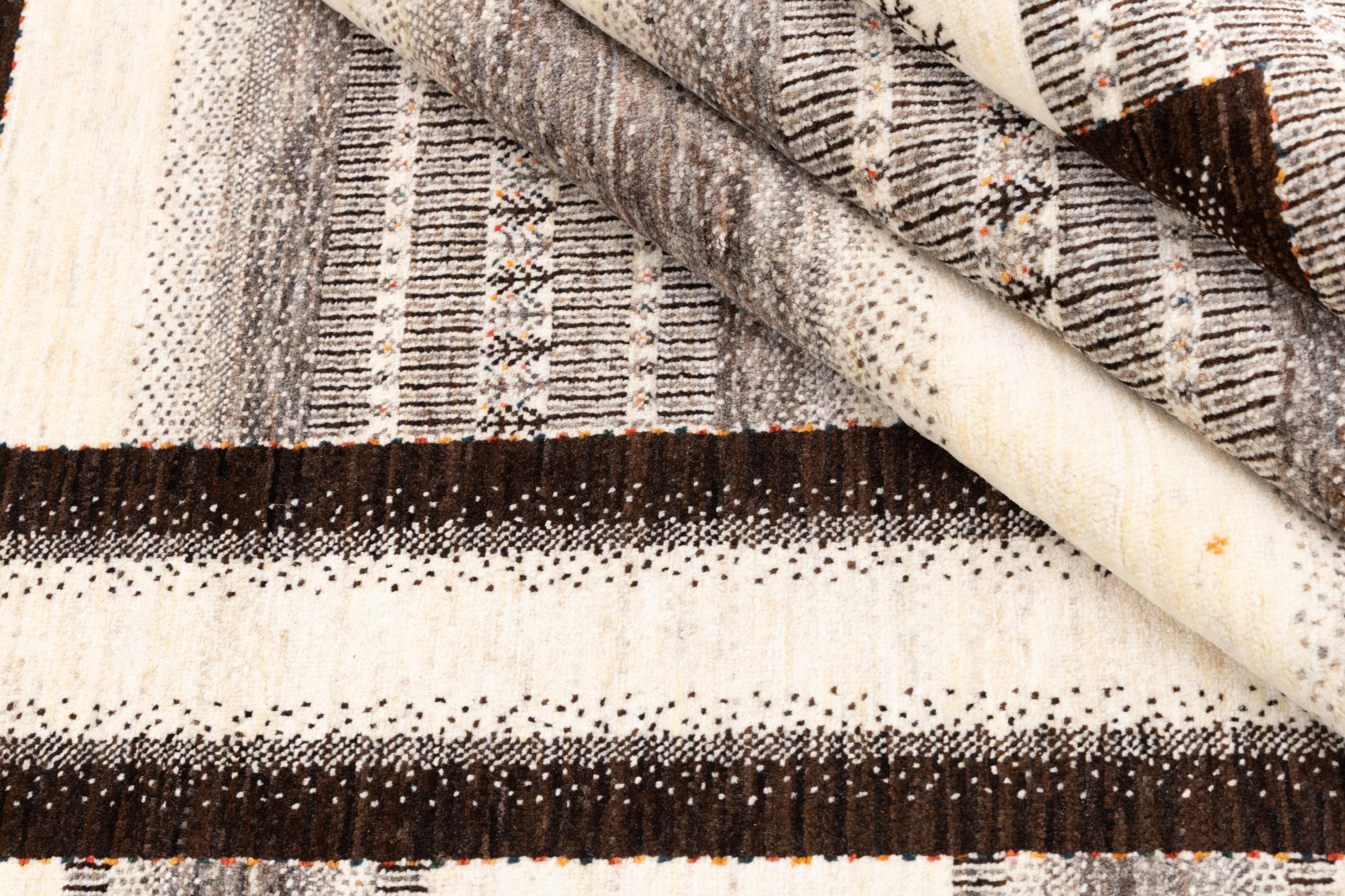 Tämä kaunis matto on Persian Gabbeh ja on yksi korkealaatuisimmista Gabbeh-matoista. Iranissa nomadit tai puoli-nomadit solmittavat mattoja perinteisillä käsityöillä. Yksinkertaiset motiivit ja kuviot ovat pääosin inspiroineet paimentolaisten välittömästä ympäristöstä. Esimerkiksi kameleita, puita tai pensaita löytyy perinteisistä matoista. Persialaiset Gabbeh-matot on valmistettu paikallisten lammaslaumojen villasta. Siksi villaa kehrätään useimmiten käsin. Jokainen näistä itämaisista matoista edustaa vuosisatojen vanhan kulttuurin ainutlaatuista luonnetta.