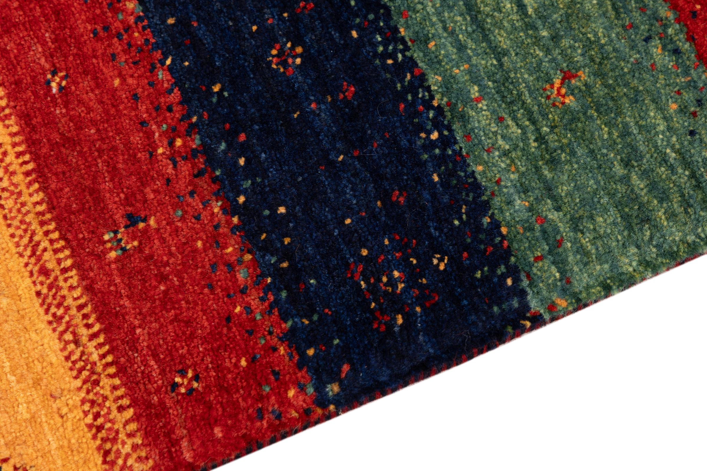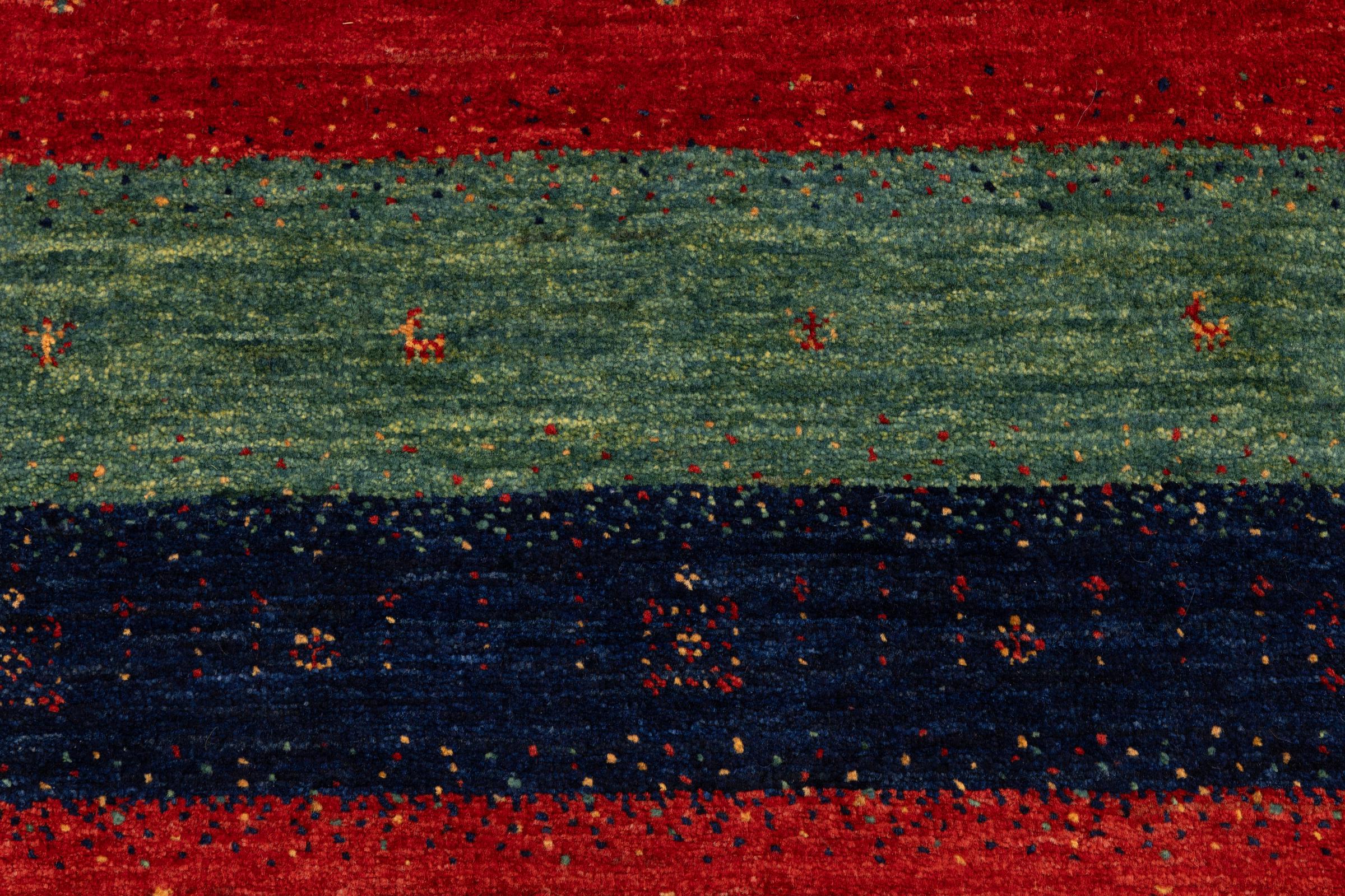Tämä kaunis matto on Persian Gabbeh ja on yksi korkealaatuisimmista Gabbeh-matoista. Iranissa nomadit tai puoli-nomadit solmittavat mattoja perinteisillä käsityöillä. Yksinkertaiset motiivit ja kuviot ovat pääosin inspiroineet paimentolaisten välittömästä ympäristöstä. Esimerkiksi kameleita, puita tai pensaita löytyy perinteisistä matoista. Persialaiset Gabbeh-matot on valmistettu paikallisten lammaslaumojen villasta. Siksi villaa kehrätään useimmiten käsin. Jokainen näistä itämaisista matoista edustaa vuosisatojen vanhan kulttuurin ainutlaatuista luonnetta.