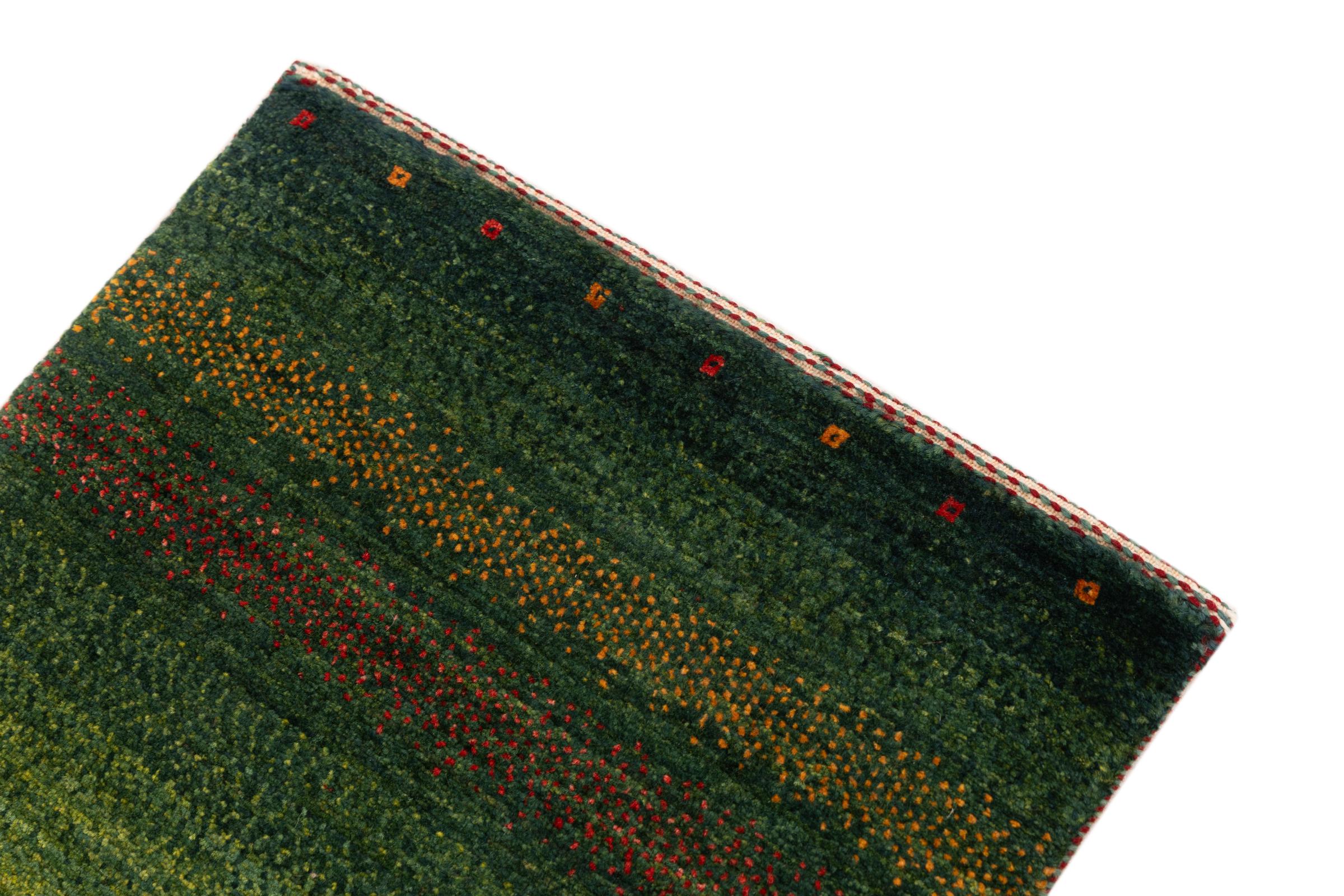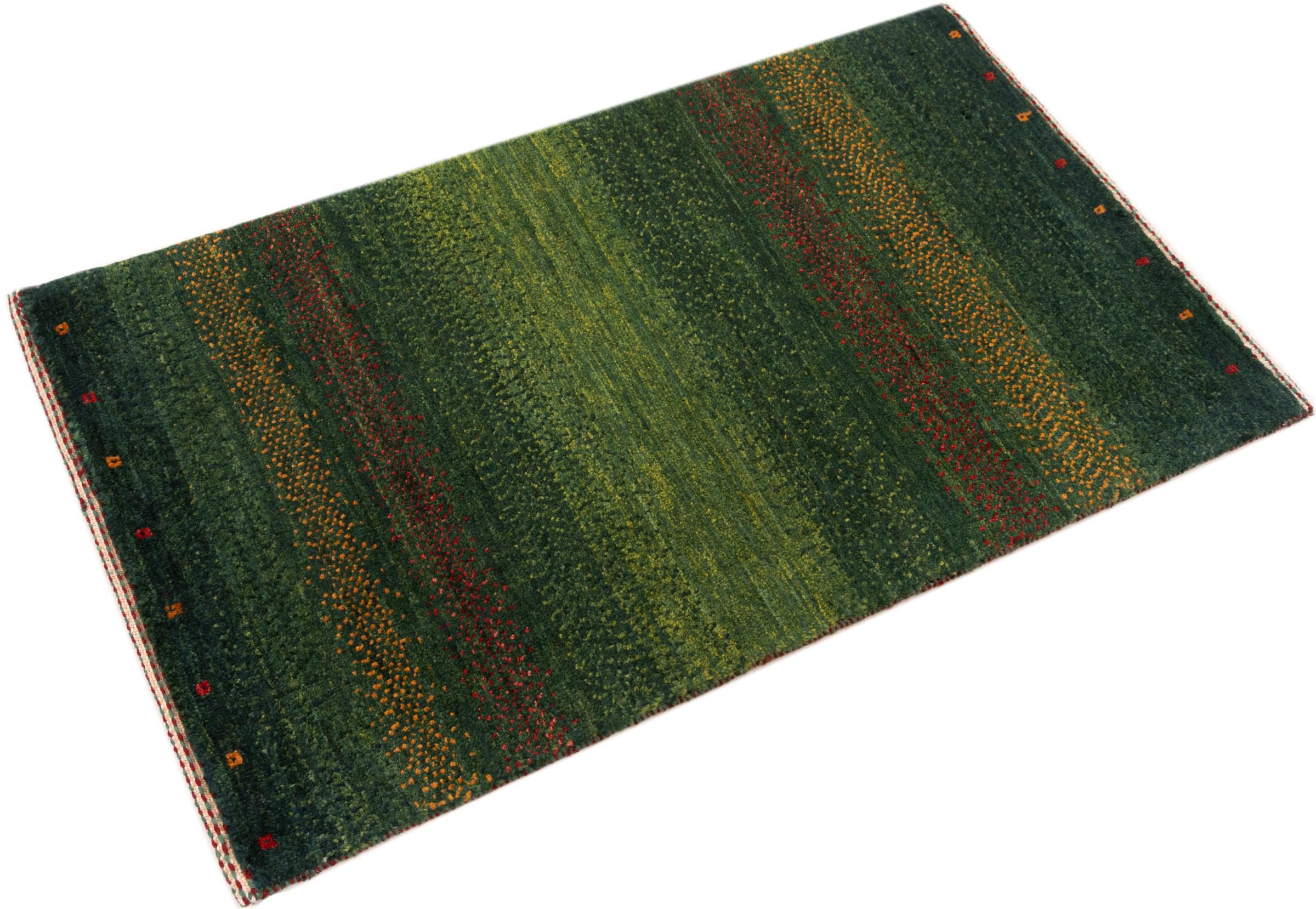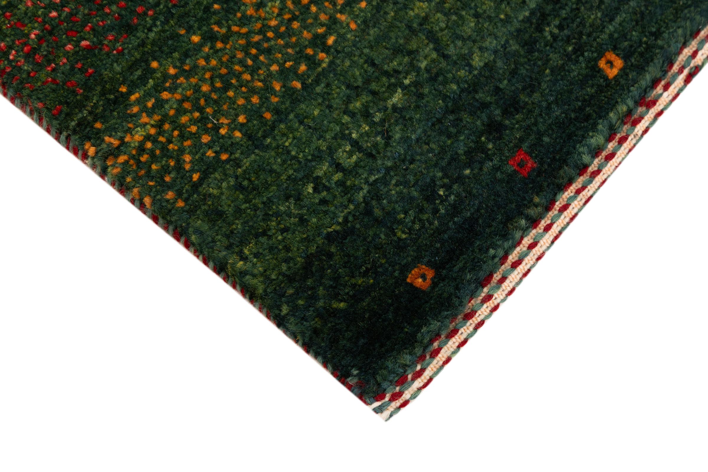 Tämä kaunis matto on Persian Gabbeh ja on yksi korkealaatuisimmista Gabbeh-matoista. Iranissa nomadit tai puoli-nomadit solmittavat mattoja perinteisillä käsityöillä. Yksinkertaiset motiivit ja kuviot ovat pääosin inspiroineet paimentolaisten välittömästä ympäristöstä. Esimerkiksi kameleita, puita tai pensaita löytyy perinteisistä matoista. Persialaiset Gabbeh-matot on valmistettu paikallisten lammaslaumojen villasta. Siksi villaa kehrätään useimmiten käsin. Jokainen näistä itämaisista matoista edustaa vuosisatojen vanhan kulttuurin ainutlaatuista luonnetta.