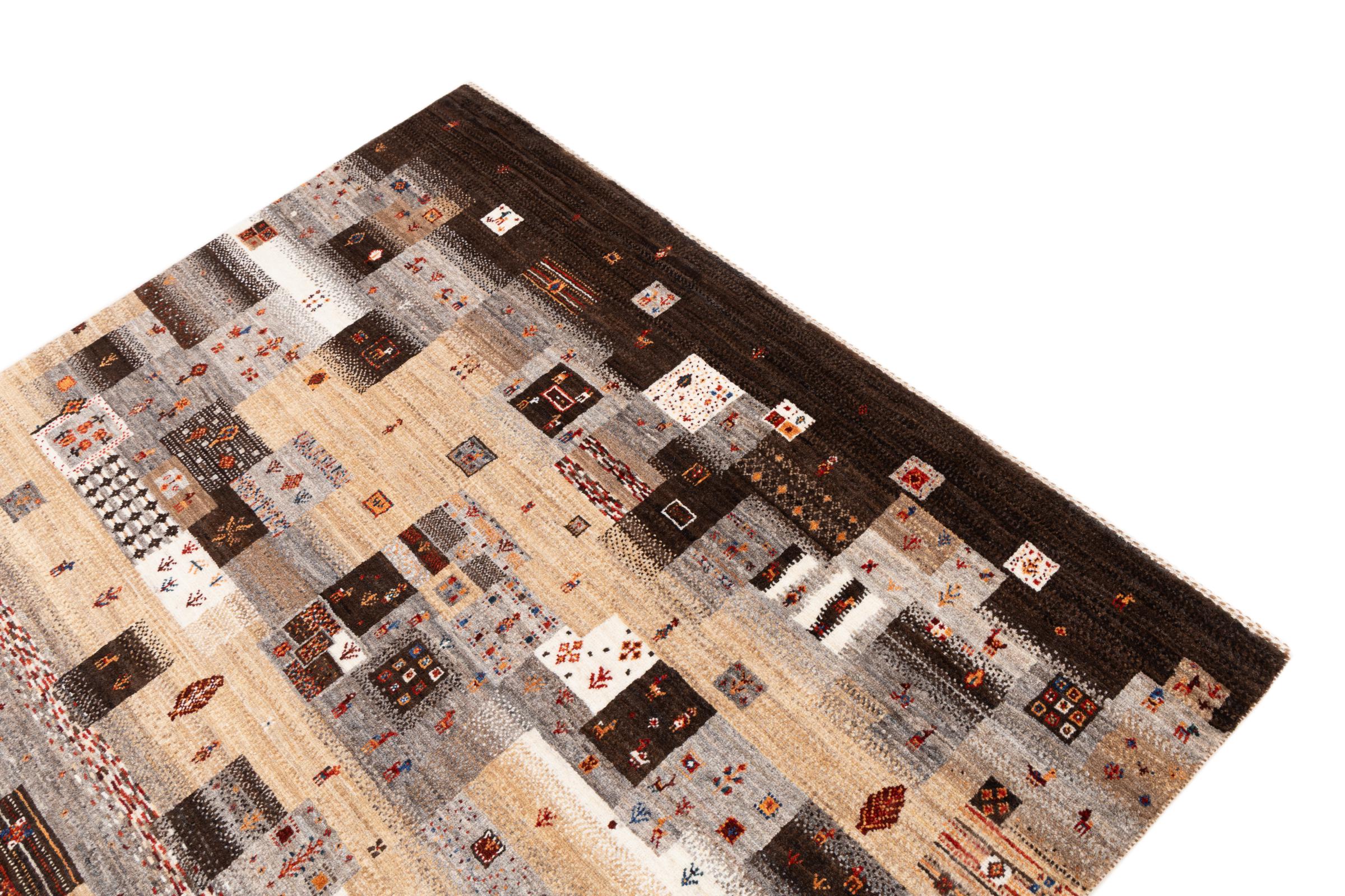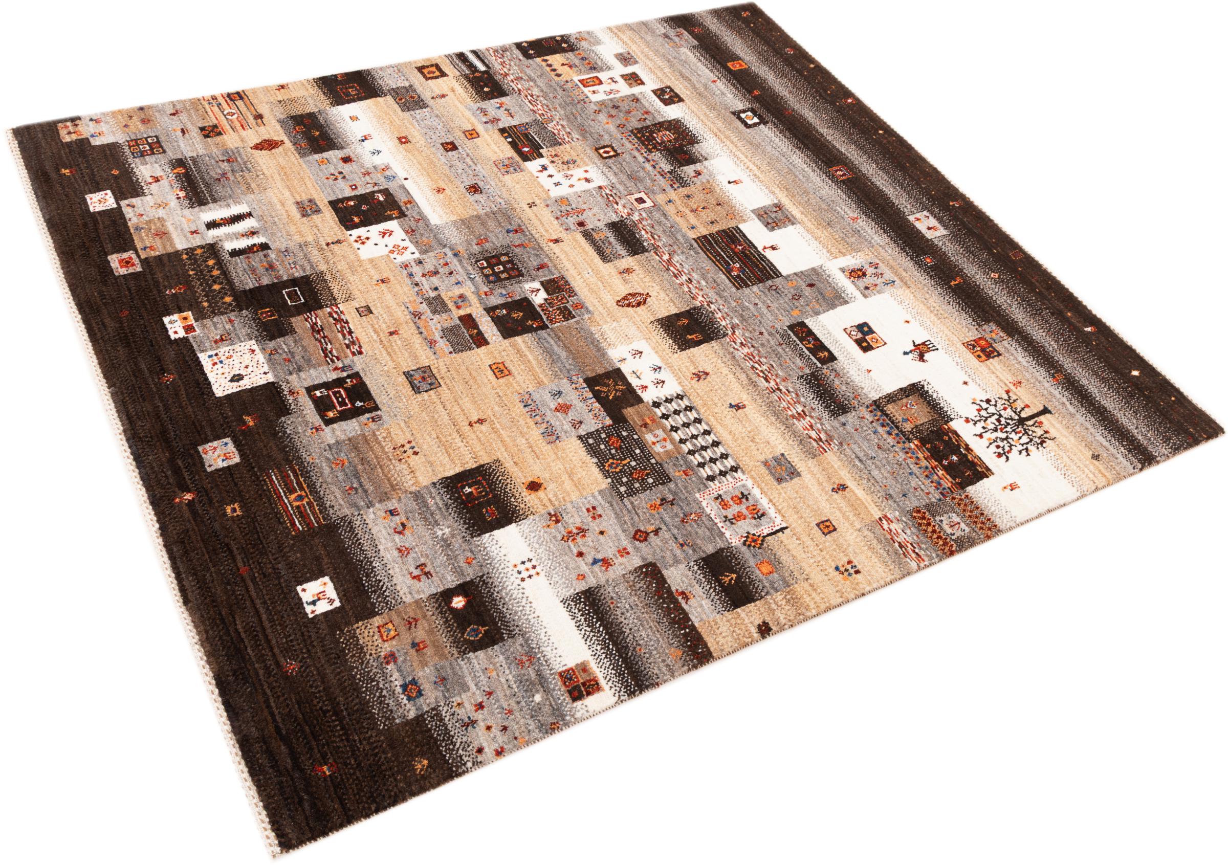 Tämä kaunis matto on Persian Gabbeh ja on yksi korkealaatuisimmista Gabbeh-matoista. Iranissa nomadit tai puoli-nomadit solmittavat mattoja perinteisillä käsityöillä. Yksinkertaiset motiivit ja kuviot ovat pääosin inspiroineet paimentolaisten välittömästä ympäristöstä. Esimerkiksi kameleita, puita tai pensaita löytyy perinteisistä matoista. Persialaiset Gabbeh-matot on valmistettu paikallisten lammaslaumojen villasta. Siksi villaa kehrätään useimmiten käsin. Jokainen näistä itämaisista matoista edustaa vuosisatojen vanhan kulttuurin ainutlaatuista luonnetta.