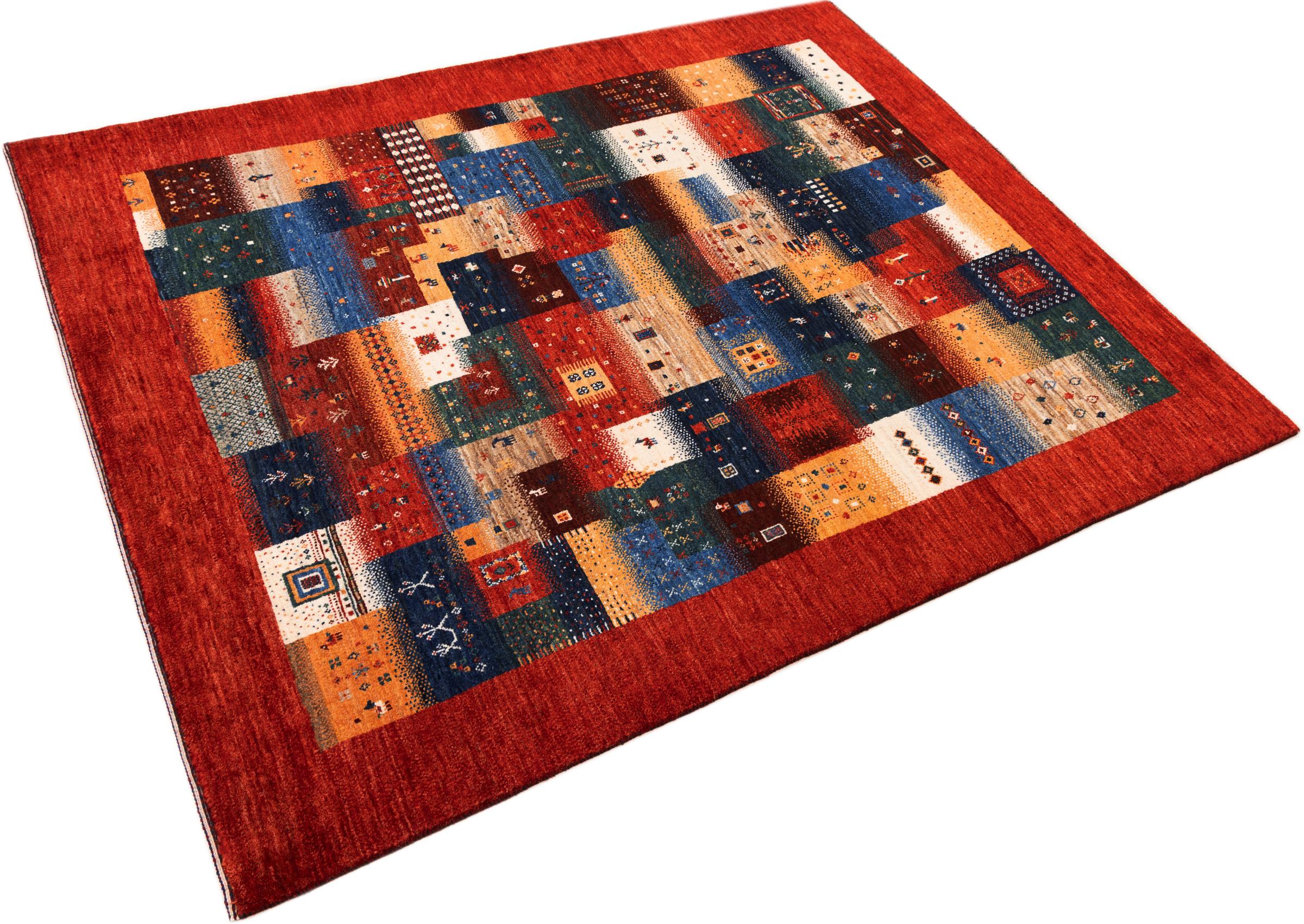 Tämä kaunis matto on Persian Gabbeh ja on yksi korkealaatuisimmista Gabbeh-matoista. Iranissa nomadit tai puoli-nomadit solmittavat mattoja perinteisillä käsityöillä. Yksinkertaiset motiivit ja kuviot ovat pääosin inspiroineet paimentolaisten välittömästä ympäristöstä. Esimerkiksi kameleita, puita tai pensaita löytyy perinteisistä matoista. Persialaiset Gabbeh-matot on valmistettu paikallisten lammaslaumojen villasta. Siksi villaa kehrätään useimmiten käsin. Jokainen näistä itämaisista matoista edustaa vuosisatojen vanhan kulttuurin ainutlaatuista luonnetta.