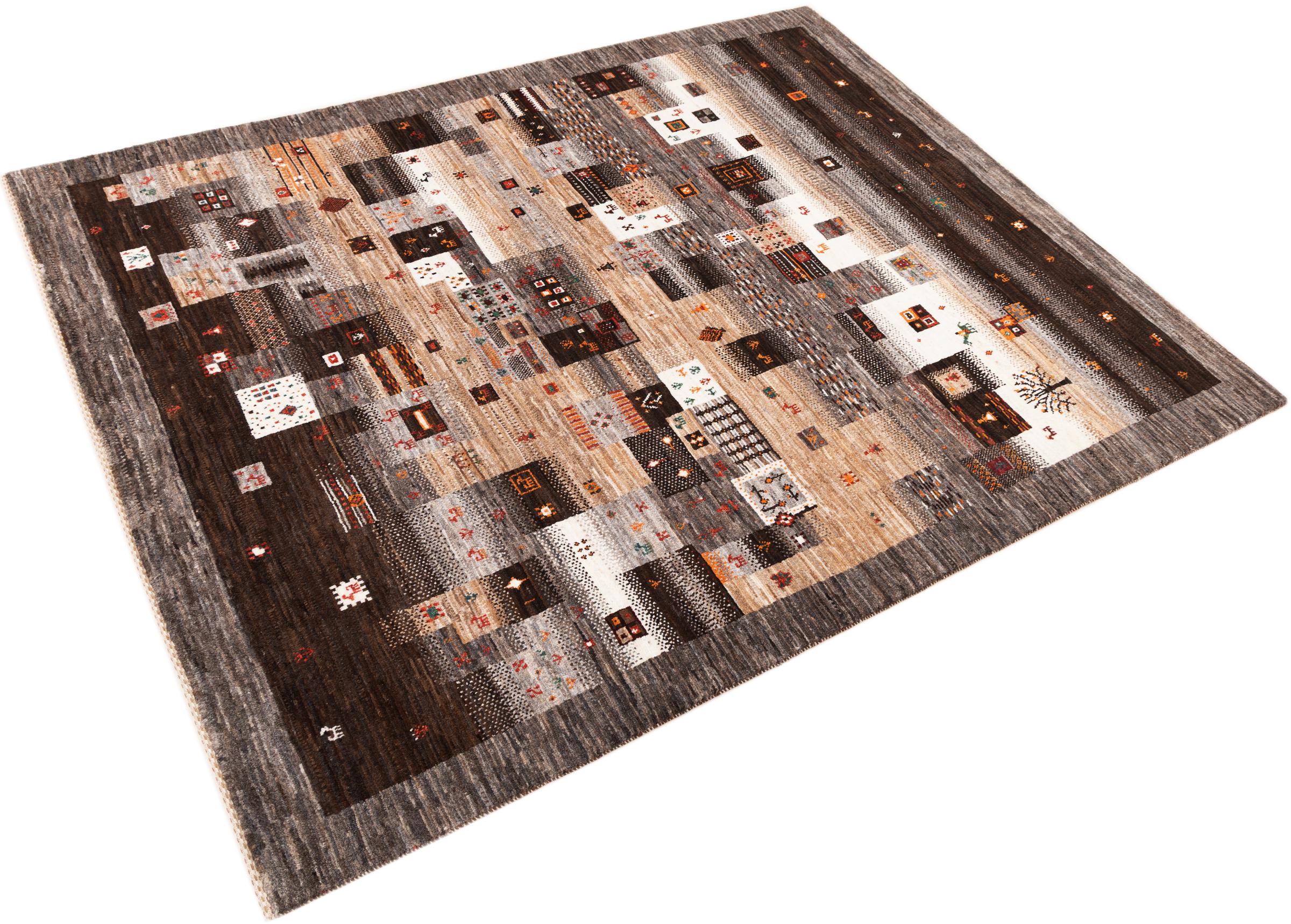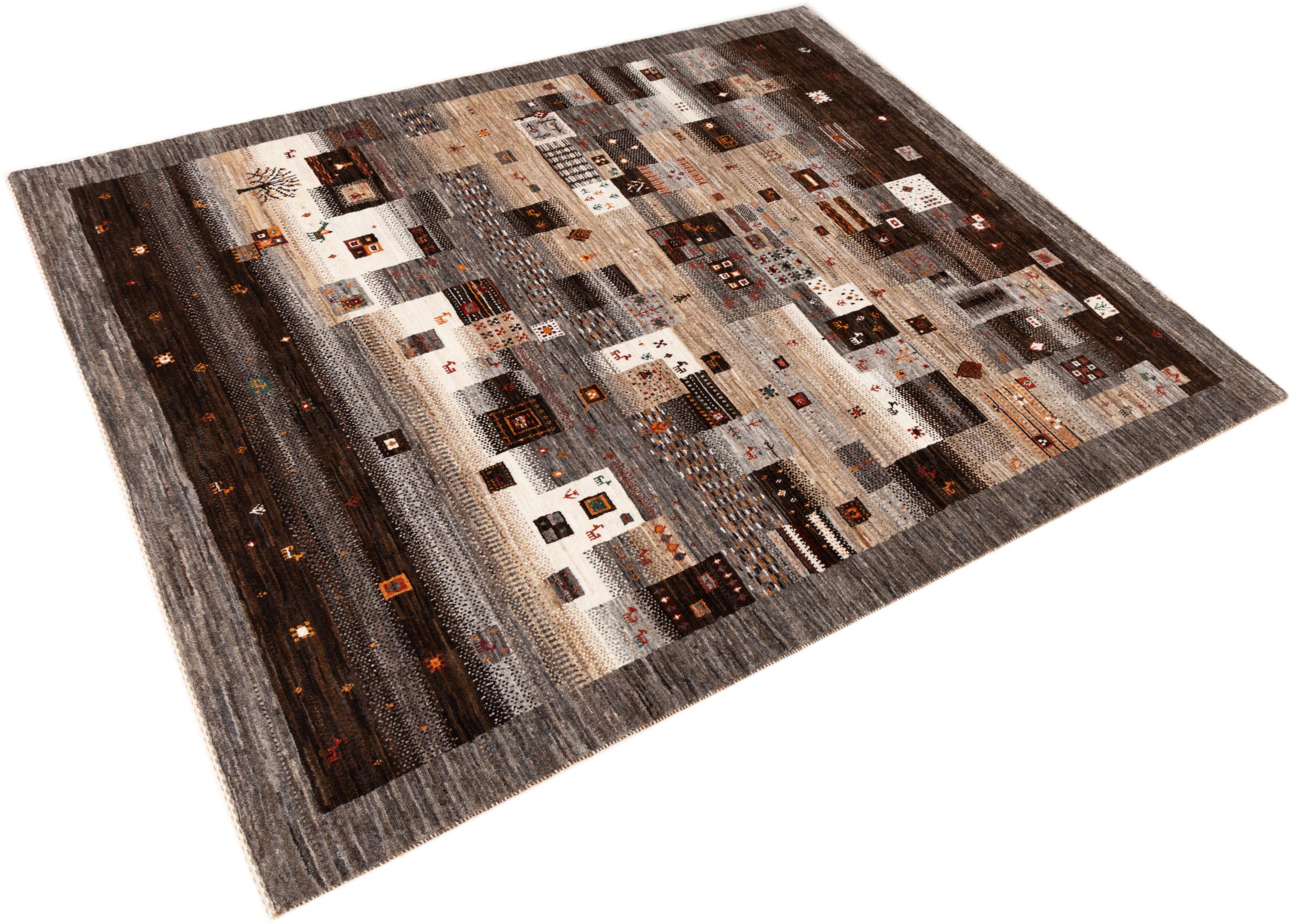 Tämä kaunis matto on Persian Gabbeh ja on yksi korkealaatuisimmista Gabbeh-matoista. Iranissa nomadit tai puoli-nomadit solmittavat mattoja perinteisillä käsityöillä. Yksinkertaiset motiivit ja kuviot ovat pääosin inspiroineet paimentolaisten välittömästä ympäristöstä. Esimerkiksi kameleita, puita tai pensaita löytyy perinteisistä matoista. Persialaiset Gabbeh-matot on valmistettu paikallisten lammaslaumojen villasta. Siksi villaa kehrätään useimmiten käsin. Jokainen näistä itämaisista matoista edustaa vuosisatojen vanhan kulttuurin ainutlaatuista luonnetta.