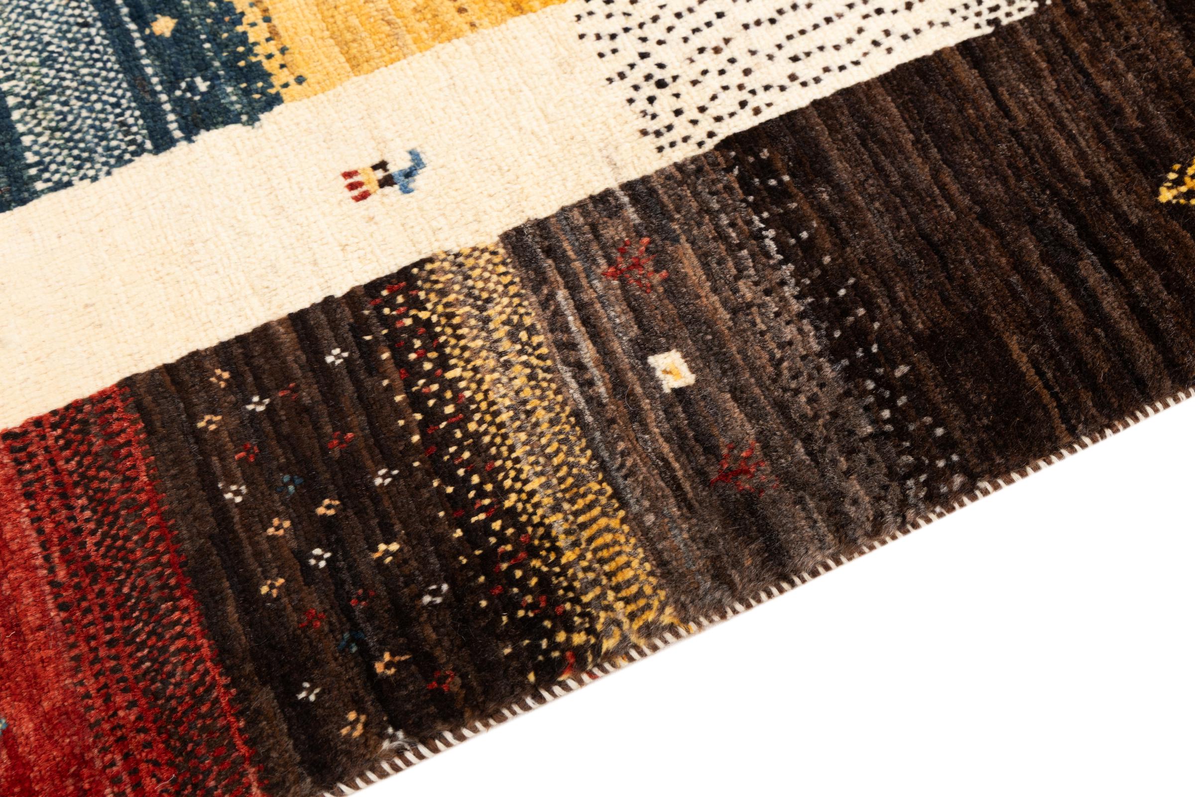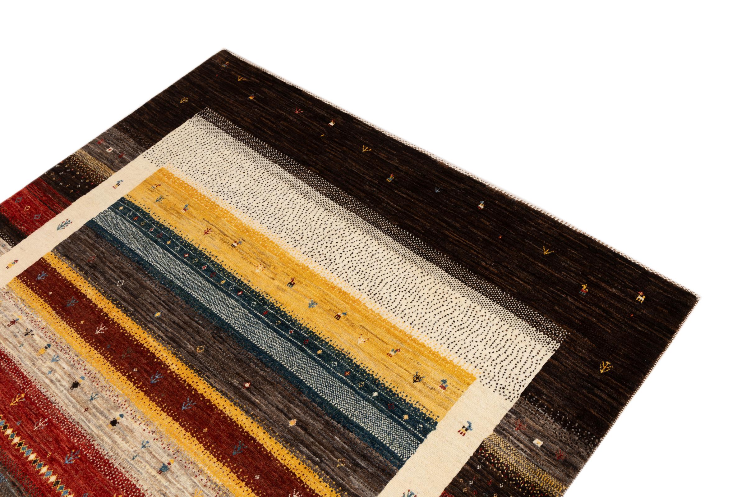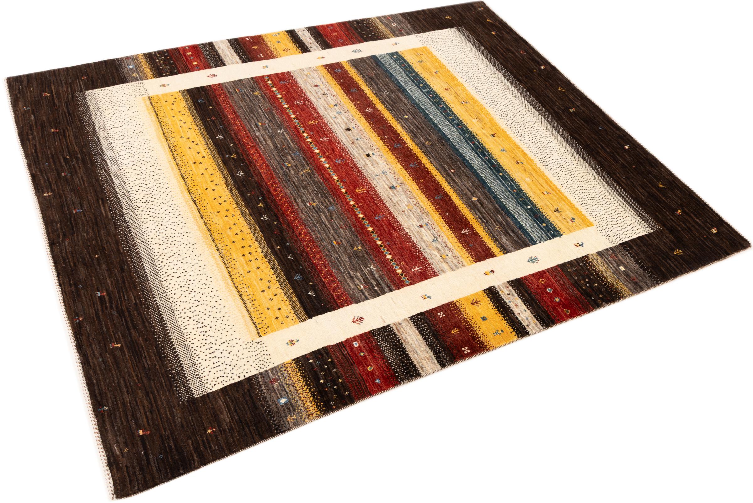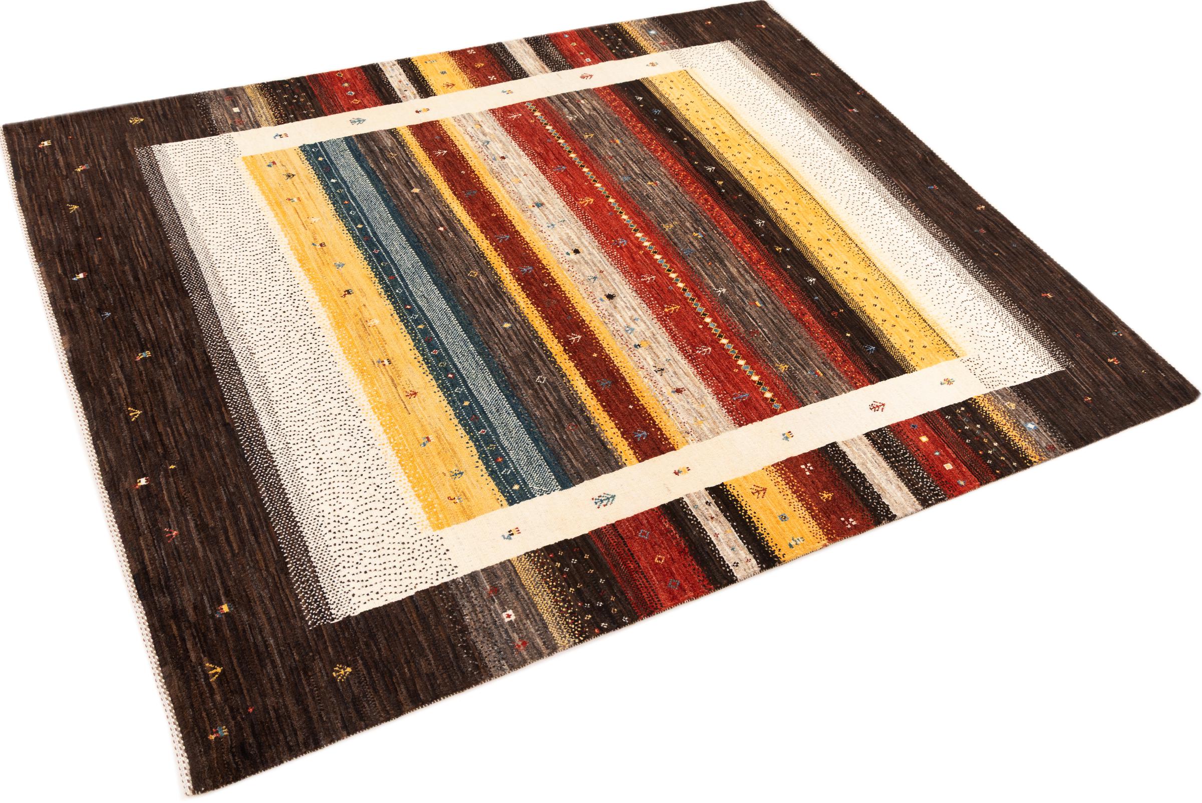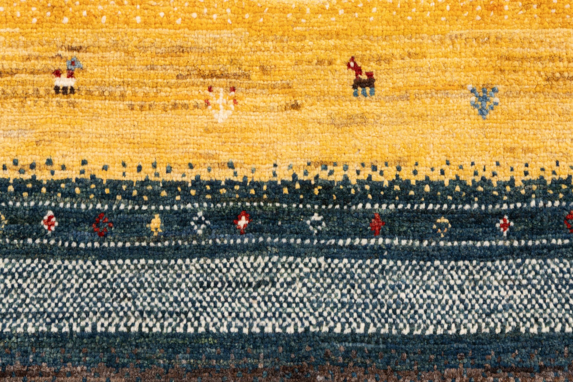 Tämä kaunis matto on Persian Gabbeh ja on yksi korkealaatuisimmista Gabbeh-matoista. Iranissa nomadit tai puoli-nomadit solmittavat mattoja perinteisillä käsityöillä. Yksinkertaiset motiivit ja kuviot ovat pääosin inspiroineet paimentolaisten välittömästä ympäristöstä. Esimerkiksi kameleita, puita tai pensaita löytyy perinteisistä matoista. Persialaiset Gabbeh-matot on valmistettu paikallisten lammaslaumojen villasta. Siksi villaa kehrätään useimmiten käsin. Jokainen näistä itämaisista matoista edustaa vuosisatojen vanhan kulttuurin ainutlaatuista luonnetta.