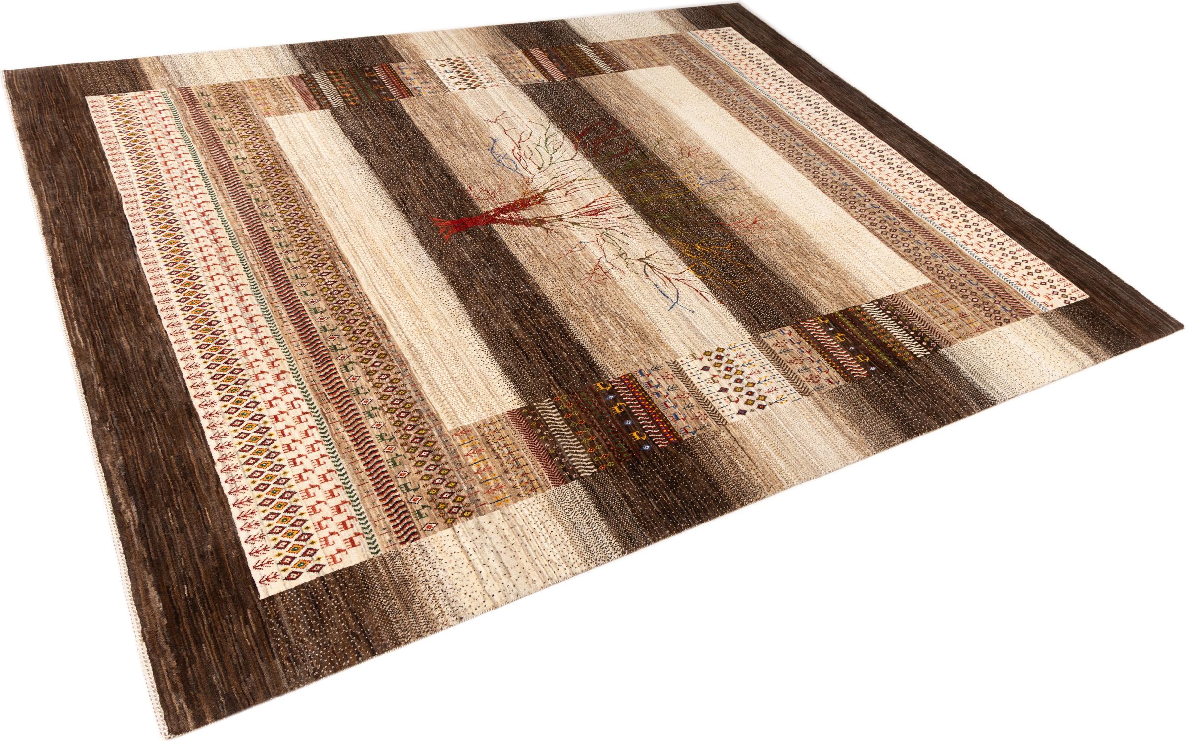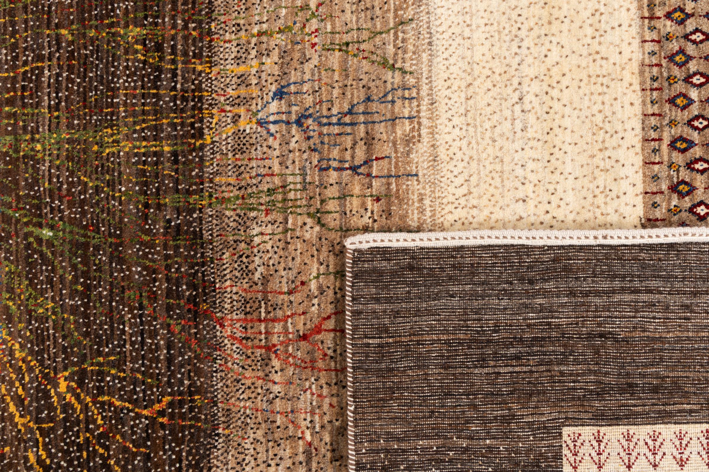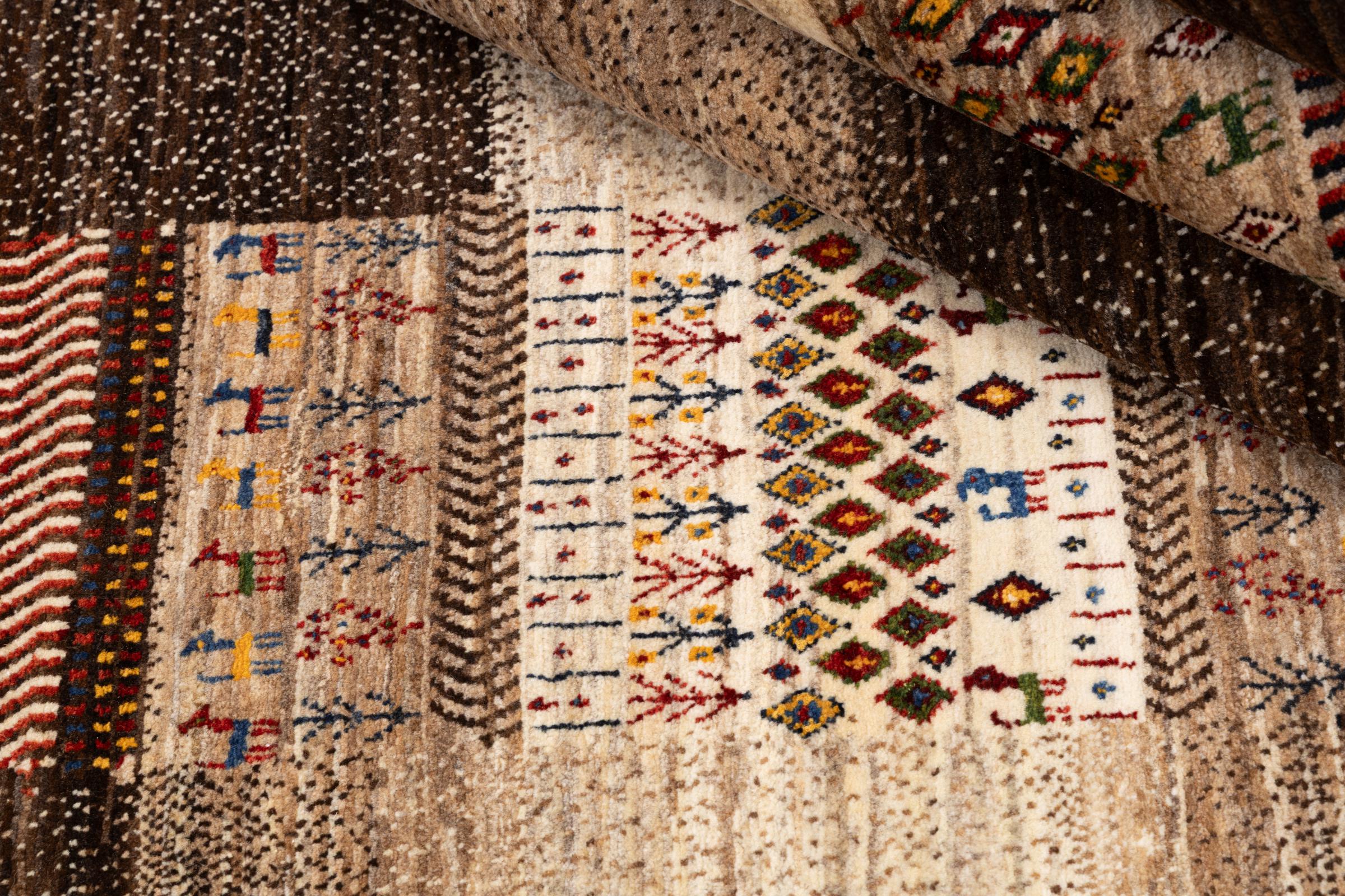 Tämä kaunis matto on Persian Gabbeh ja on yksi korkealaatuisimmista Gabbeh-matoista. Iranissa nomadit tai puoli-nomadit solmittavat mattoja perinteisillä käsityöillä. Yksinkertaiset motiivit ja kuviot ovat pääosin inspiroineet paimentolaisten välittömästä ympäristöstä. Esimerkiksi kameleita, puita tai pensaita löytyy perinteisistä matoista. Persialaiset Gabbeh-matot on valmistettu paikallisten lammaslaumojen villasta. Siksi villaa kehrätään useimmiten käsin. Jokainen näistä itämaisista matoista edustaa vuosisatojen vanhan kulttuurin ainutlaatuista luonnetta.