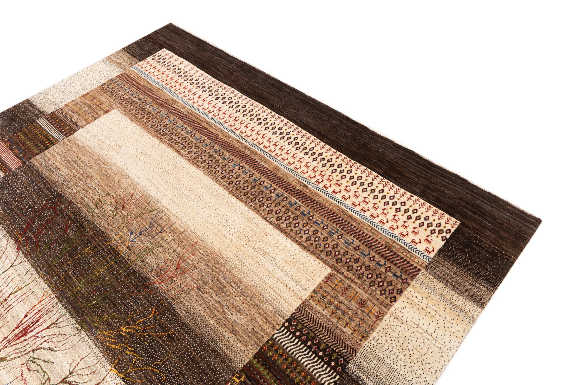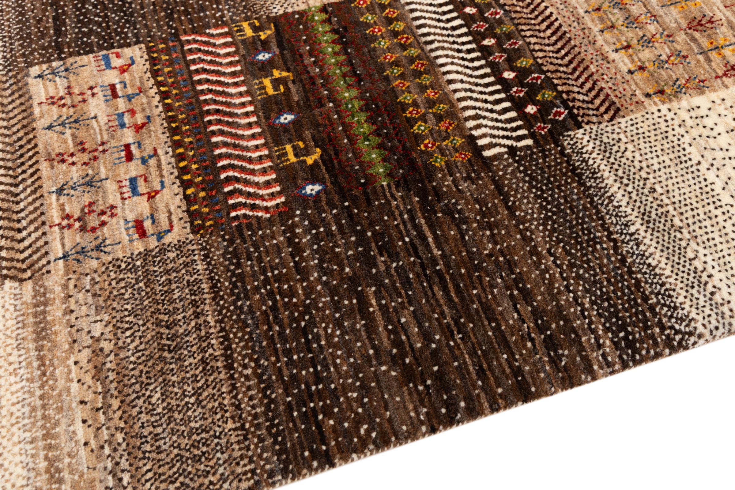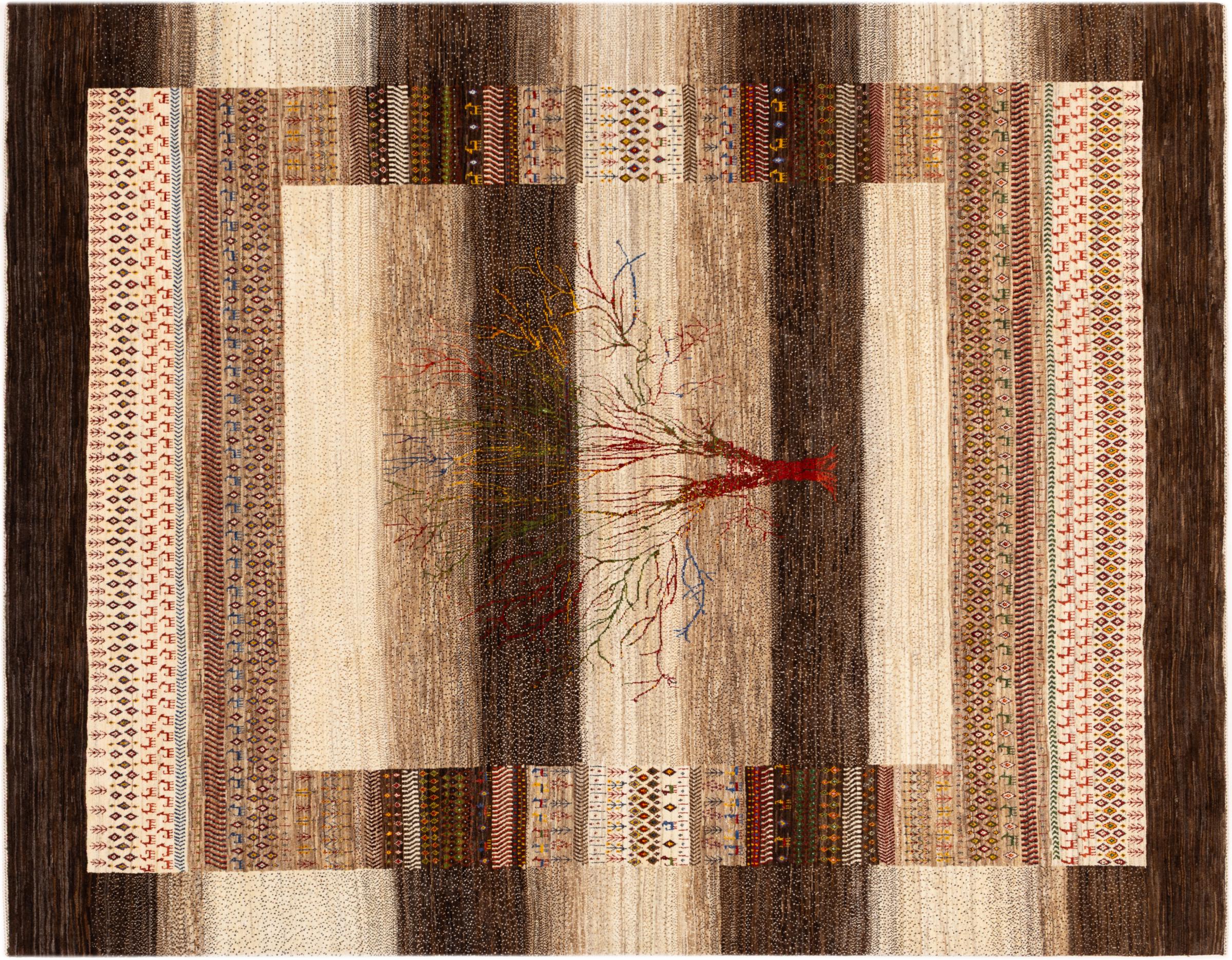 Tämä kaunis matto on Persian Gabbeh ja on yksi korkealaatuisimmista Gabbeh-matoista. Iranissa nomadit tai puoli-nomadit solmittavat mattoja perinteisillä käsityöillä. Yksinkertaiset motiivit ja kuviot ovat pääosin inspiroineet paimentolaisten välittömästä ympäristöstä. Esimerkiksi kameleita, puita tai pensaita löytyy perinteisistä matoista. Persialaiset Gabbeh-matot on valmistettu paikallisten lammaslaumojen villasta. Siksi villaa kehrätään useimmiten käsin. Jokainen näistä itämaisista matoista edustaa vuosisatojen vanhan kulttuurin ainutlaatuista luonnetta.