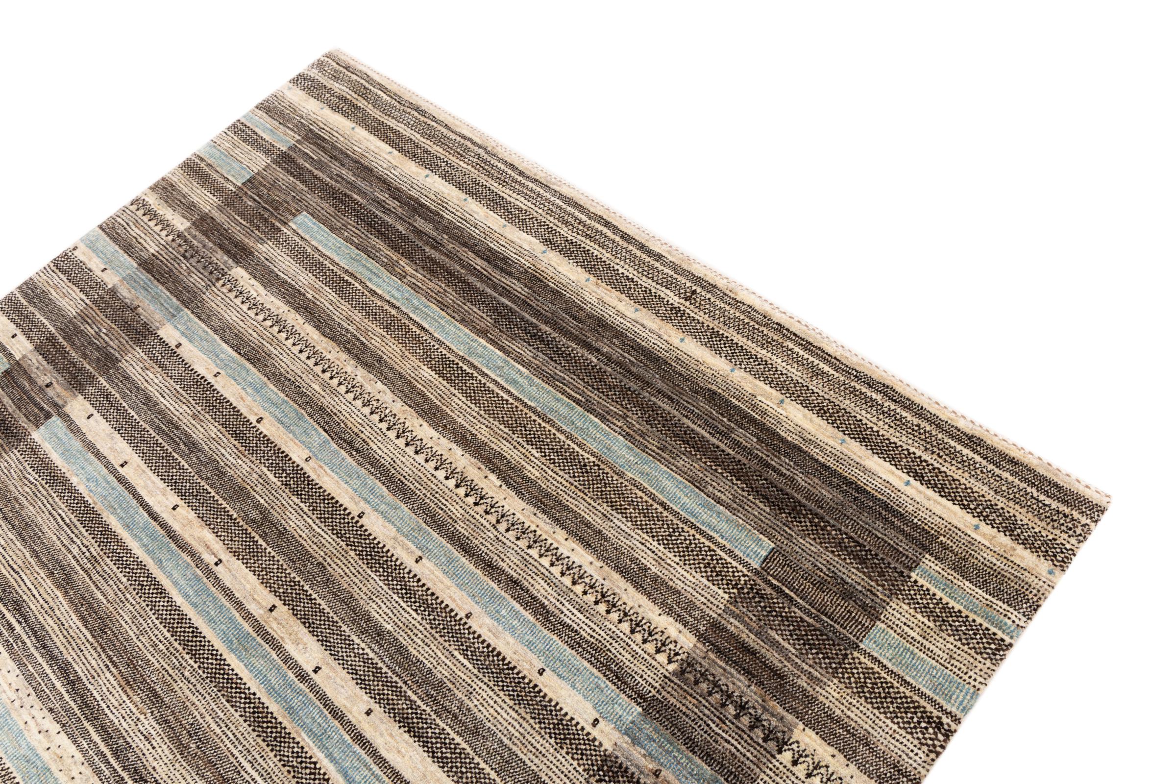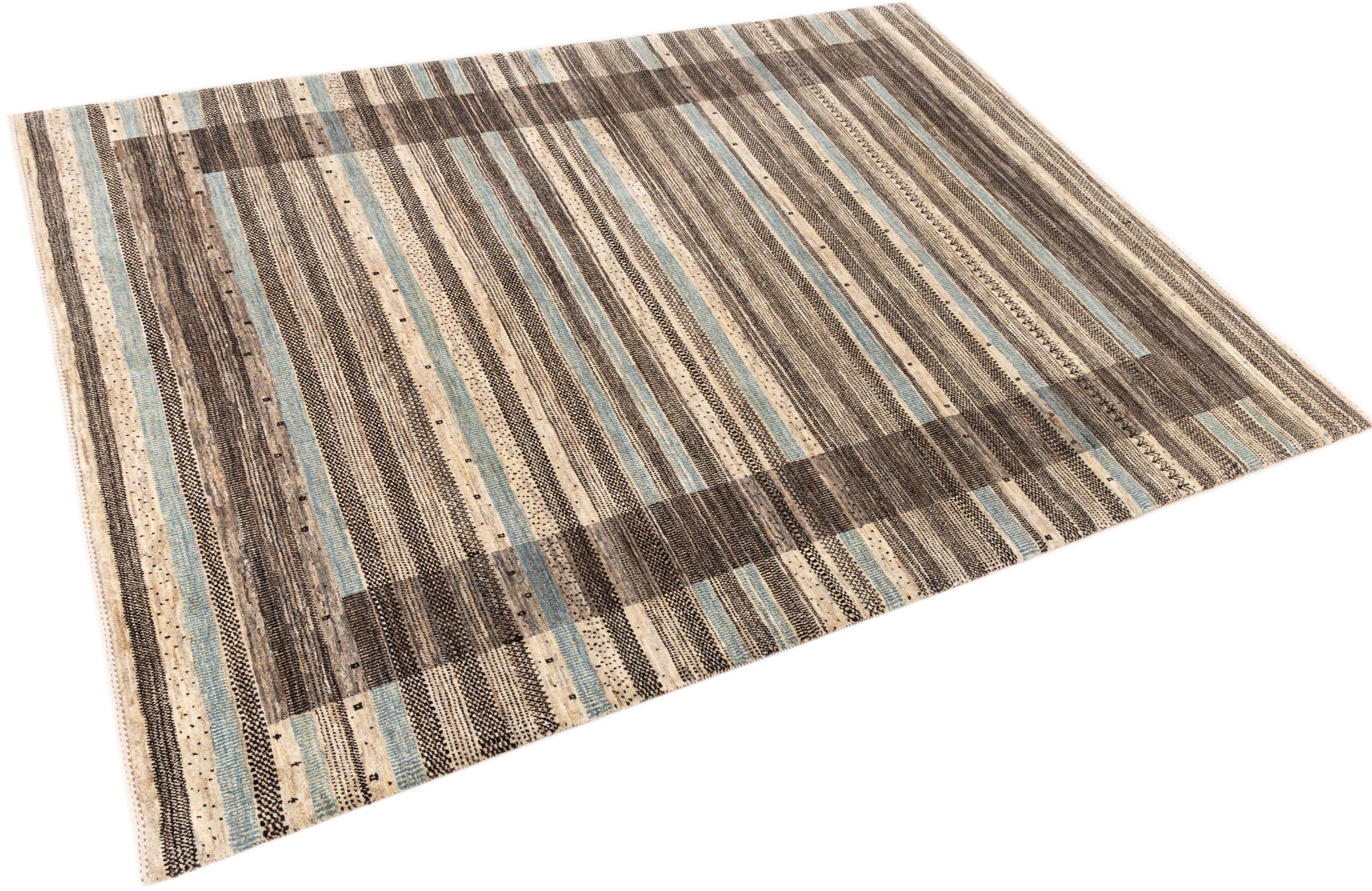 Tämä kaunis matto on Persian Gabbeh ja on yksi korkealaatuisimmista Gabbeh-matoista. Iranissa nomadit tai puoli-nomadit solmittavat mattoja perinteisillä käsityöillä. Yksinkertaiset motiivit ja kuviot ovat pääosin inspiroineet paimentolaisten välittömästä ympäristöstä. Esimerkiksi kameleita, puita tai pensaita löytyy perinteisistä matoista. Persialaiset Gabbeh-matot on valmistettu paikallisten lammaslaumojen villasta. Siksi villaa kehrätään useimmiten käsin. Jokainen näistä itämaisista matoista edustaa vuosisatojen vanhan kulttuurin ainutlaatuista luonnetta.