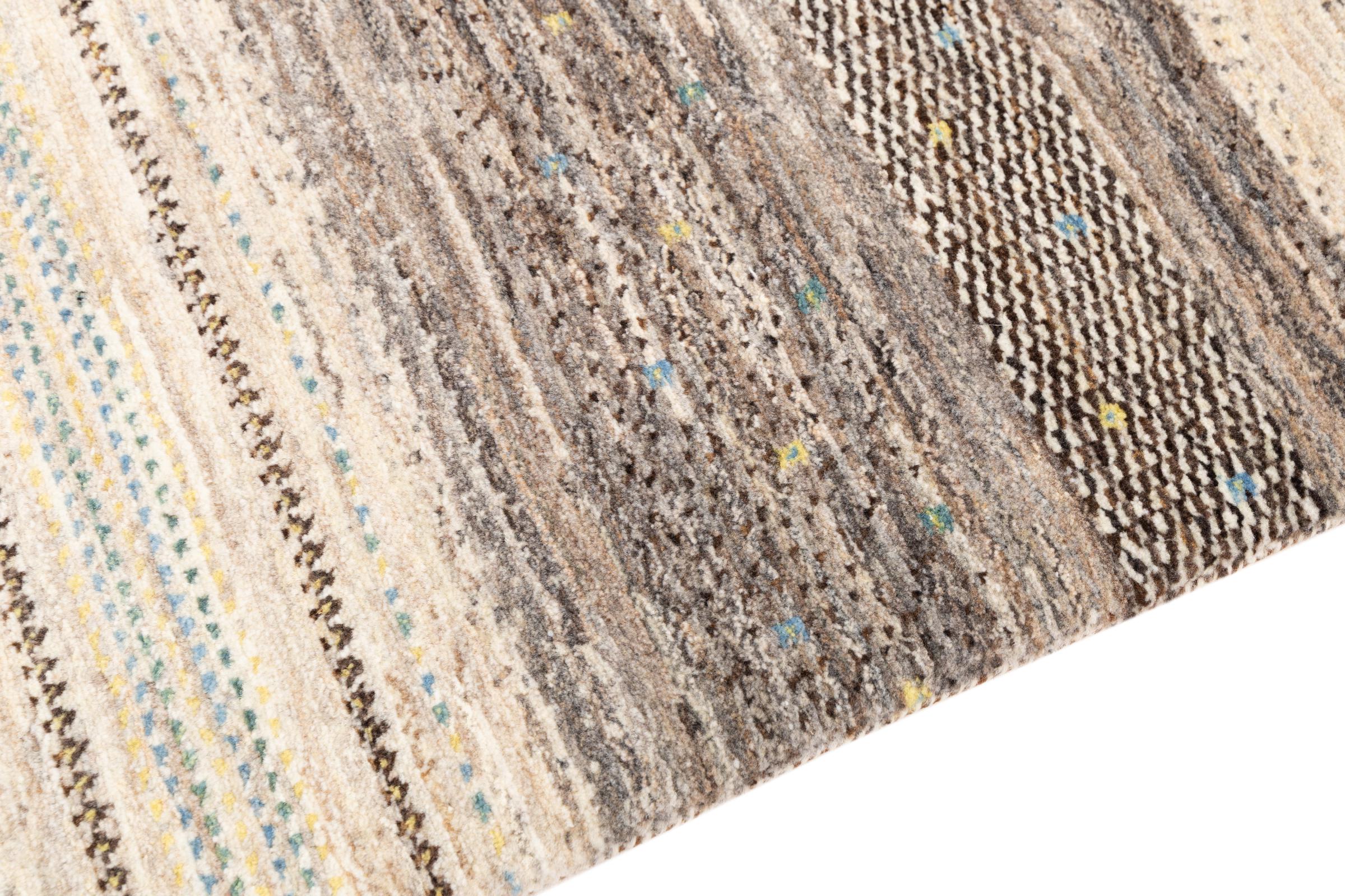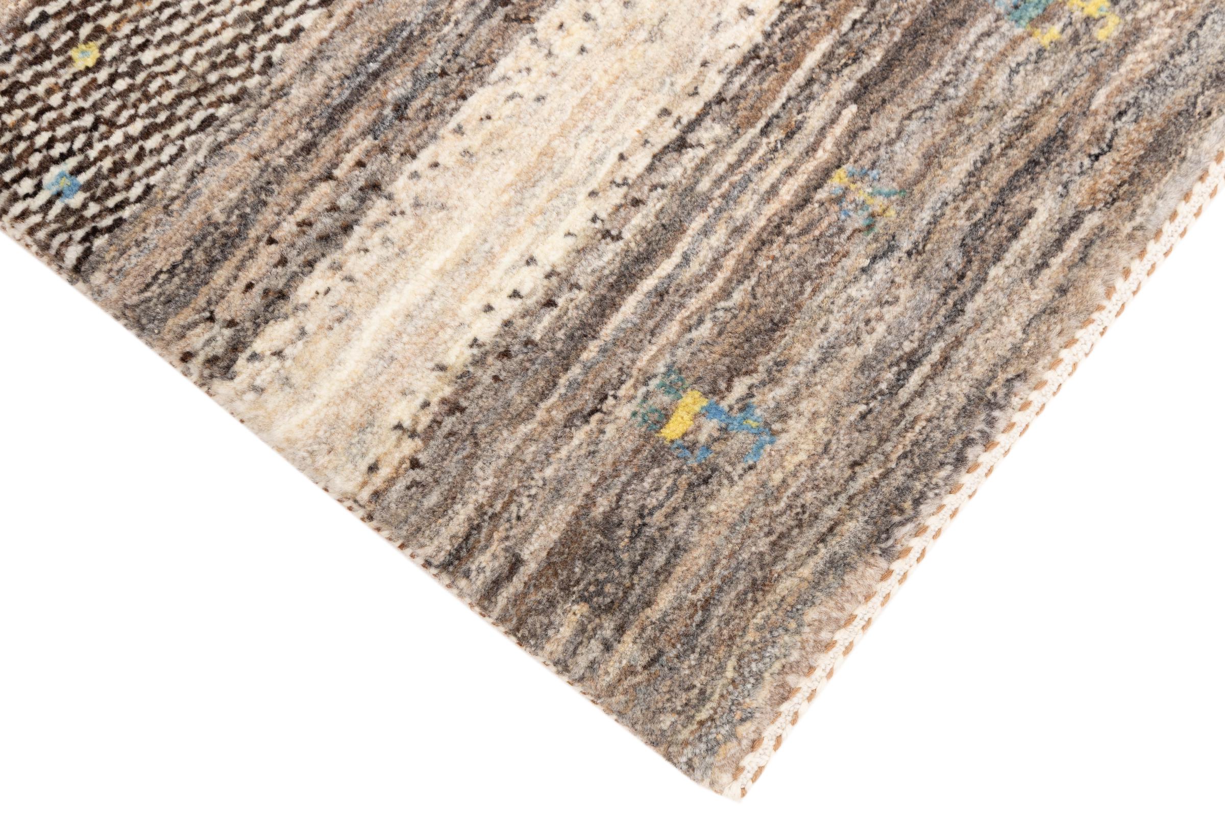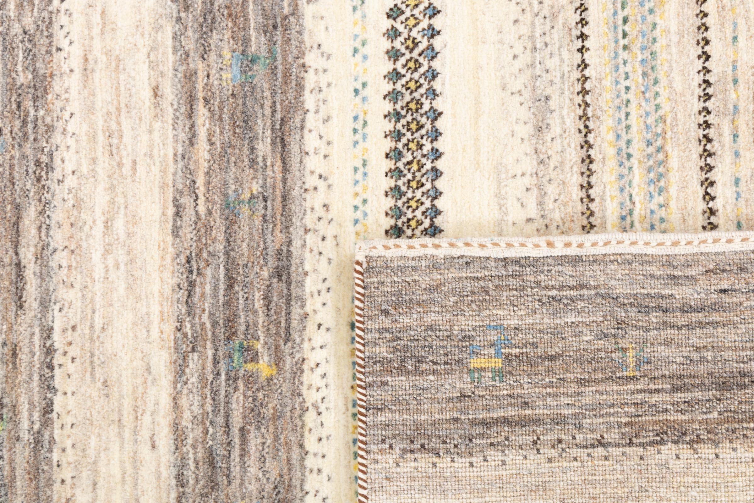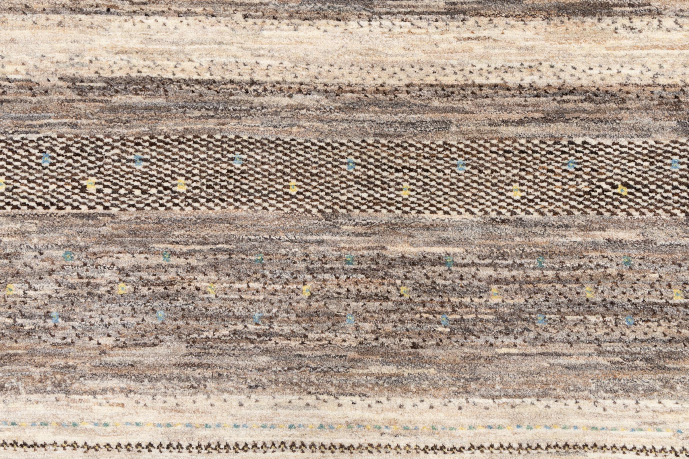Tämä kaunis matto on Persian Gabbeh ja on yksi korkealaatuisimmista Gabbeh-matoista. Iranissa nomadit tai puoli-nomadit solmittavat mattoja perinteisillä käsityöillä. Yksinkertaiset motiivit ja kuviot ovat pääosin inspiroineet paimentolaisten välittömästä ympäristöstä. Esimerkiksi kameleita, puita tai pensaita löytyy perinteisistä matoista. Persialaiset Gabbeh-matot on valmistettu paikallisten lammaslaumojen villasta. Siksi villaa kehrätään useimmiten käsin. Jokainen näistä itämaisista matoista edustaa vuosisatojen vanhan kulttuurin ainutlaatuista luonnetta.