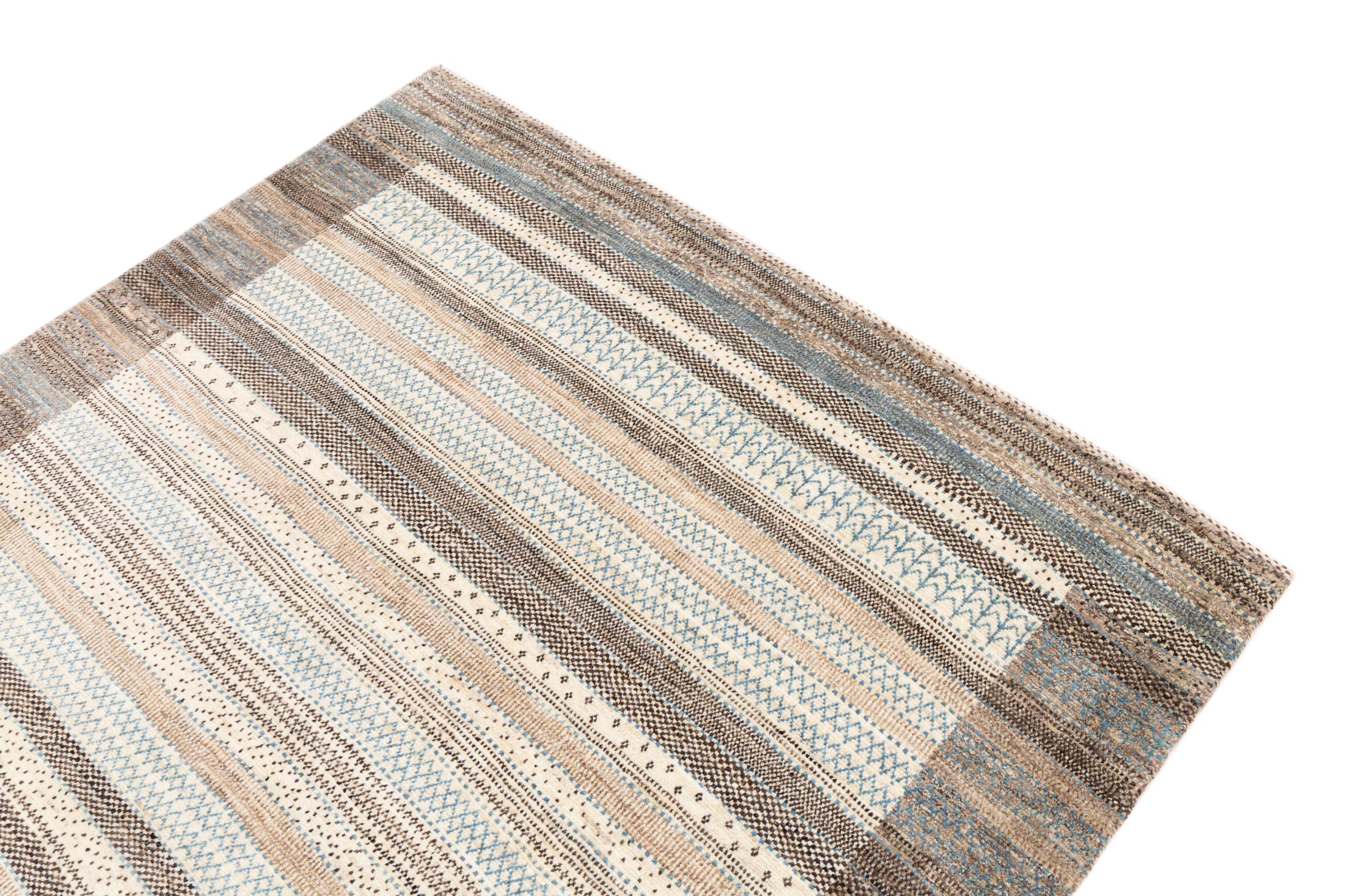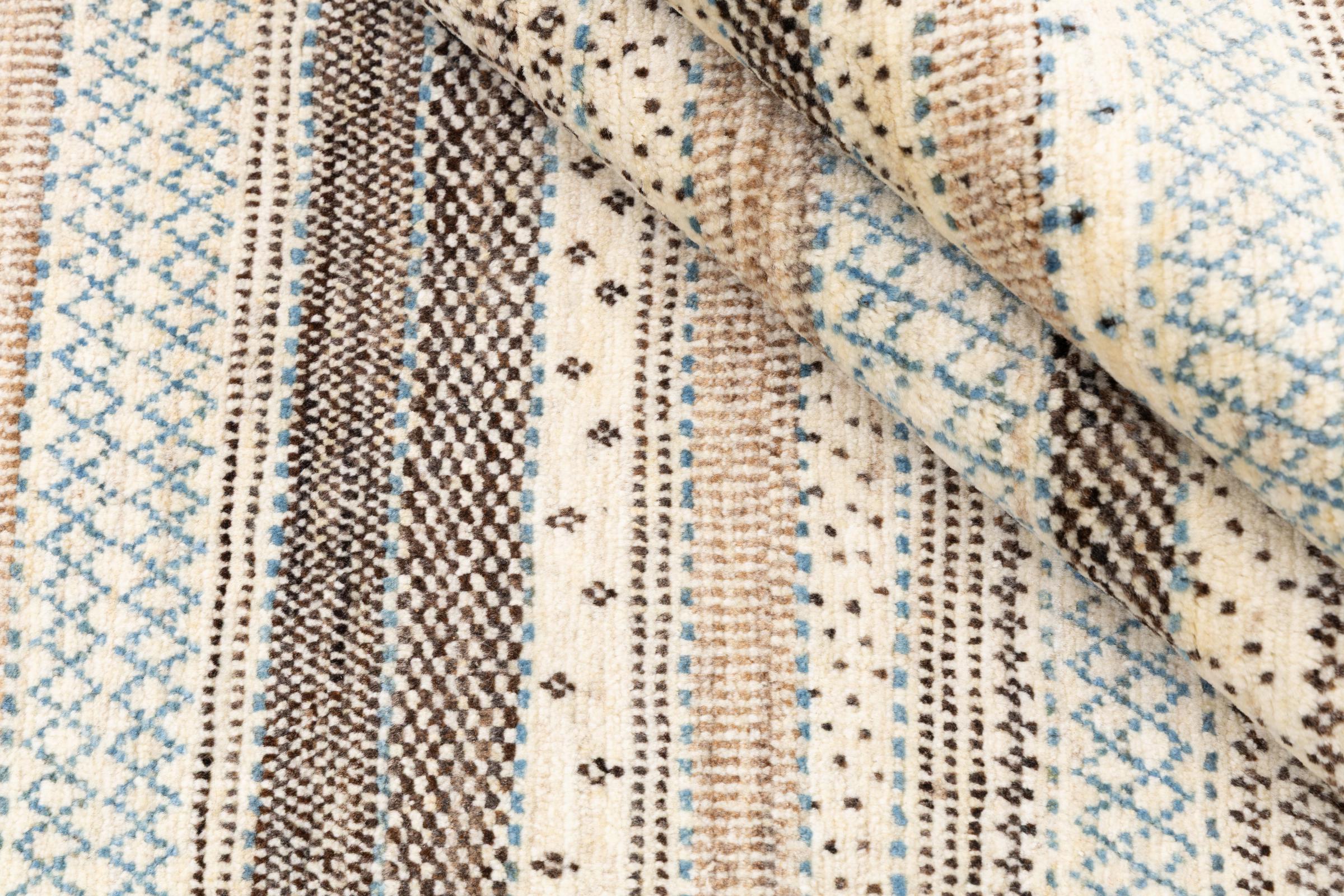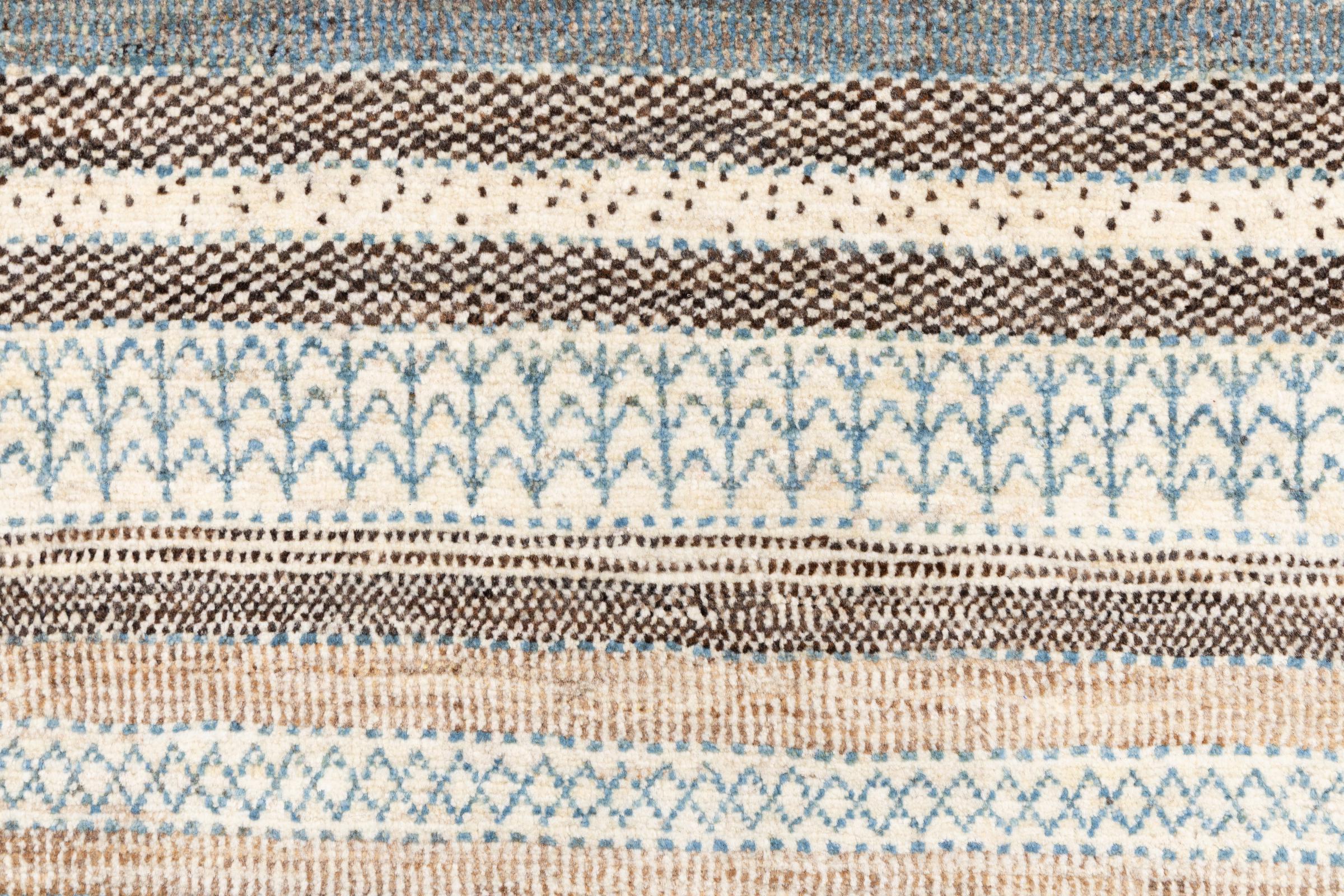 Tämä kaunis matto on Persian Gabbeh ja on yksi korkealaatuisimmista Gabbeh-matoista. Iranissa nomadit tai puoli-nomadit solmittavat mattoja perinteisillä käsityöillä. Yksinkertaiset motiivit ja kuviot ovat pääosin inspiroineet paimentolaisten välittömästä ympäristöstä. Esimerkiksi kameleita, puita tai pensaita löytyy perinteisistä matoista. Persialaiset Gabbeh-matot on valmistettu paikallisten lammaslaumojen villasta. Siksi villaa kehrätään useimmiten käsin. Jokainen näistä itämaisista matoista edustaa vuosisatojen vanhan kulttuurin ainutlaatuista luonnetta.